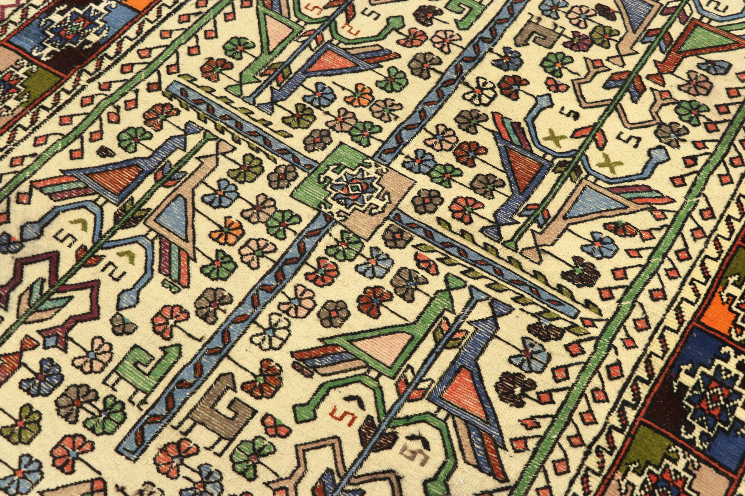 This handknotted Meshkin is a real piece of persian skill. Nice colours and patterns inspire at the time you look at it. This Persian Carpet was handmade in north-western iran of best sheep wool. Whoever has this carpet laying in his home, will love it.