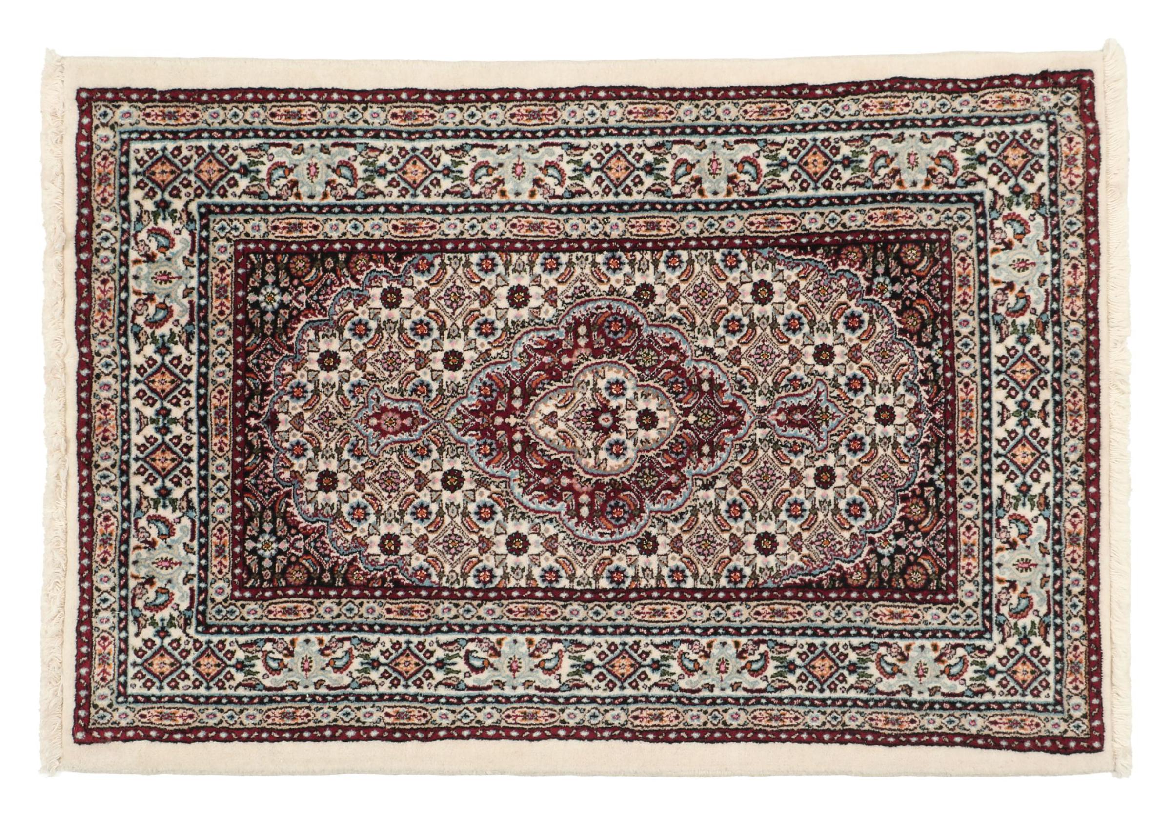 Moud is located in Iran, south of Mashhad. As a city of former Persia, its tradition of rug-making goes back many centuries, if not thousands of years. Hand knotted rugs from Moud enjoy an excellent reputation. They are made with the famous Persian knot. Typically, Moud Persian rugs have a pattern that covers the entire surface. The Garden pattern with motifs from Persian gardens or the Herati pattern.