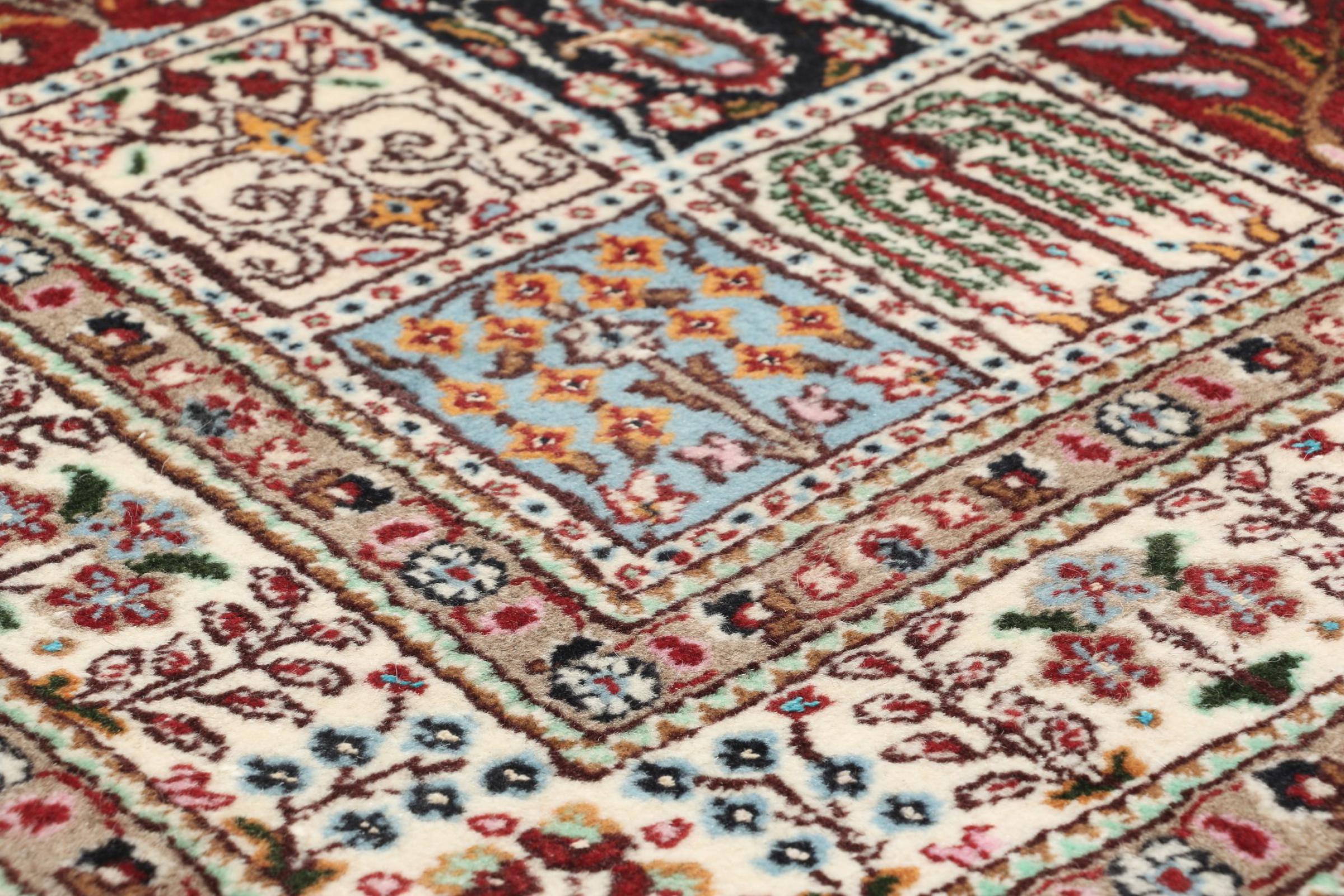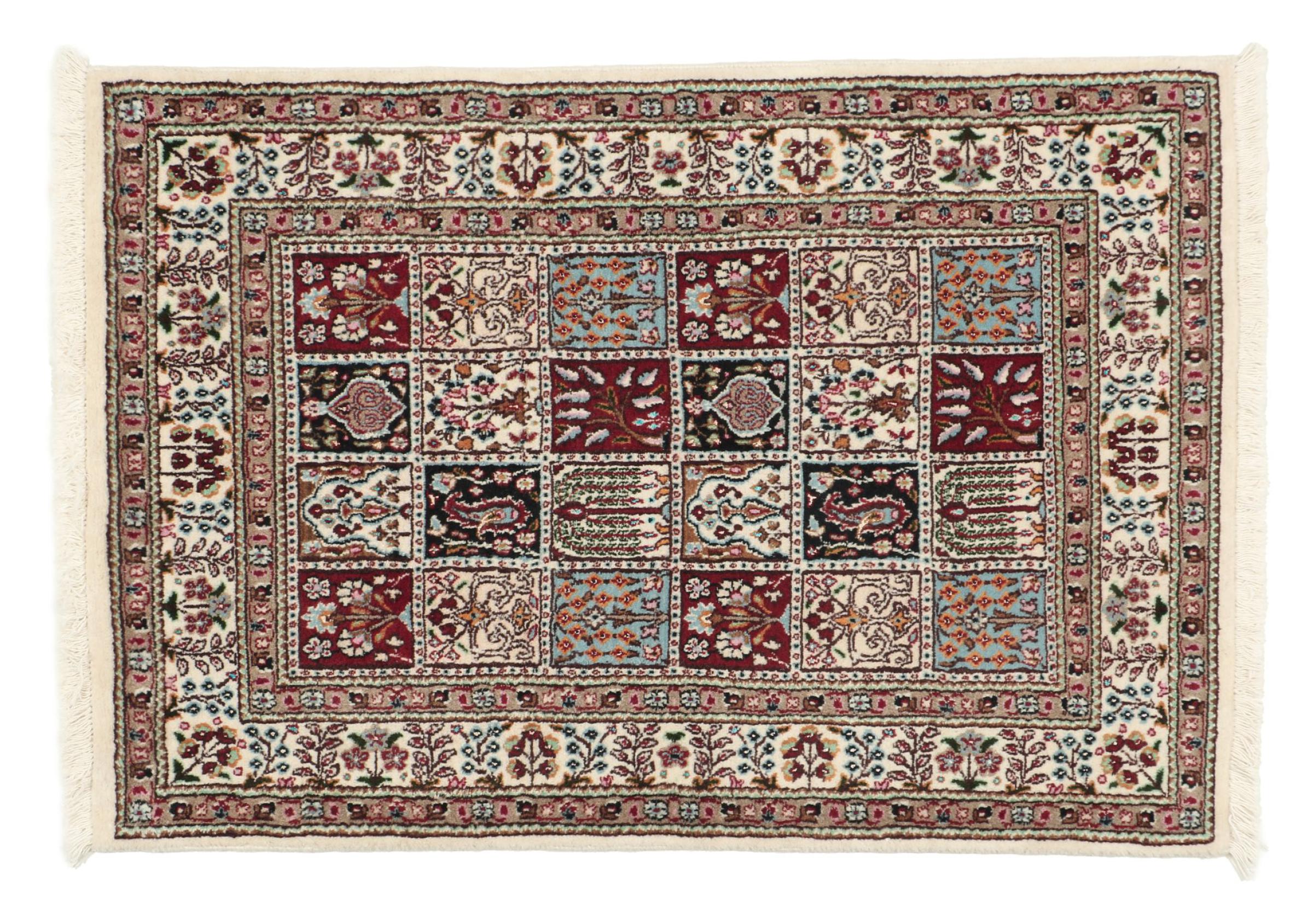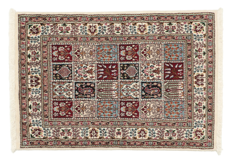 Moud is located in Iran, south of Mashhad. As a city of former Persia, its tradition of rug-making goes back many centuries, if not thousands of years. Hand knotted rugs from Moud enjoy an excellent reputation. They are made with the famous Persian knot. Typically, Moud Persian rugs have a pattern that covers the entire surface. The Garden pattern with motifs from Persian gardens or the Herati pattern.