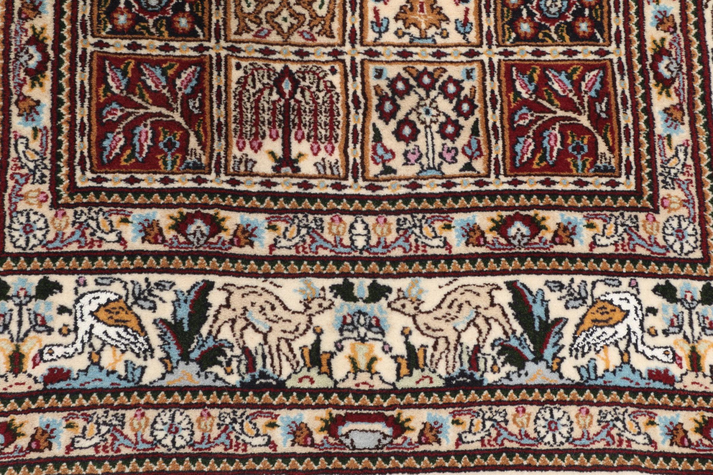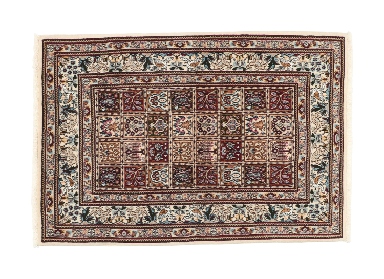 Moud is located in Iran, south of Mashhad. As a city of former Persia, its tradition of rug-making goes back many centuries, if not thousands of years. Hand knotted rugs from Moud enjoy an excellent reputation. They are made with the famous Persian knot. Typically, Moud Persian rugs have a pattern that covers the entire surface. The Garden pattern with motifs from Persian gardens or the Herati pattern.