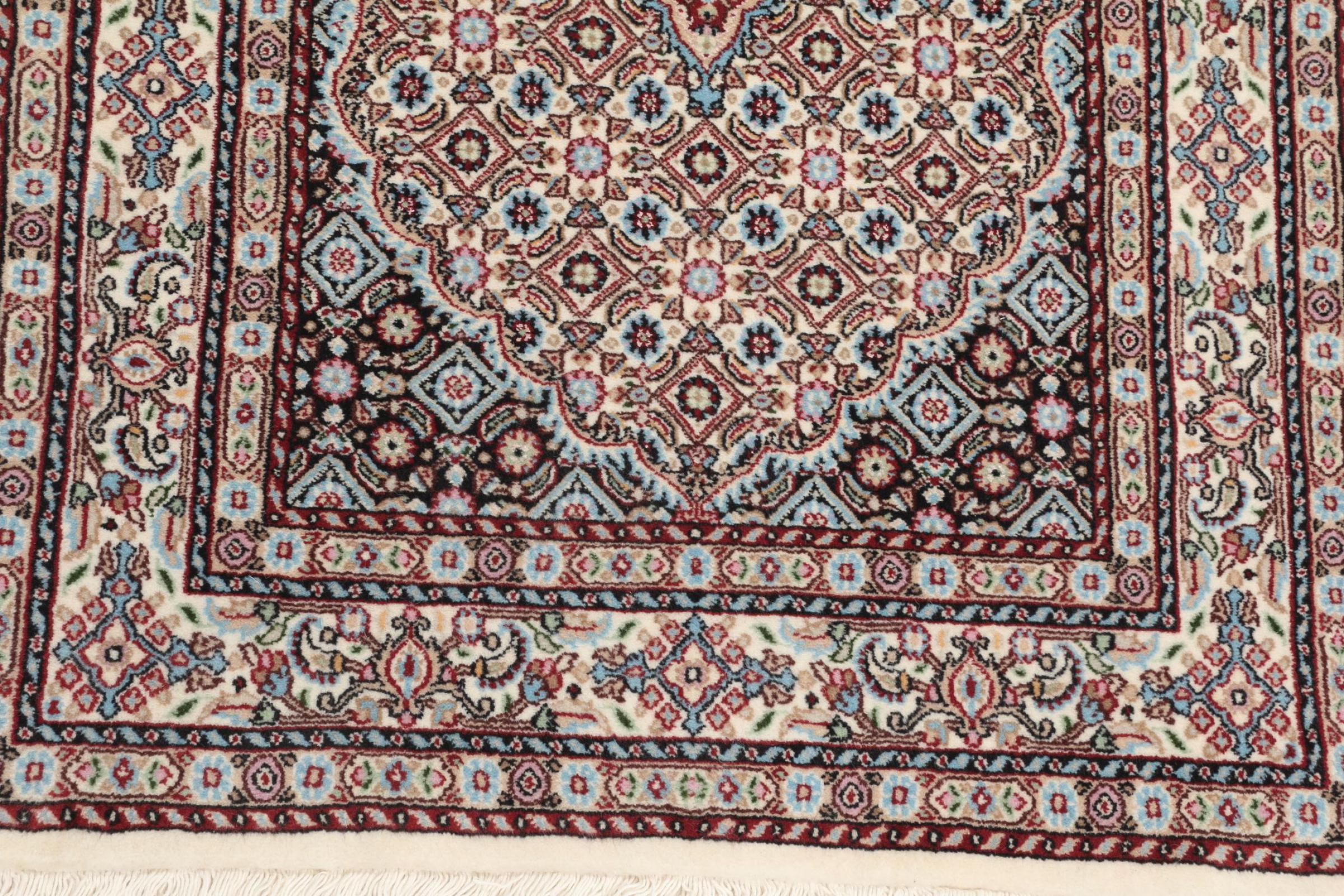 Moud is located in Iran, south of Mashhad. As a city of former Persia, its tradition of rug-making goes back many centuries, if not thousands of years. Hand knotted rugs from Moud enjoy an excellent reputation. They are made with the famous Persian knot. Typically, Moud Persian rugs have a pattern that covers the entire surface. The Garden pattern with motifs from Persian gardens or the Herati pattern.