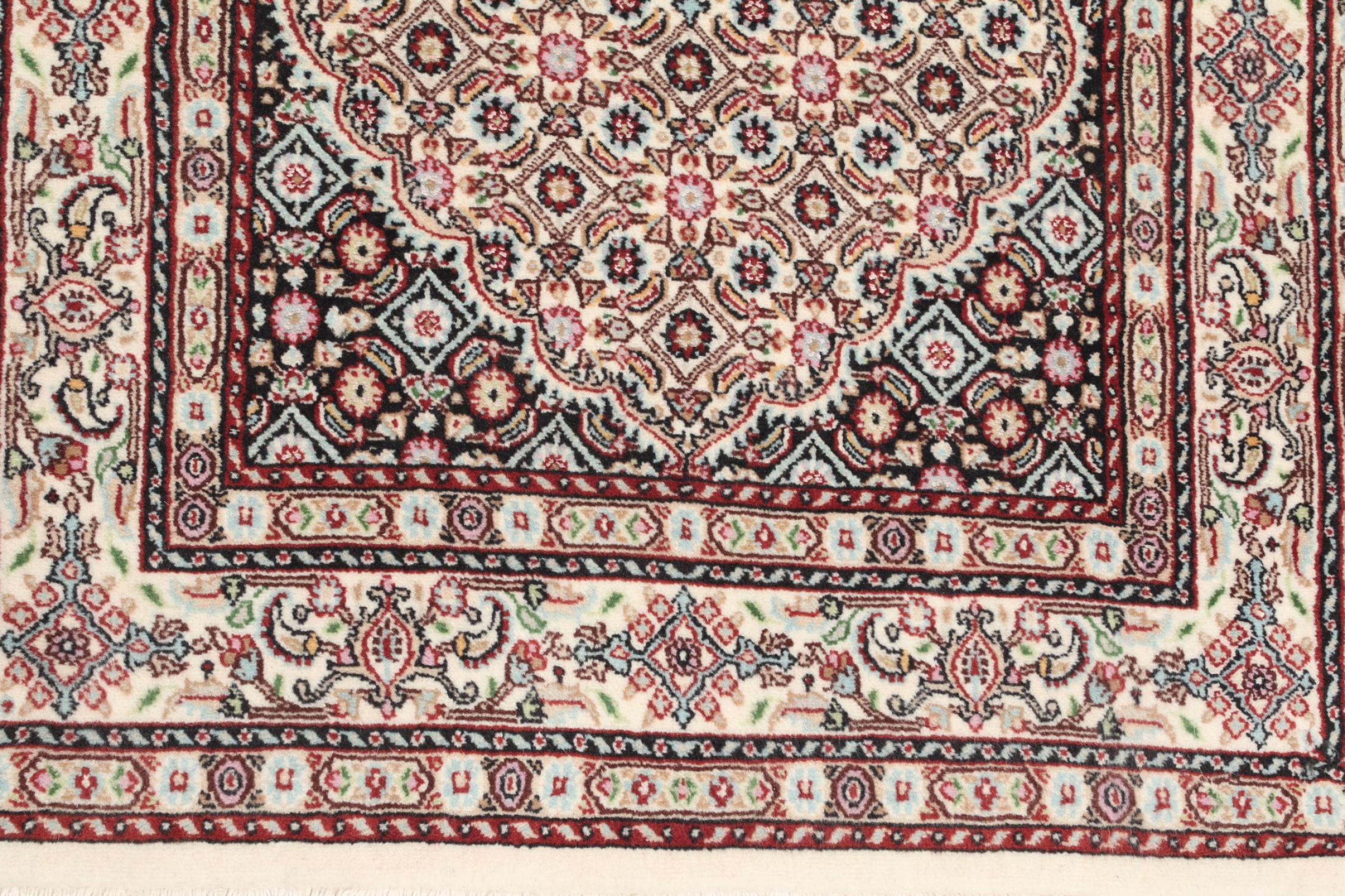 Moud is located in Iran, south of Mashhad. As a city of former Persia, its tradition of rug-making goes back many centuries, if not thousands of years. Hand knotted rugs from Moud enjoy an excellent reputation. They are made with the famous Persian knot. Typically, Moud Persian rugs have a pattern that covers the entire surface. The Garden pattern with motifs from Persian gardens or the Herati pattern.