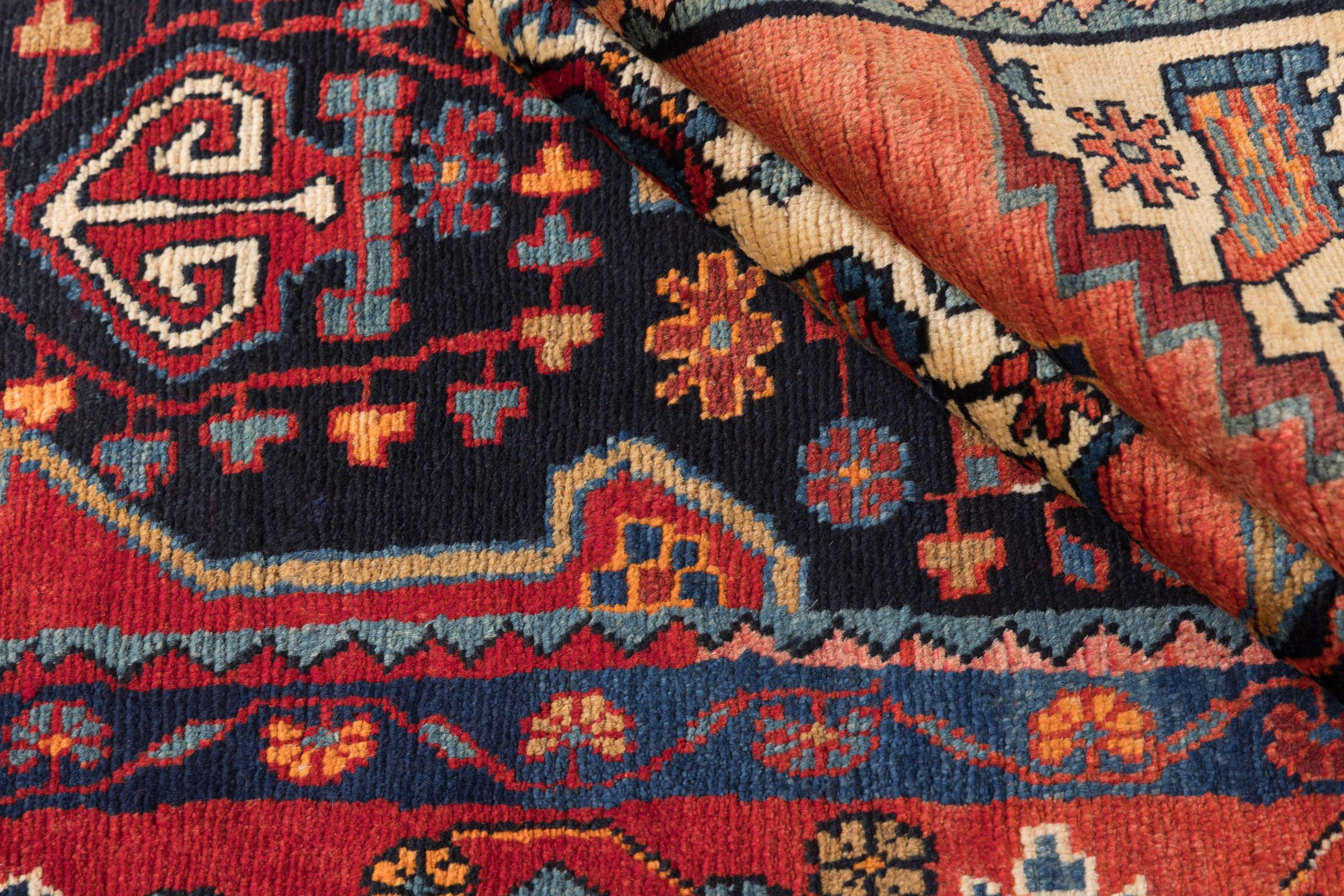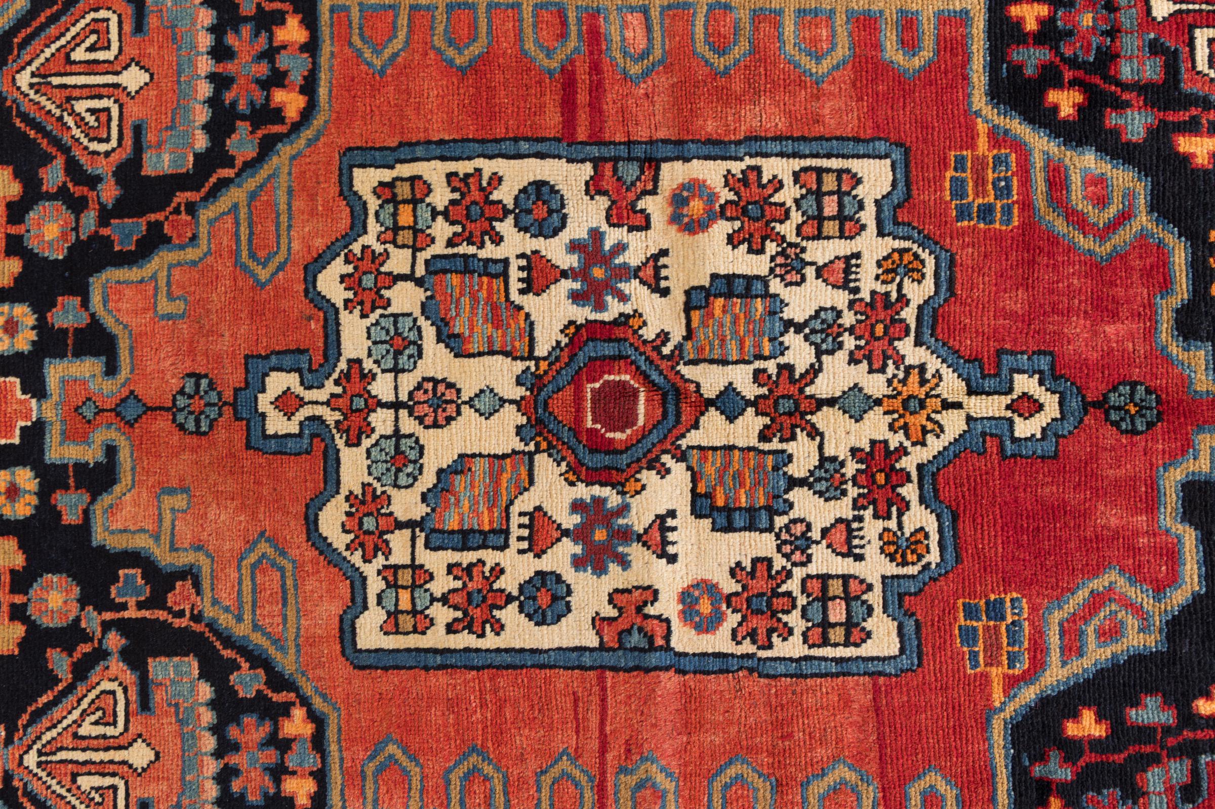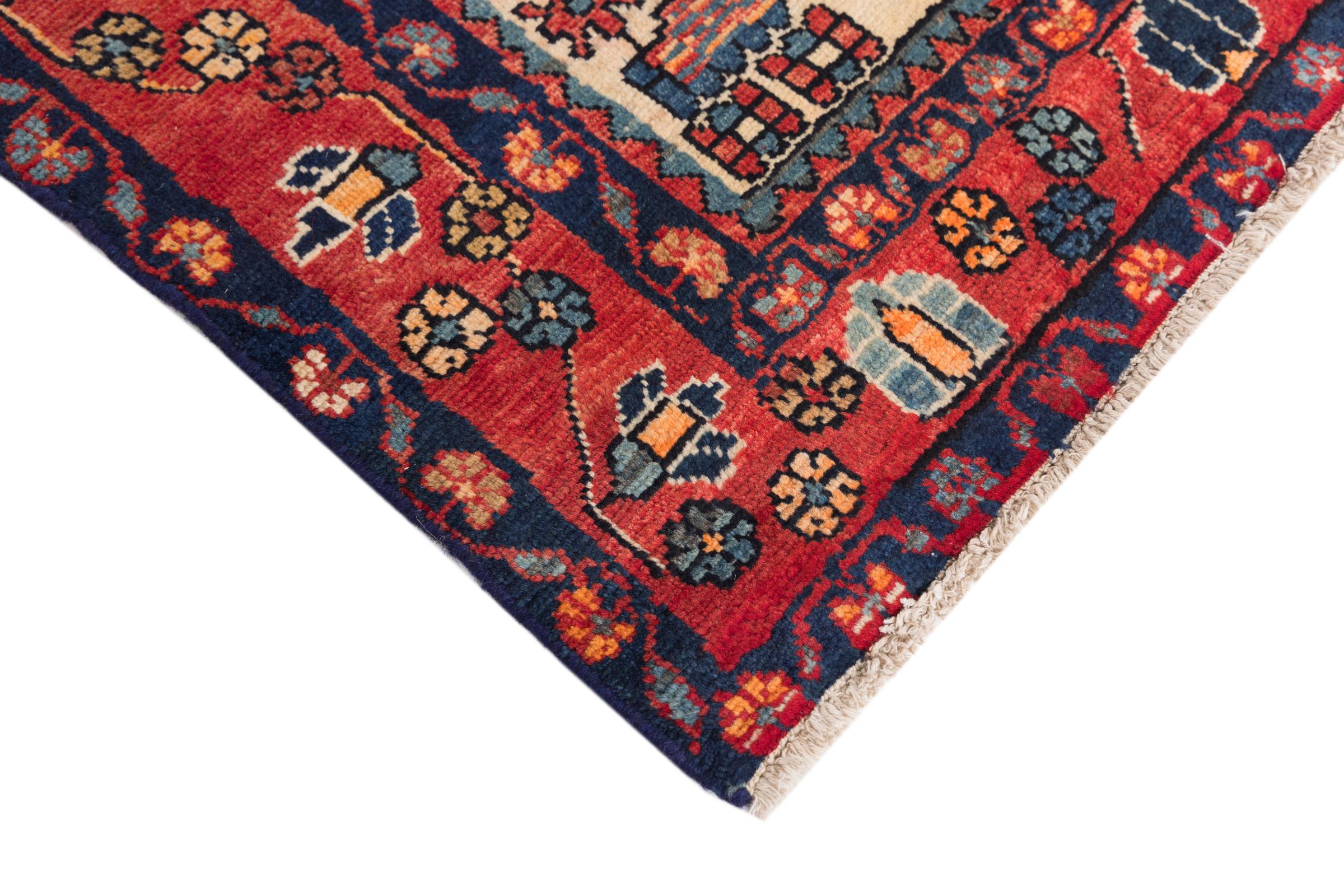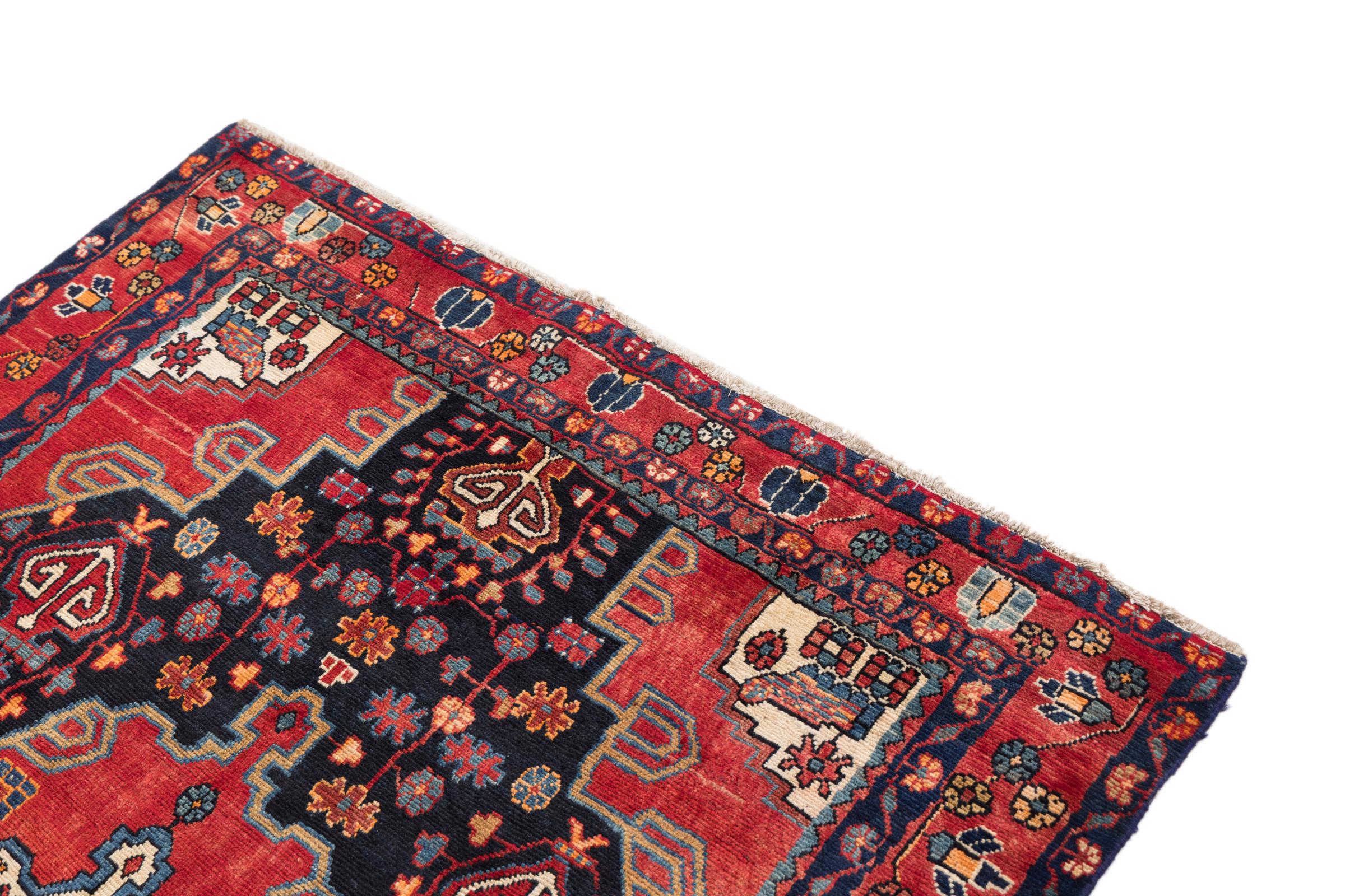 This rug belongs to village and nomadic rugs from Iran, formerly Persia. This type of rug is knotted by hand in smaller towns and villages in old tradition. Even nomads still knot Persian rugs in the open air. The rugs are knotted without a draft and completely from the mind. They are characterized by classical ornaments, which are arranged in straight and geometrical patterns. Thanks to their cultural-traditional origin, these rugs have a unique character that embodies ancient Persia.