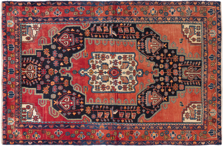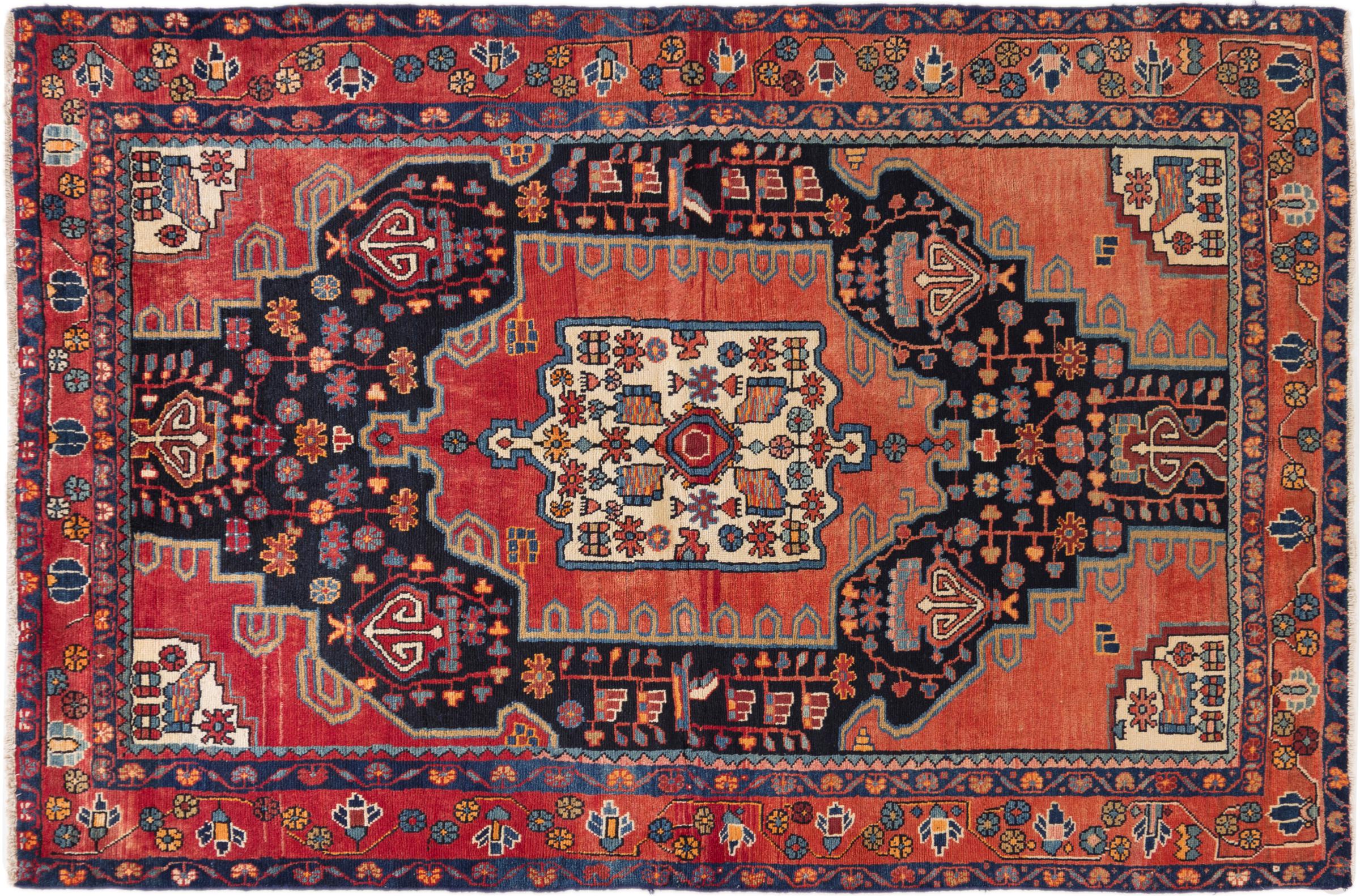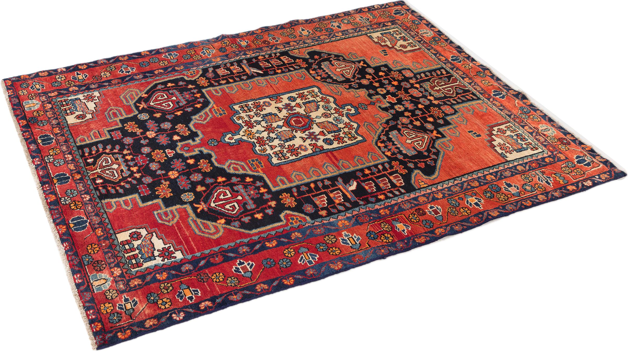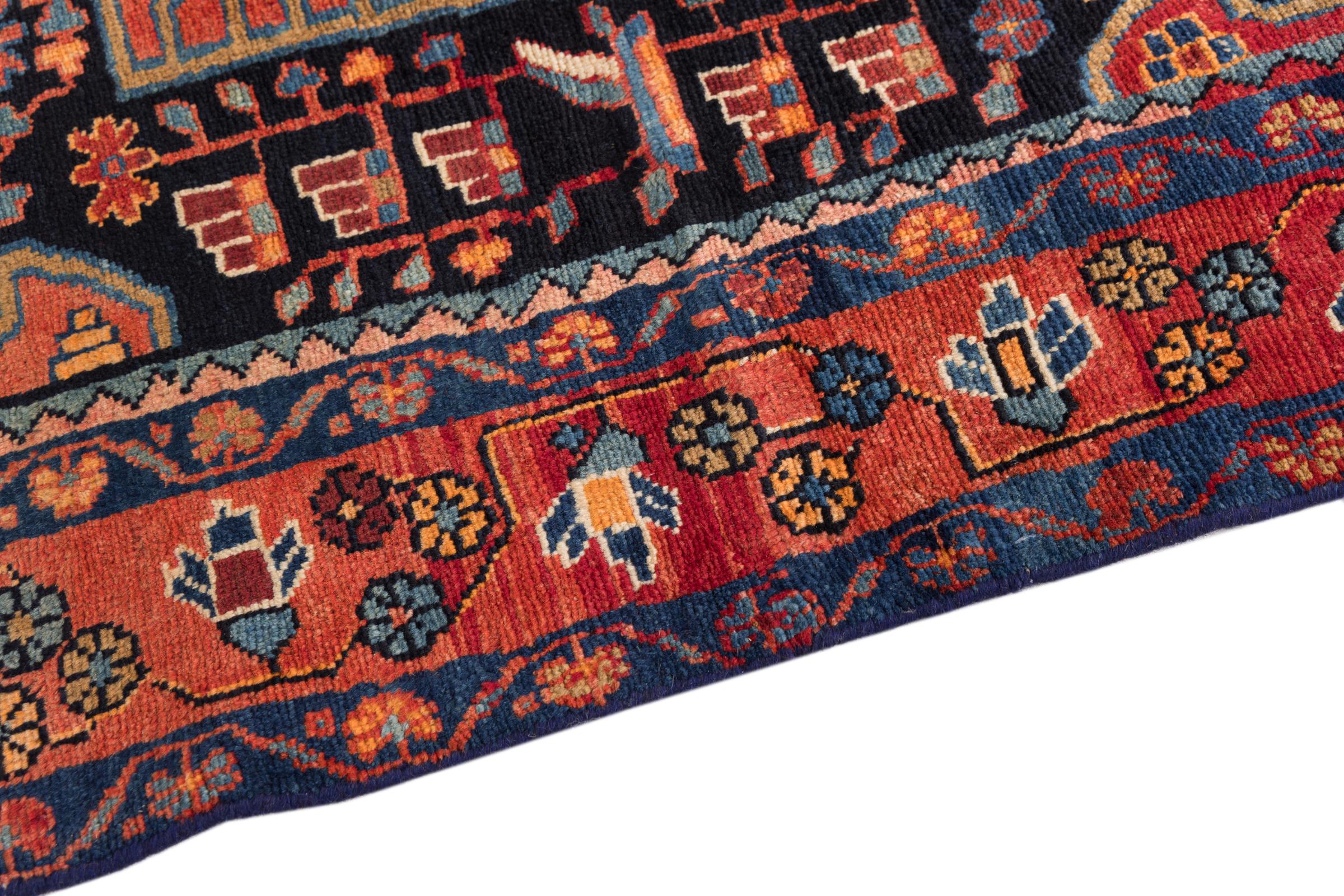 This rug belongs to village and nomadic rugs from Iran, formerly Persia. This type of rug is knotted by hand in smaller towns and villages in old tradition. Even nomads still knot Persian rugs in the open air. The rugs are knotted without a draft and completely from the mind. They are characterized by classical ornaments, which are arranged in straight and geometrical patterns. Thanks to their cultural-traditional origin, these rugs have a unique character that embodies ancient Persia.