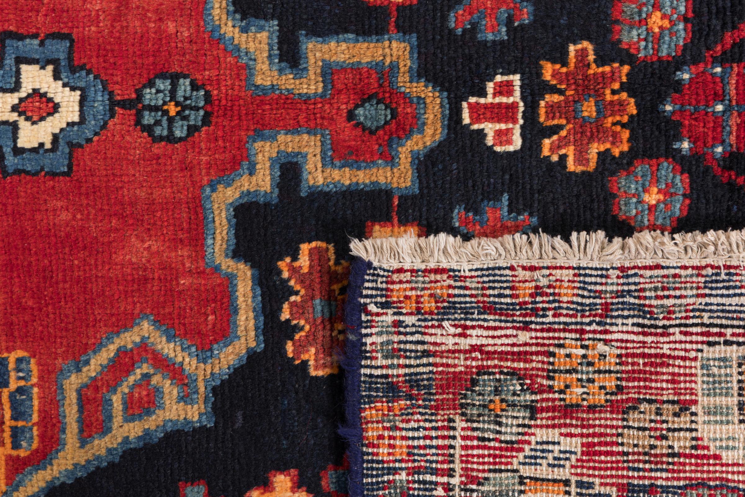 This Persian Nahavand Carpet was hand knotted in western Iran. It is robust and perfectly suitable for highly frequented areas. The relatively low knot density does not say much about the quality of this Persian Carpet. Decisive are the high quality wool and the beautiful shining colours.