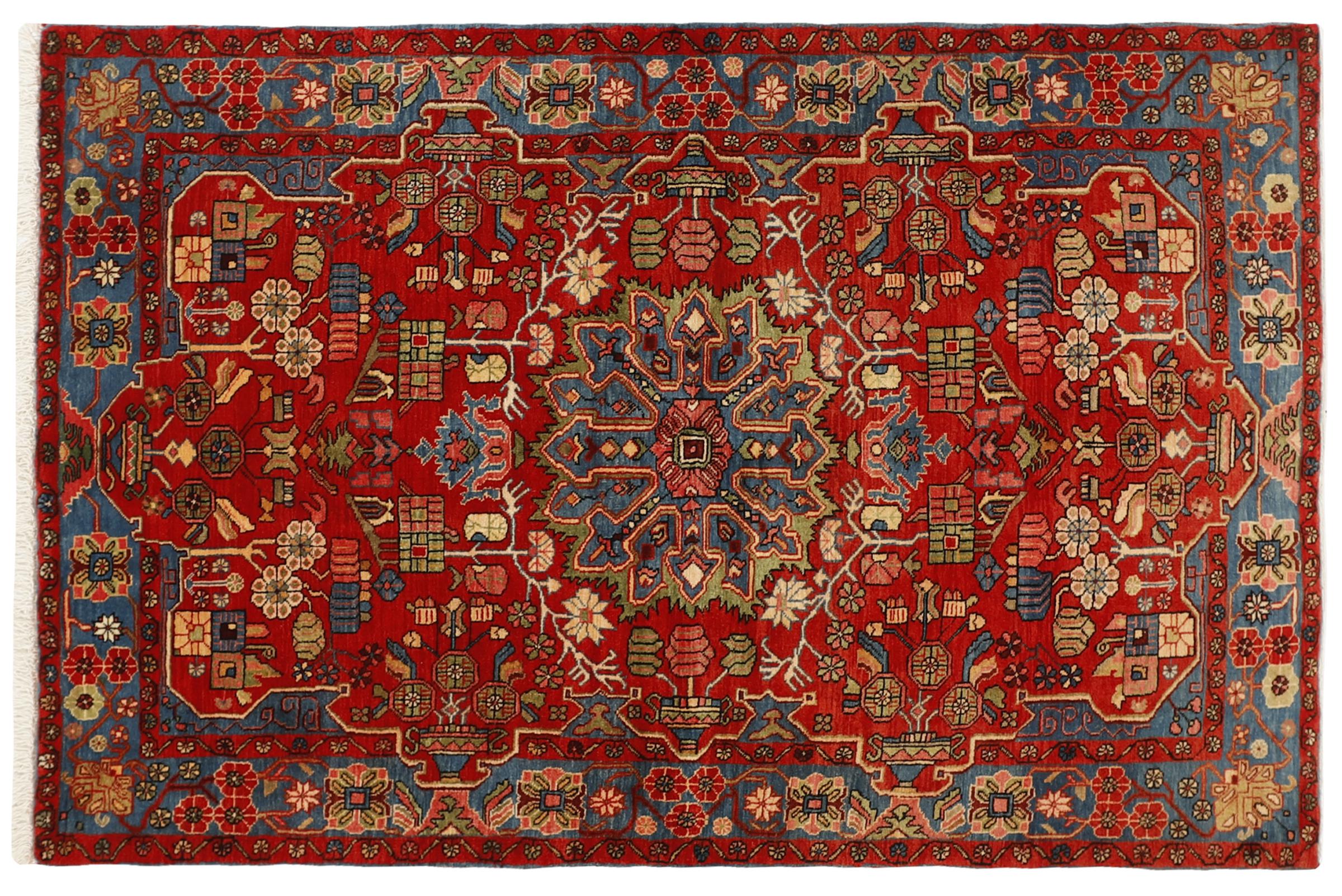 This Persian Nahavand Carpet was hand knotted in western Iran. It is robust and perfectly suitable for highly frequented areas. The relatively low knot density does not say much about the quality of this Persian Carpet. Decisive are the high quality wool and the beautiful shining colours.