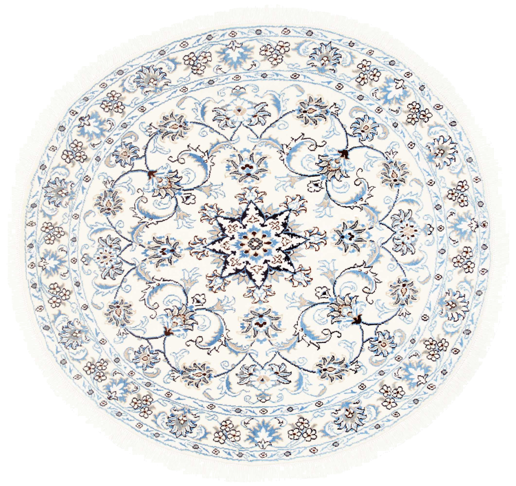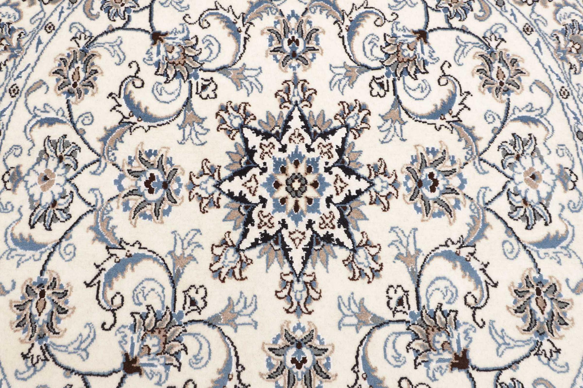 Rugs from the city of Nain, from the border of one of the largest deserts in Iran, are among the most famous Persian rugs in the world. Their typical design is characterized by floral ornaments, a medallion in the middle as well as beige and red or blue shades. Thanks to their designations 4La, 6La, 9La and 12La, the finenesses of a Nain rug can be seen at a glance. The lower the "La" number, the higher the knot density and thus the finer the rug.