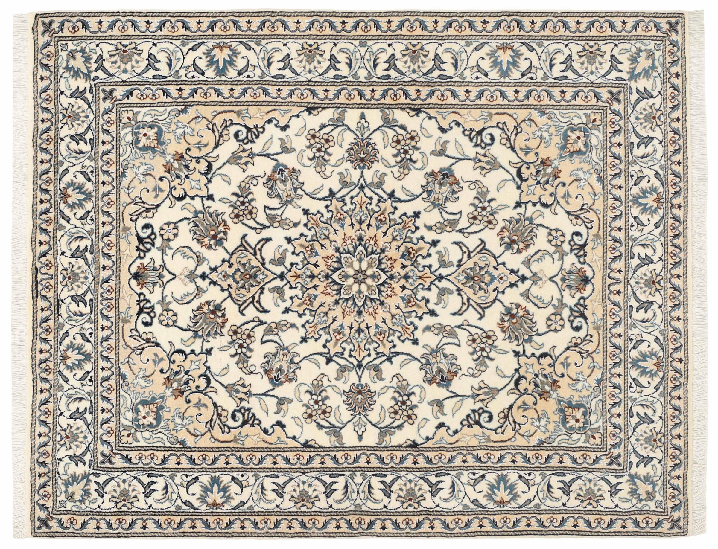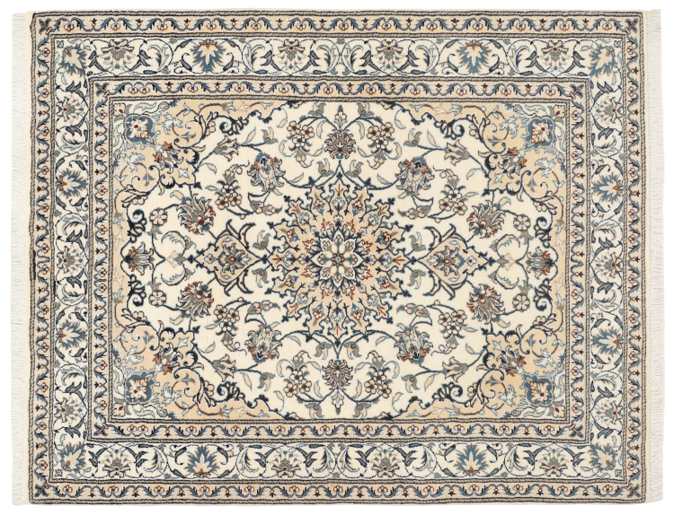Rugs from the city of Nain, from the border of one of the largest deserts in Iran, are among the most famous Persian rugs in the world. Their typical design is characterized by floral ornaments, a medallion in the middle as well as beige and red or blue shades. Thanks to their designations 4La, 6La, 9La and 12La, the finenesses of a Nain rug can be seen at a glance. The lower the "La" number, the higher the knot density and thus the finer the rug.