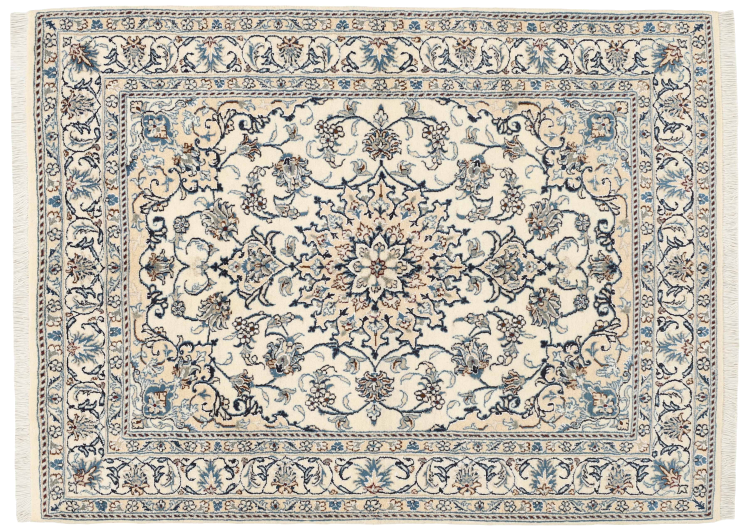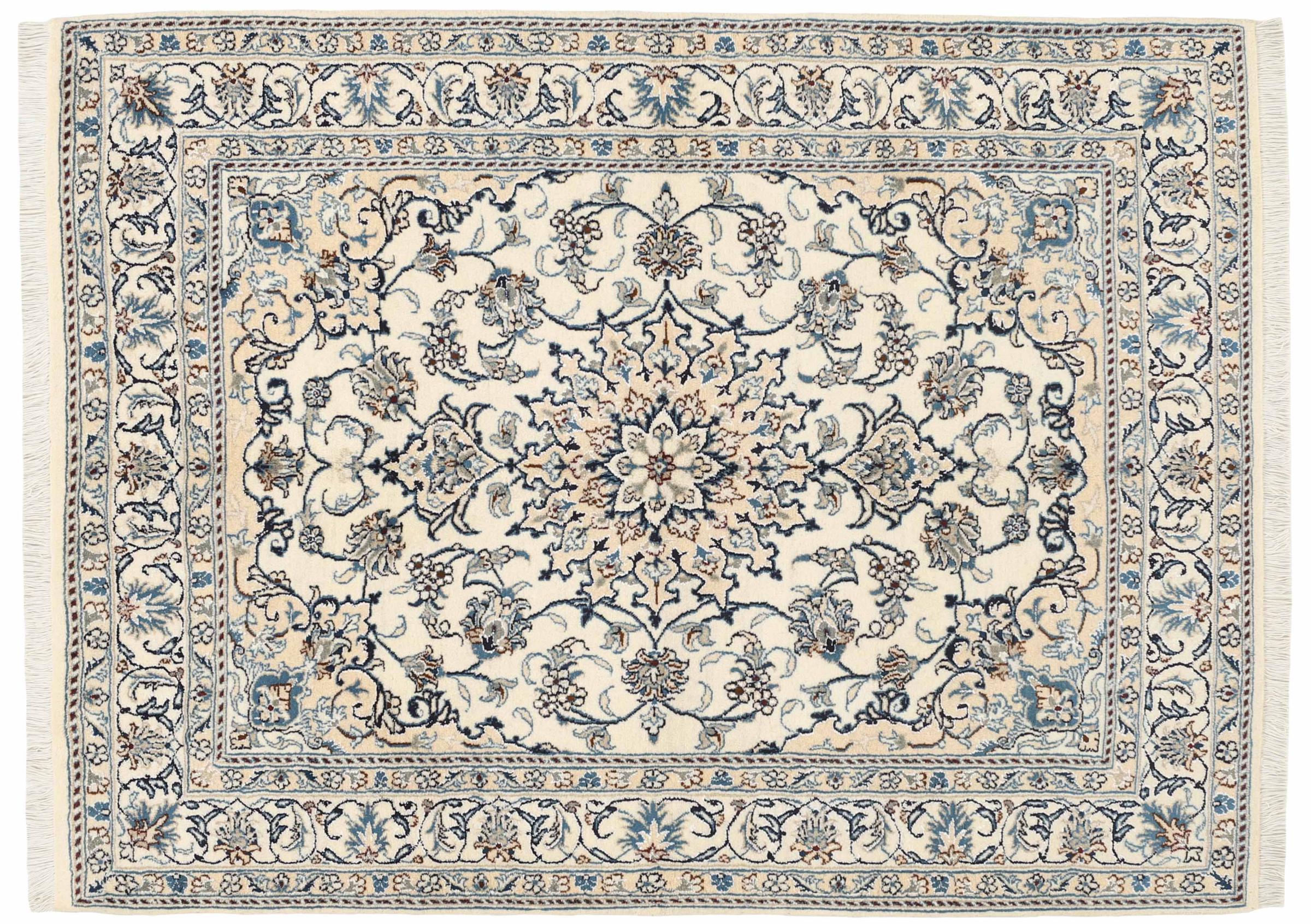 Rugs from the city of Nain, from the border of one of the largest deserts in Iran, are among the most famous Persian rugs in the world. Their typical design is characterized by floral ornaments, a medallion in the middle as well as beige and red or blue shades. Thanks to their designations 4La, 6La, 9La and 12La, the finenesses of a Nain rug can be seen at a glance. The lower the "La" number, the higher the knot density and thus the finer the rug.