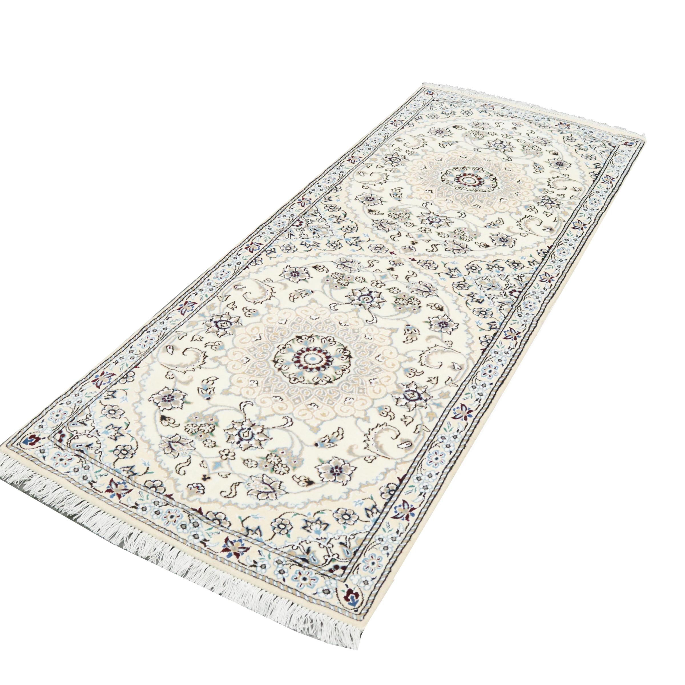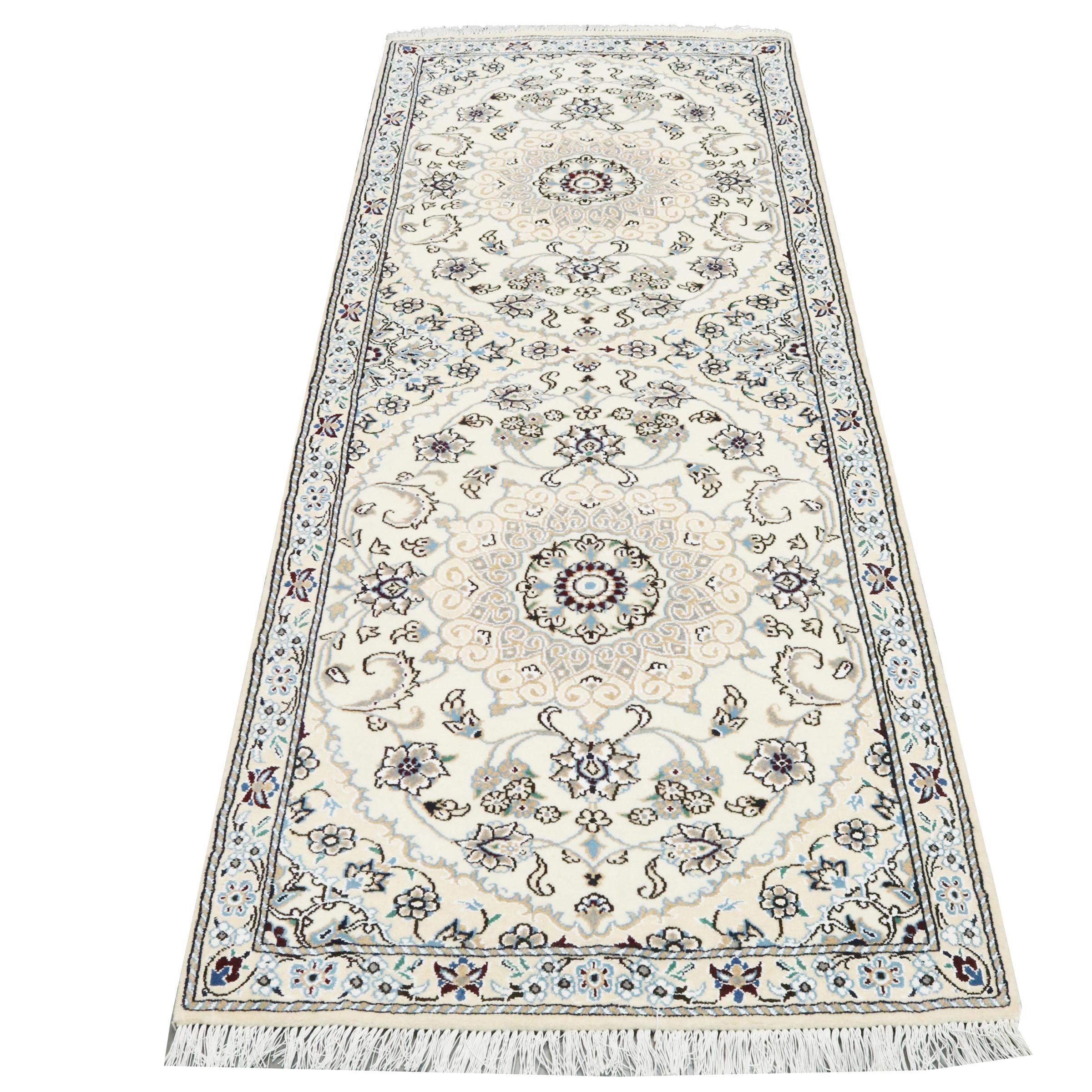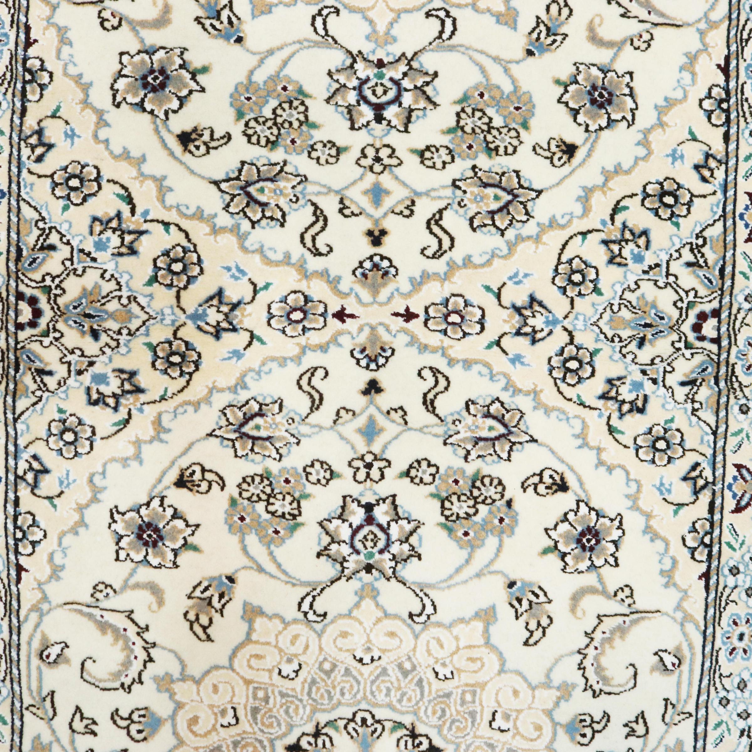 This Nain rug is classified as 9La. The excellent quality, the beautiful oriental design with its curvilinear patterns will delight every buyer. This Persian rug was hand-knotted in the city of Nain, which lies on the western edge of the Dasht-e-Kavir desert, from high-quality wool and natural silk. 9La Nain rugs are significantly finer than a 12La and already show beautiful details.