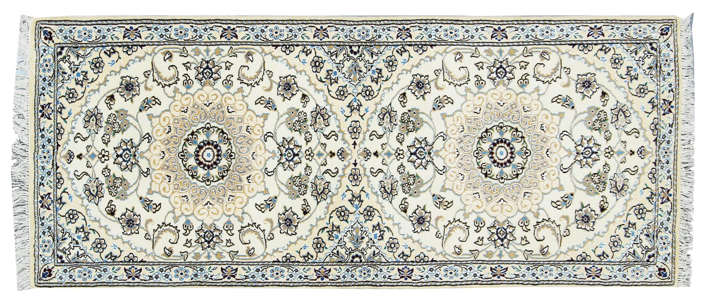 Rugs from the city of Nain, from the border of one of the largest deserts in Iran, are among the most famous Persian rugs in the world. Their typical design is characterized by floral ornaments, a medallion in the middle as well as beige and red or blue shades. Thanks to their designations 4La, 6La, 9La and 12La, the finenesses of a Nain rug can be seen at a glance. The lower the "La" number, the higher the knot density and thus the finer the rug.