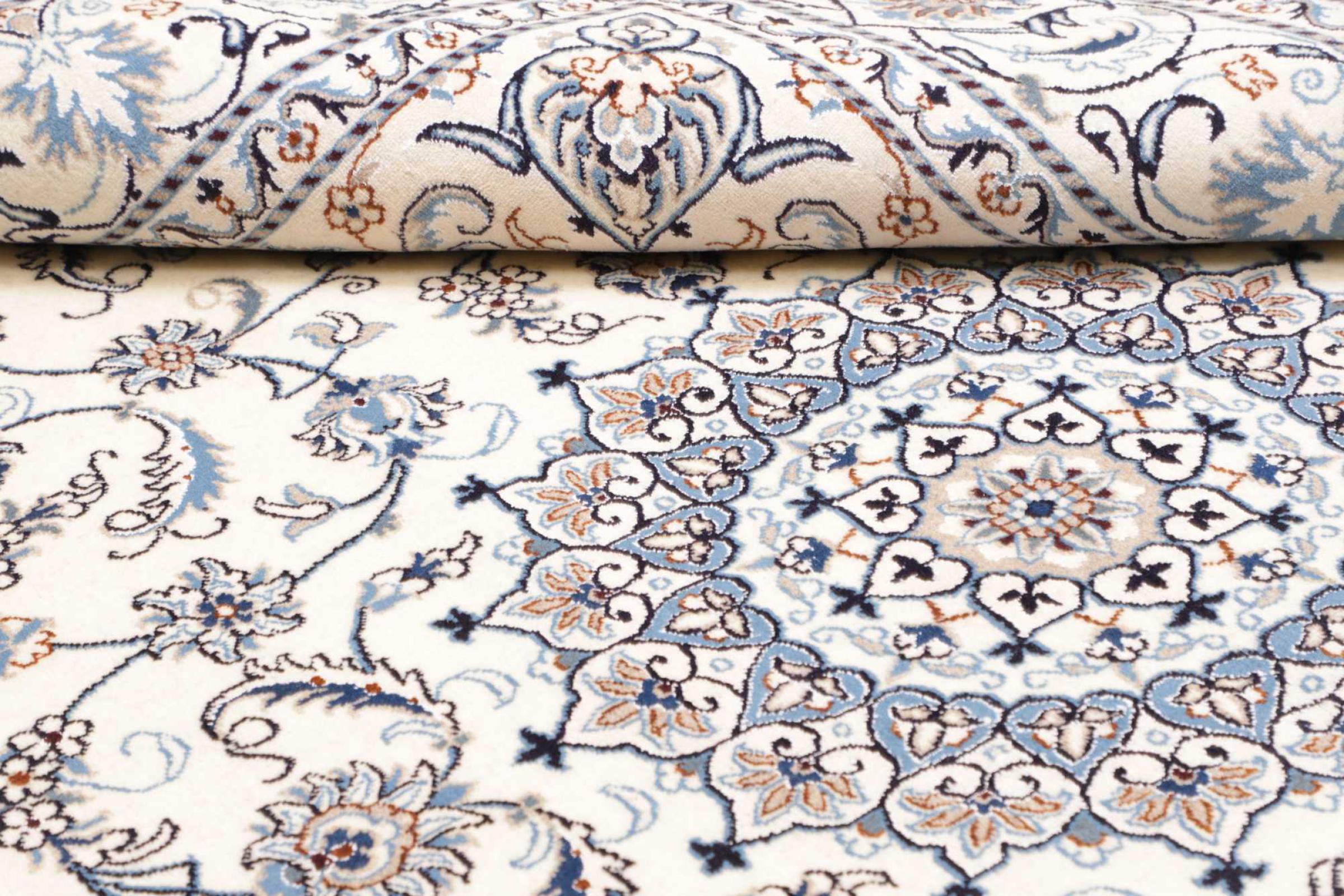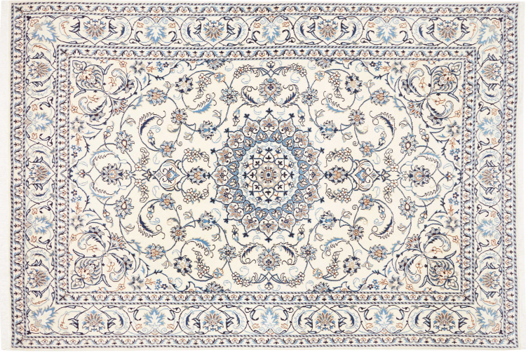 Rugs from the city of Nain, from the border of one of the largest deserts in Iran, are among the most famous Persian rugs in the world. Their typical design is characterized by floral ornaments, a medallion in the middle as well as beige and red or blue shades. Thanks to their designations 4La, 6La, 9La and 12La, the finenesses of a Nain rug can be seen at a glance. The lower the "La" number, the higher the knot density and thus the finer the rug.