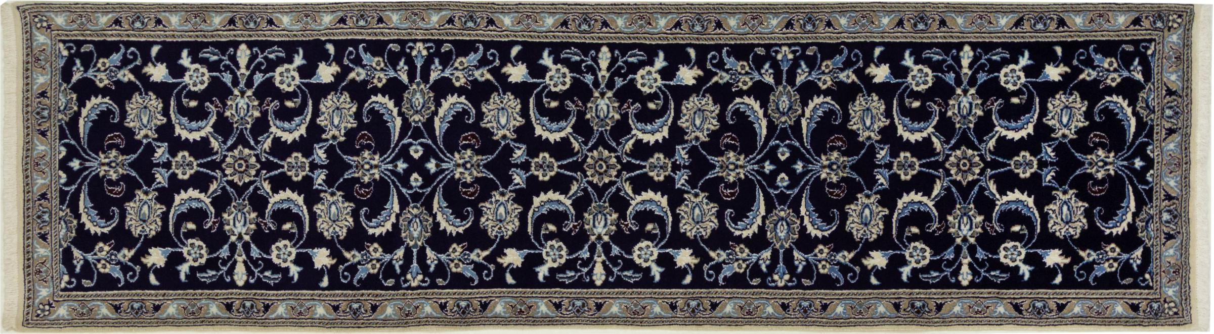 Rugs from the city of Nain, from the border of one of the largest deserts in Iran, are among the most famous Persian rugs in the world. Their typical design is characterized by floral ornaments, a medallion in the middle as well as beige and red or blue shades. Thanks to their designations 4La, 6La, 9La and 12La, the finenesses of a Nain rug can be seen at a glance. The lower the "La" number, the higher the knot density and thus the finer the rug.