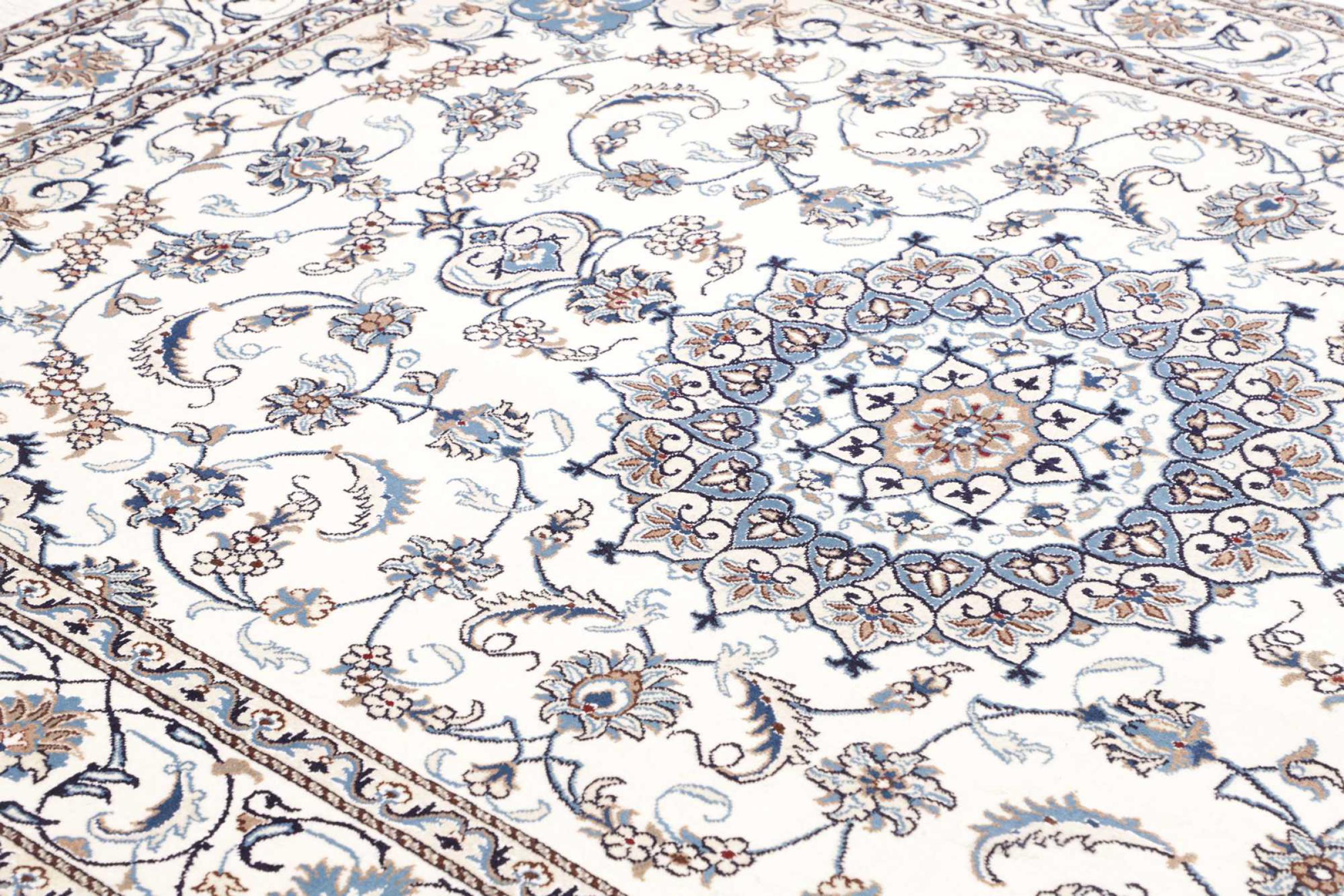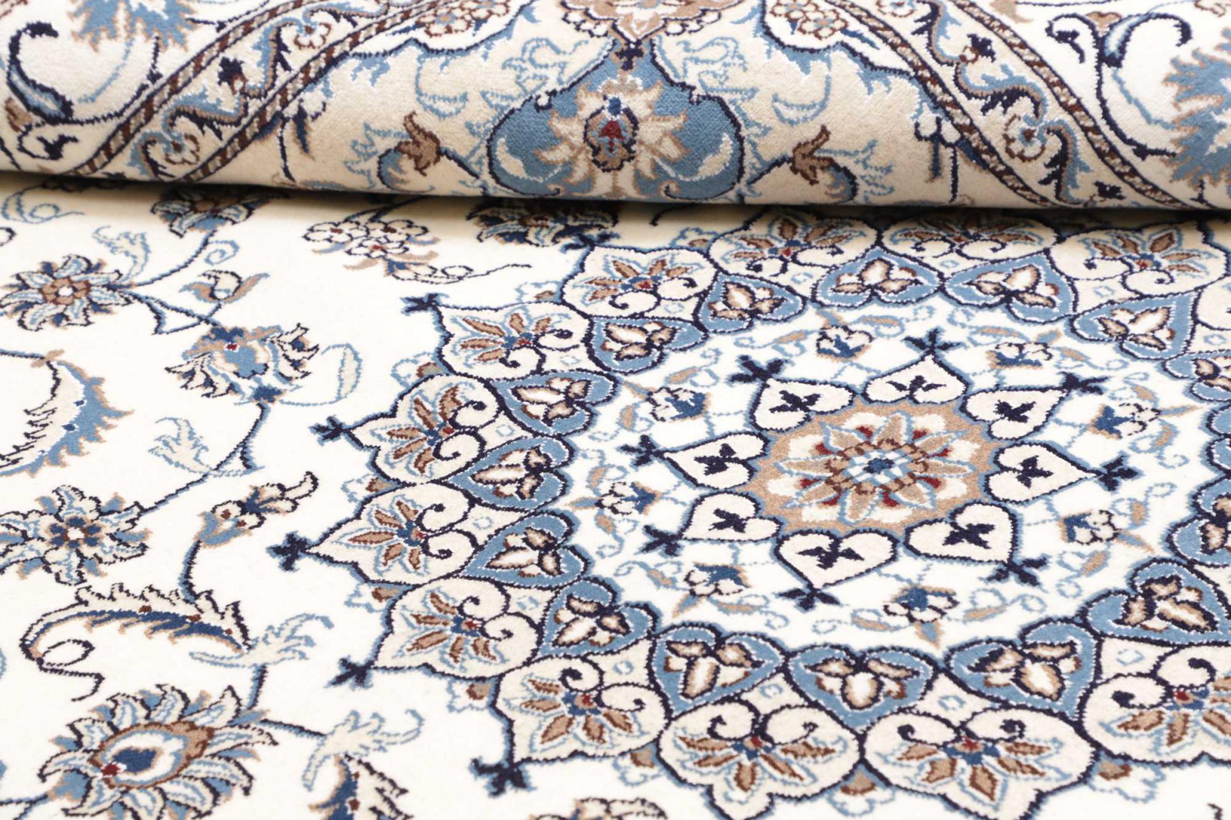 Rugs from the city of Nain, from the border of one of the largest deserts in Iran, are among the most famous Persian rugs in the world. Their typical design is characterized by floral ornaments, a medallion in the middle as well as beige and red or blue shades. Thanks to their designations 4La, 6La, 9La and 12La, the finenesses of a Nain rug can be seen at a glance. The lower the "La" number, the higher the knot density and thus the finer the rug.