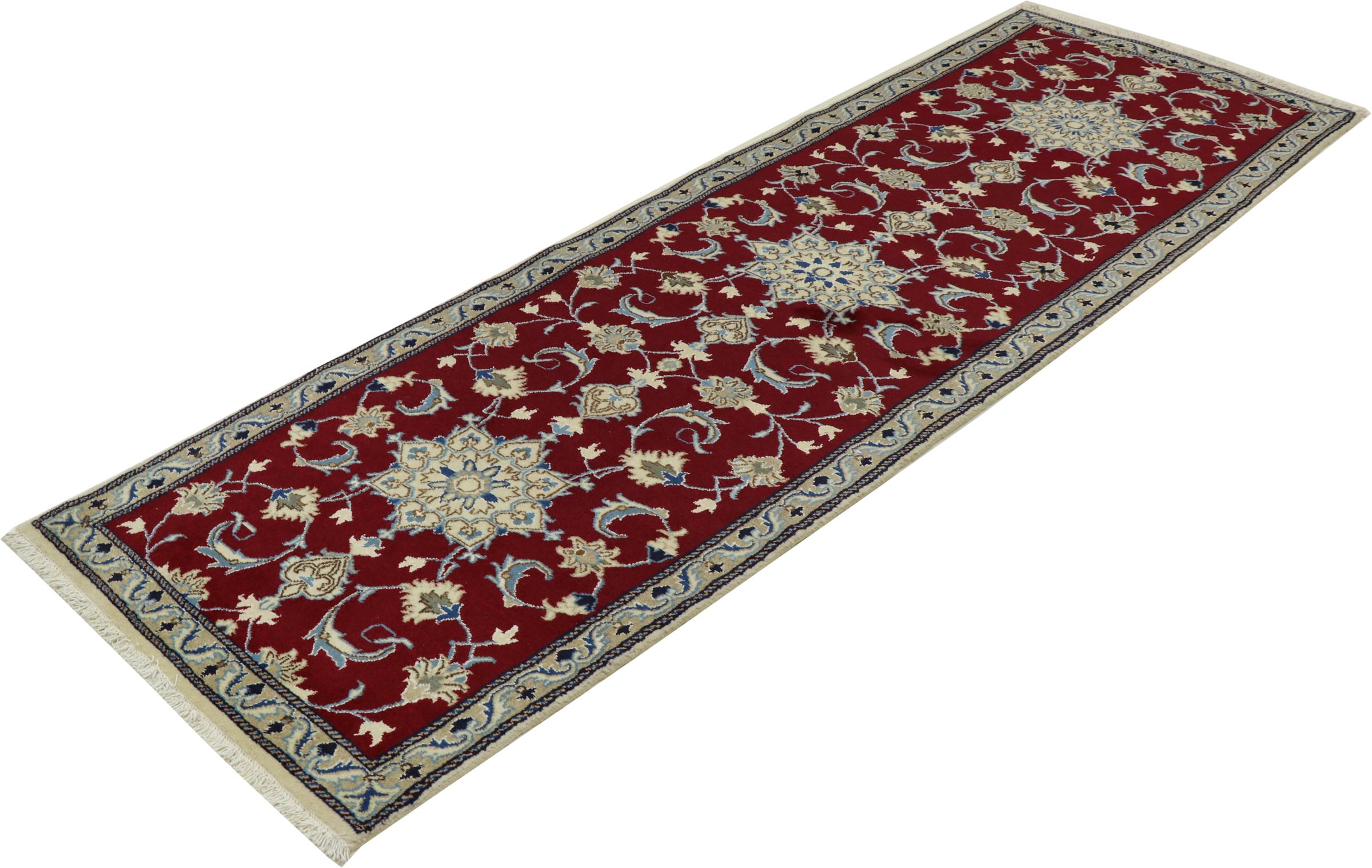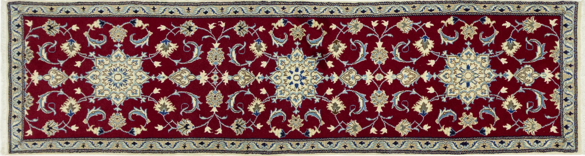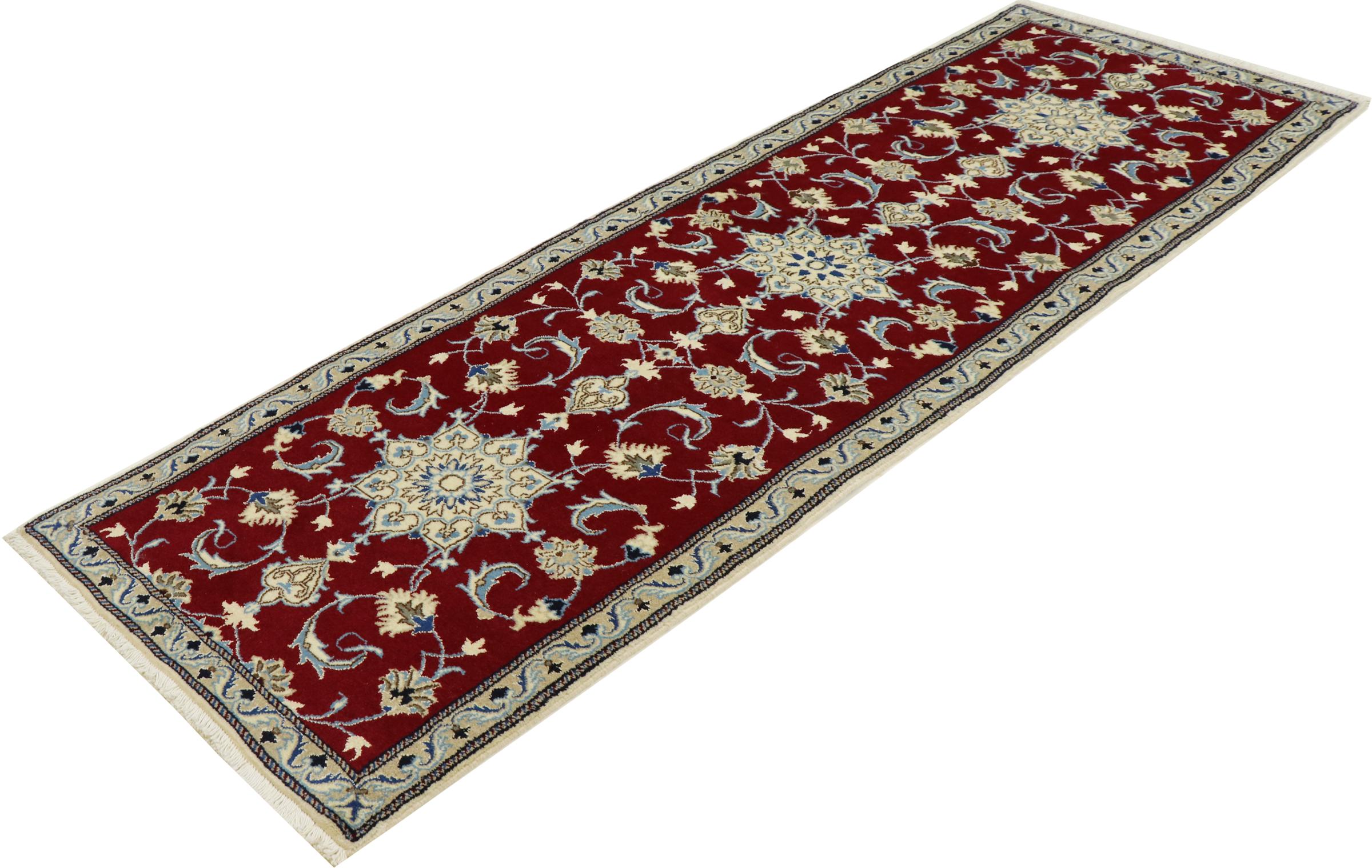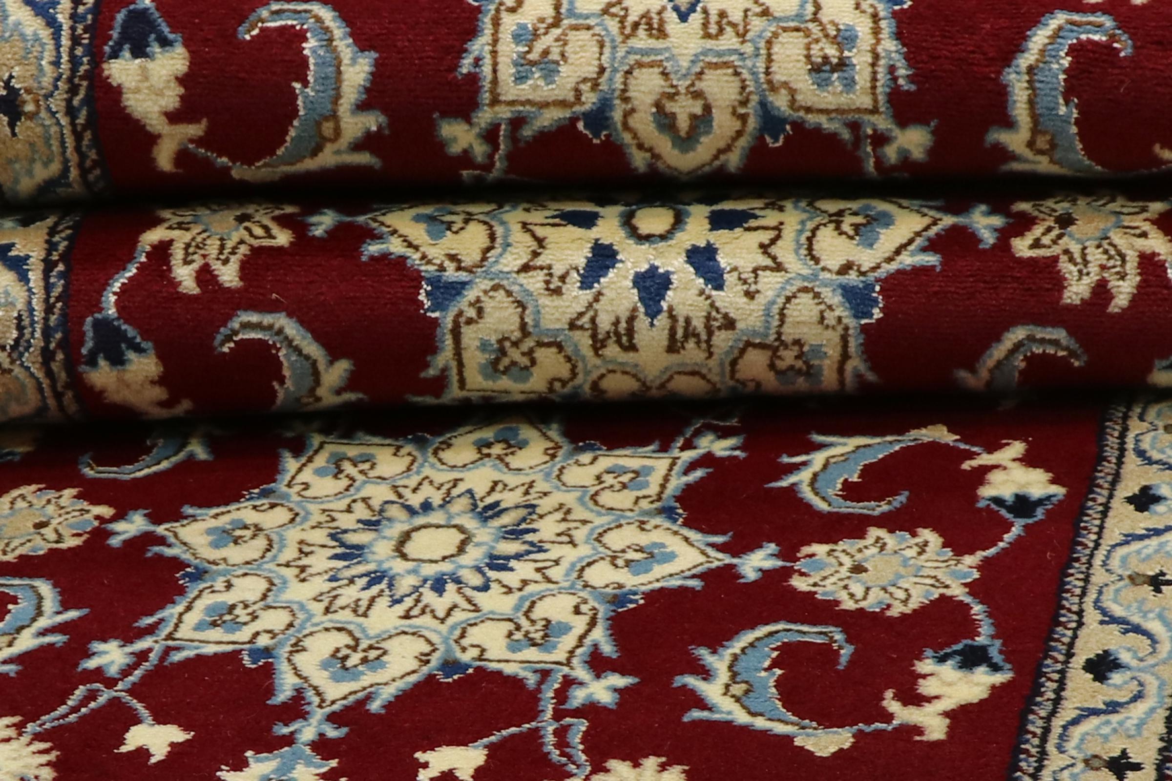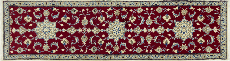 Rugs from the city of Nain, from the border of one of the largest deserts in Iran, are among the most famous Persian rugs in the world. Their typical design is characterized by floral ornaments, a medallion in the middle as well as beige and red or blue shades. Thanks to their designations 4La, 6La, 9La and 12La, the finenesses of a Nain rug can be seen at a glance. The lower the "La" number, the higher the knot density and thus the finer the rug.