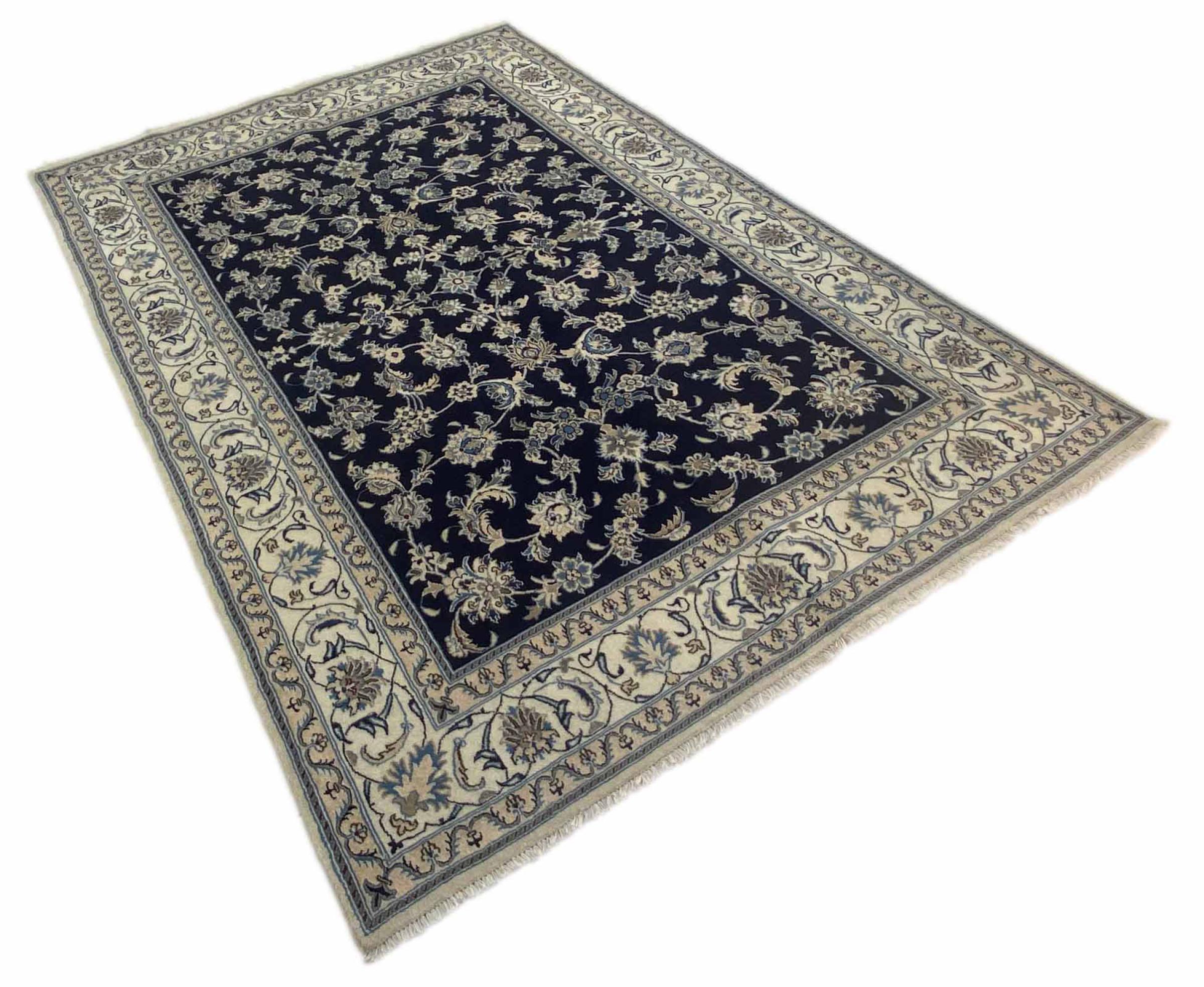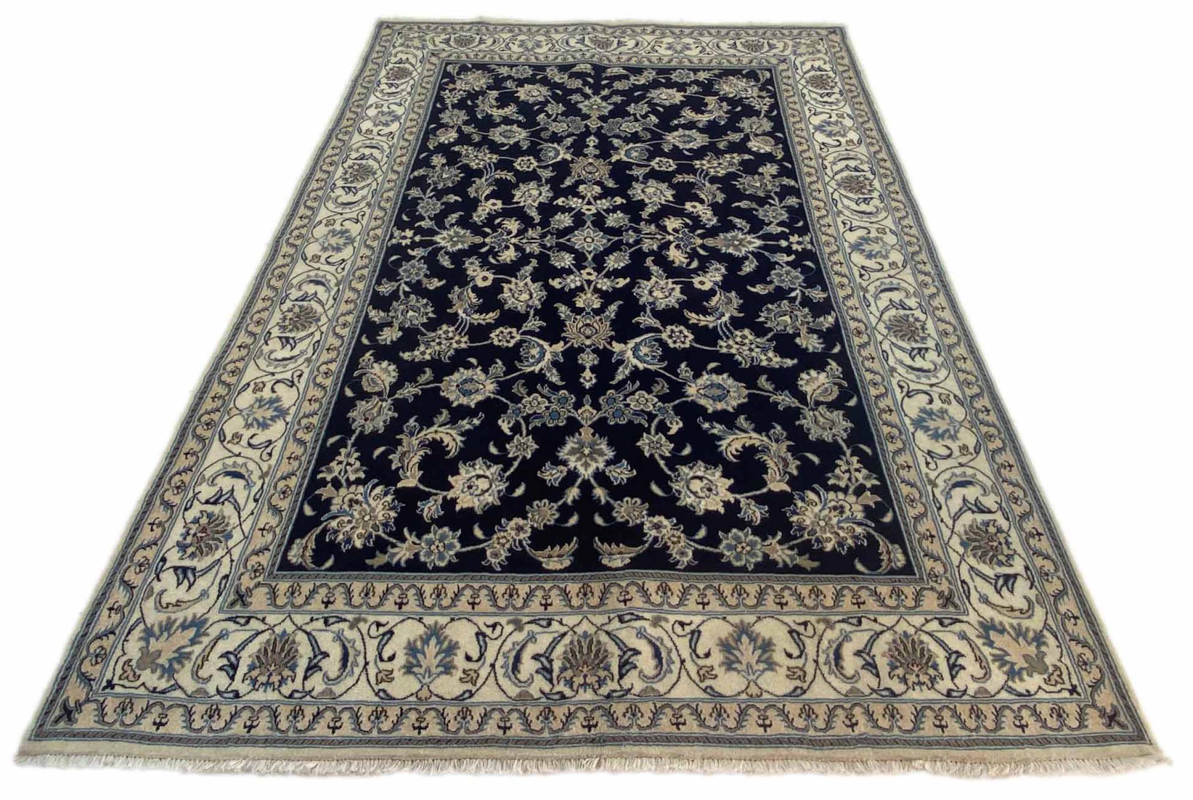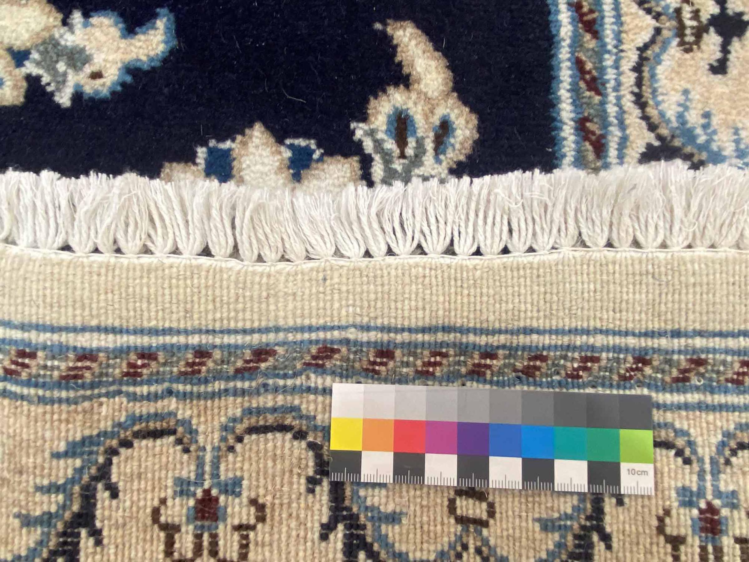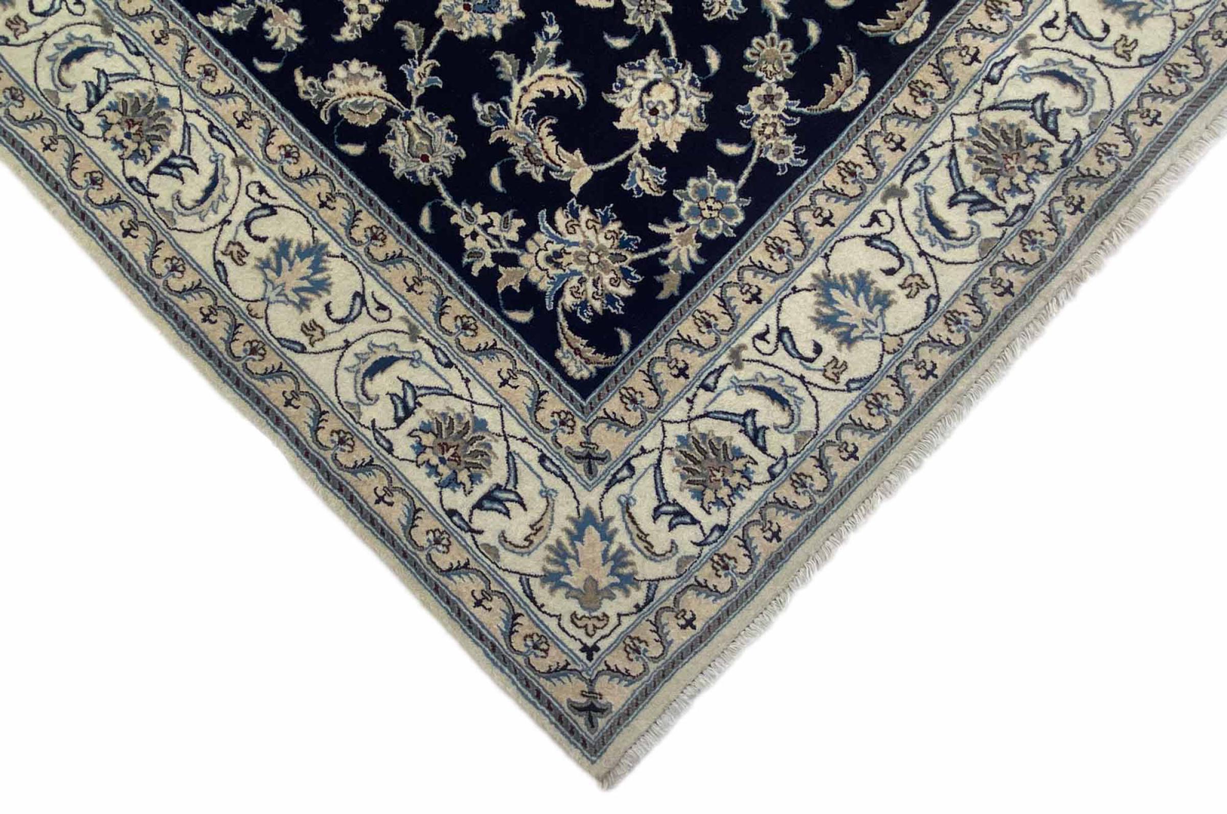 Rugs from the city of Nain, from the border of one of the largest deserts in Iran, are among the most famous Persian rugs in the world. Their typical design is characterized by floral ornaments, a medallion in the middle as well as beige and red or blue shades. Thanks to their designations 4La, 6La, 9La and 12La, the finenesses of a Nain rug can be seen at a glance. The lower the "La" number, the higher the knot density and thus the finer the rug.