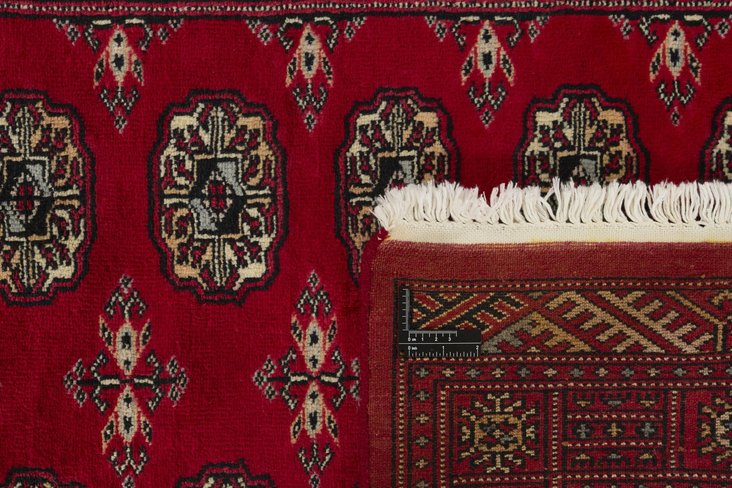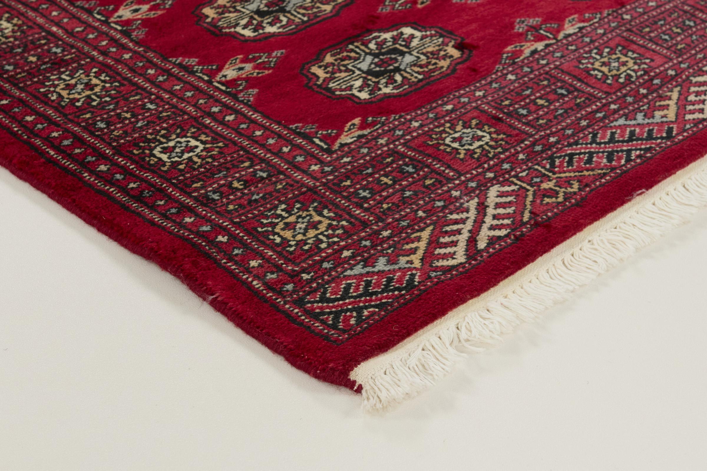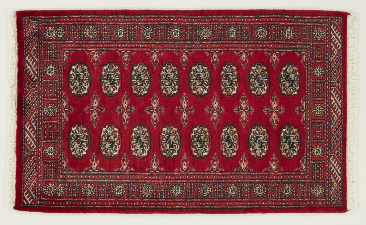 A large part of Pakistani rug production takes place in and around the cities of Lahore and Karachi. Many of the rug knotters of that time fled to Pakistan during the war with India and settled there. Today, especially hand-knotted Pakistan Bukhara rugs are well-known. Similar to the Afghan oriental rugs, Pakistani rugs are also made in dark colours and mostly have shades of red. Even the well-known elephant foot pattern (repeating octagonal pattern) can be found on a Pakistani.
