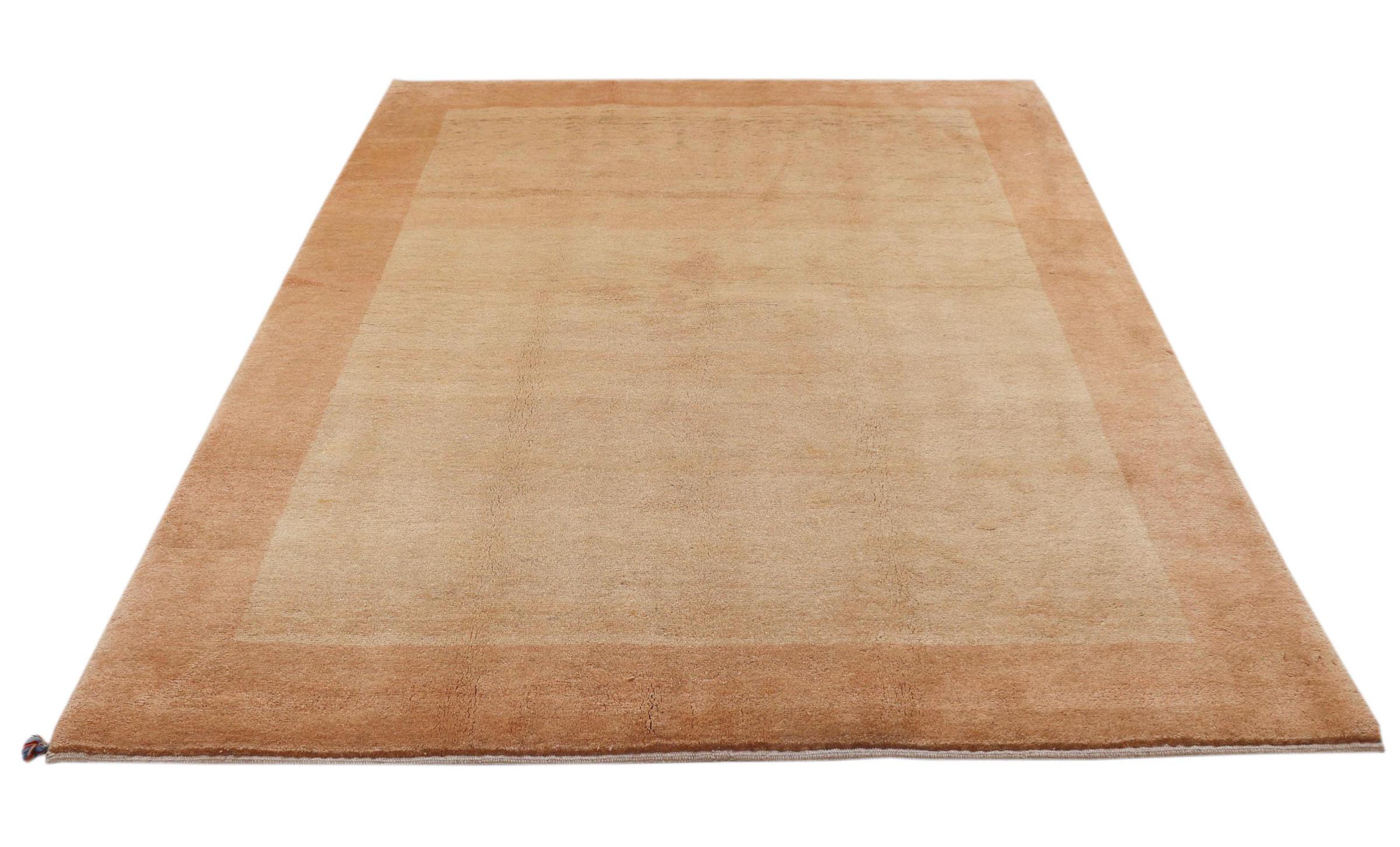 This beautiful rug is a Persian Gabbeh and thus belongs to the highest quality Gabbeh rugs. The rugs are knotted by nomads or semi-nomads in Iran following traditional handicraft. The simple motifs and patterns are mostly inspired by the nomads' close environment. For example camels, trees or bushes can be found on the traditional rugs. Persian Gabbeh rugs are made of wool from locally raised flocks of sheep. The wool is therefore mostly still spun by hand. Thus each of these oriental rugs embodies a unique character of centuries-old culture.