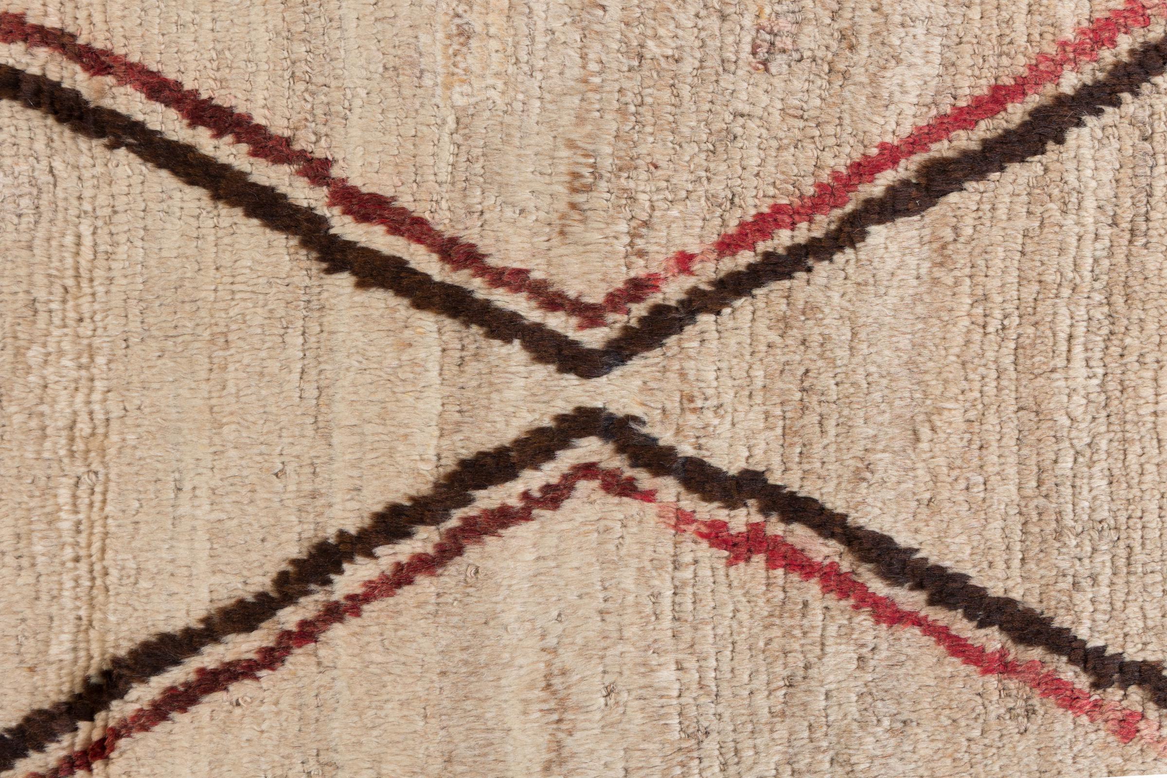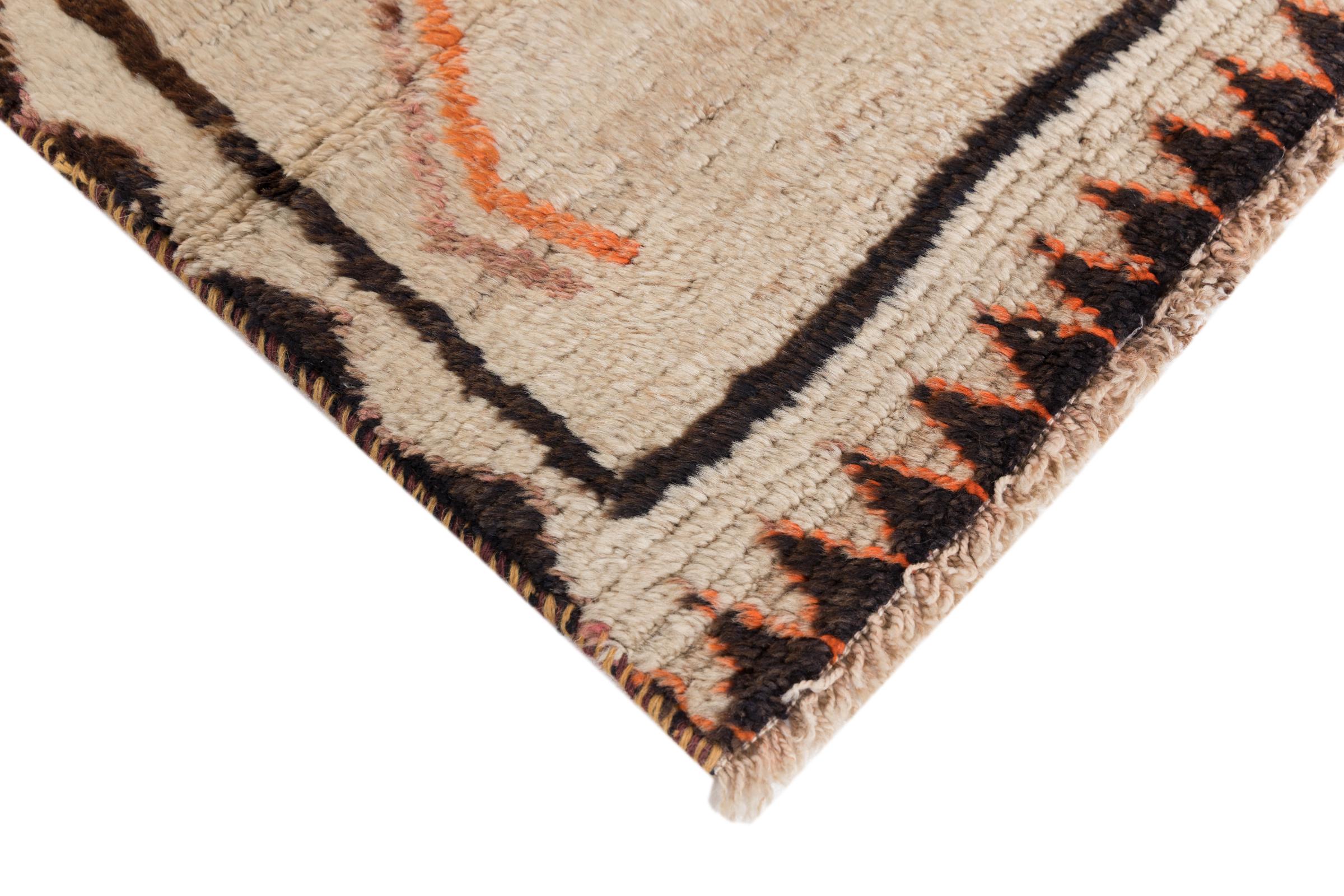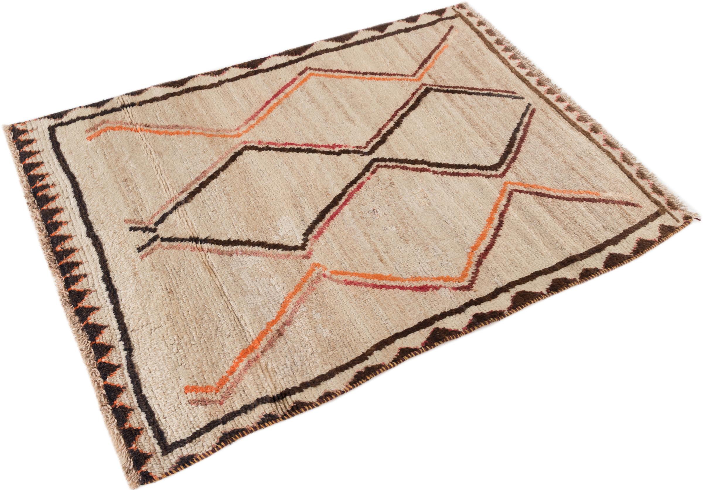 This beautiful rug is a Persian Gabbeh and thus belongs to the highest quality Gabbeh rugs. The rugs are knotted by nomads or semi-nomads in Iran following traditional handicraft. The simple motifs and patterns are mostly inspired by the nomads' close environment. For example camels, trees or bushes can be found on the traditional rugs. Persian Gabbeh rugs are made of wool from locally raised flocks of sheep. The wool is therefore mostly still spun by hand. Thus each of these oriental rugs embodies a unique character of centuries-old culture.