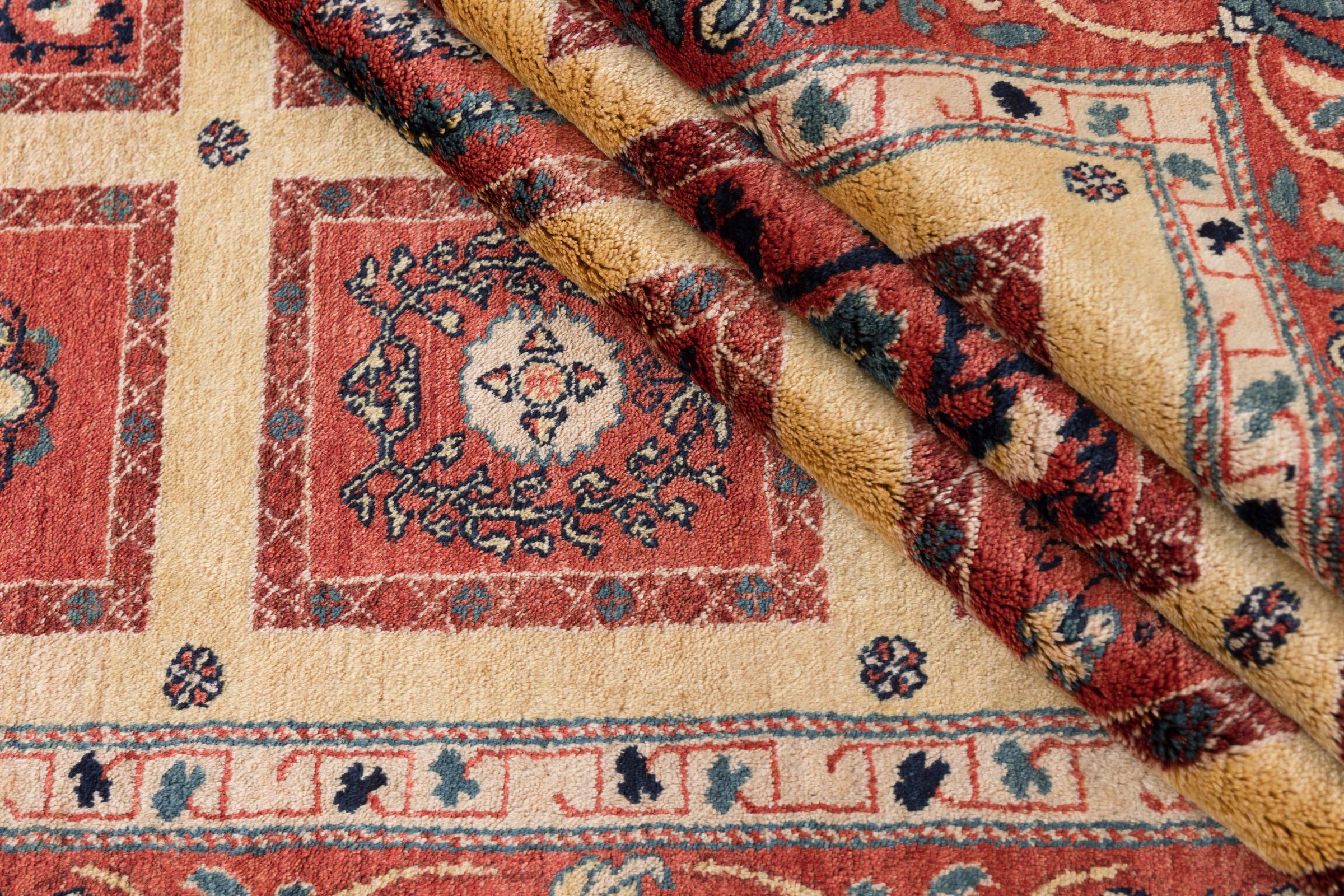 This rug is made of hand spun sheep wool of the highest quality. Especially in Iran (former Persia), Afghanistan and Pakistan wool is still spun by hand before the actual knotting of the rug begins. Wool has proven itself as a natural and extremely hard-wearing material over centuries. Among other things, it has dirt-repellent and heat-insulating properties. At the same time, wool is incomparably soft and has a natural shine.