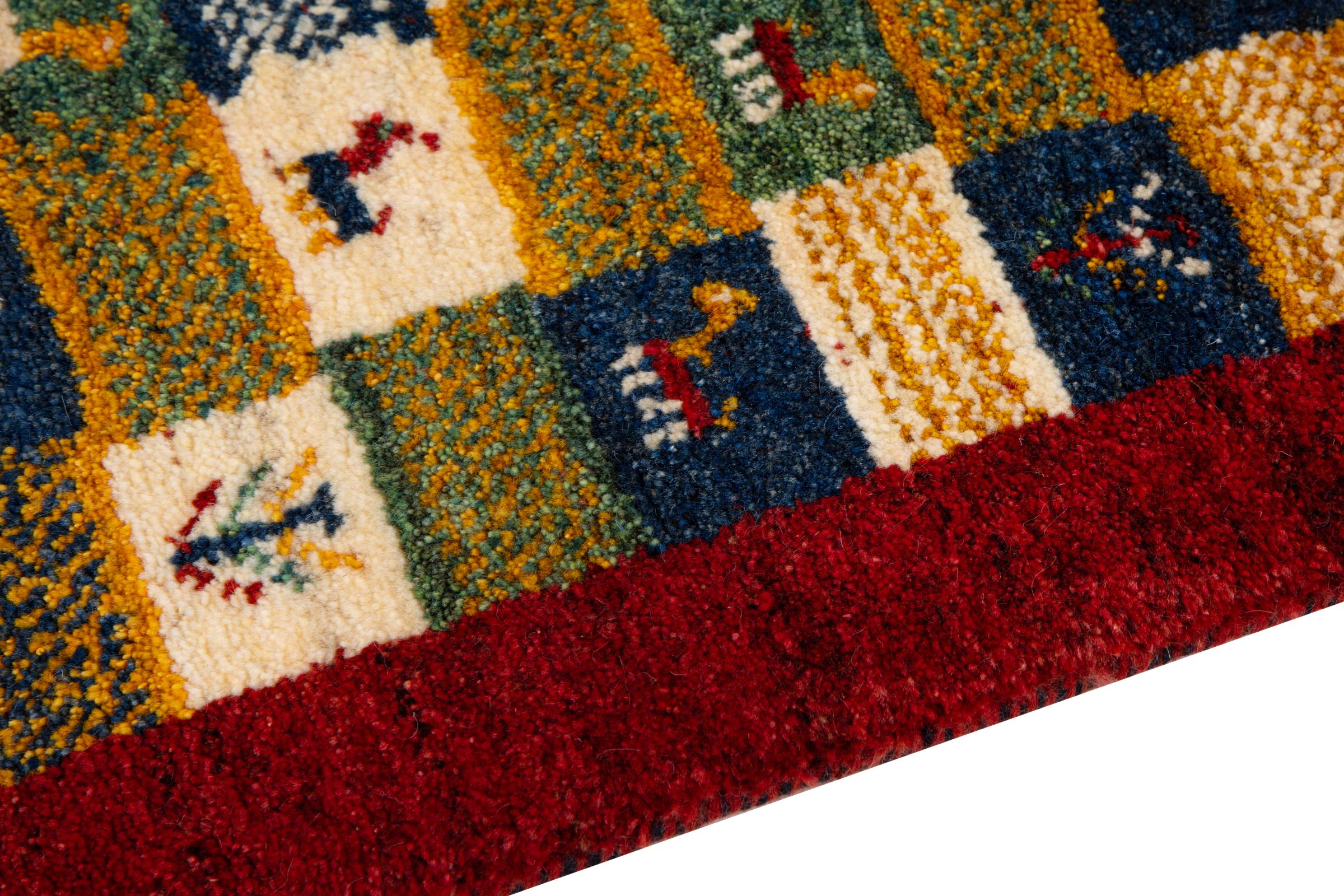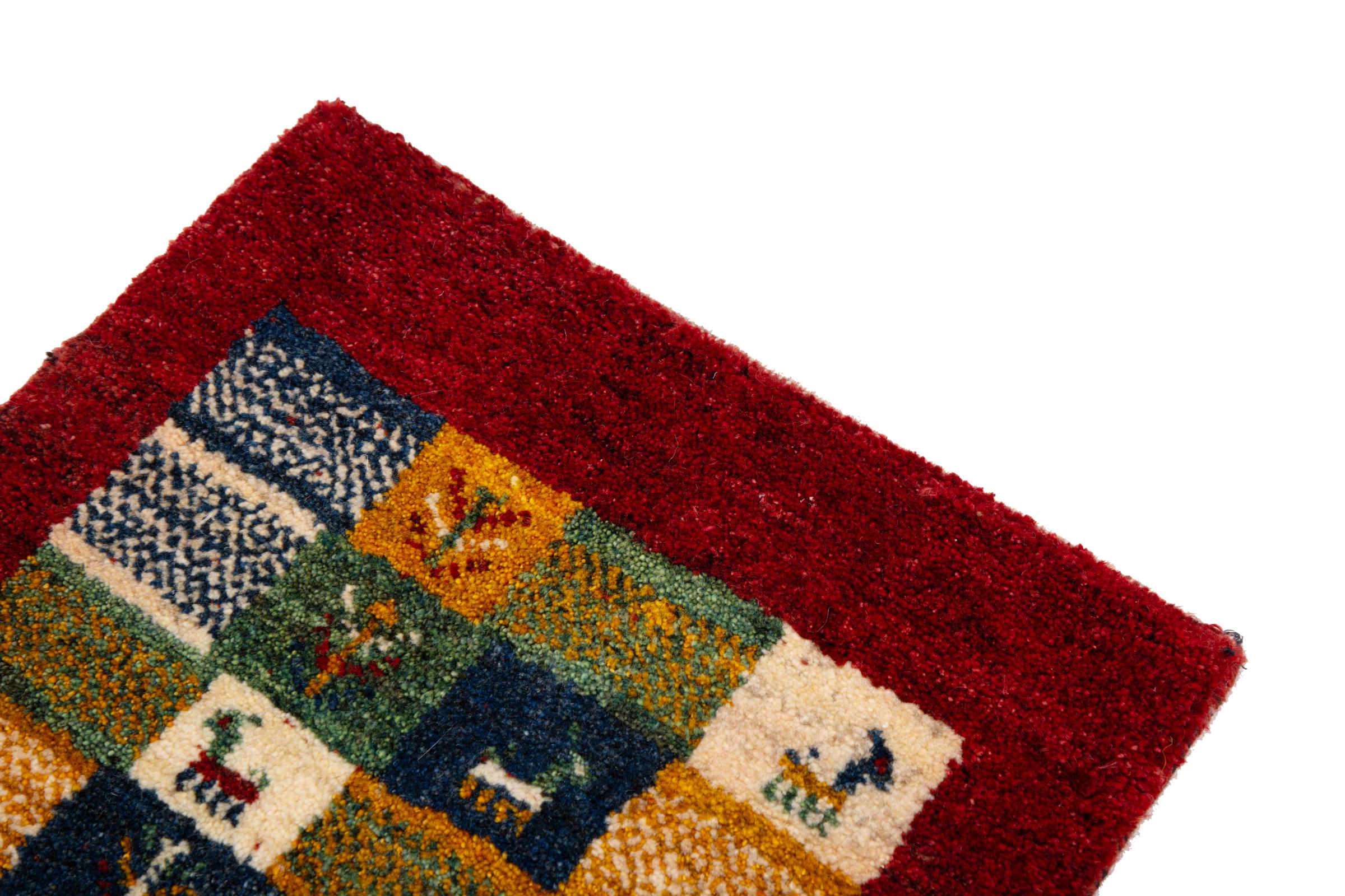 Carpet ID: 29358500205600 Size: 78x49 cm Thickness: ap. 15 mm Knot density: 72 000 - 90 000 / m² Manufacturing: Knotted by hand Pile: Handspun wool Warp: Sheep wool Origin: Persia Age: New Weight: ap. 2 kg Also know as Qashqai, Gaschgai, Gashghai, Kashgai In stock: Unique - Only 1 in stock