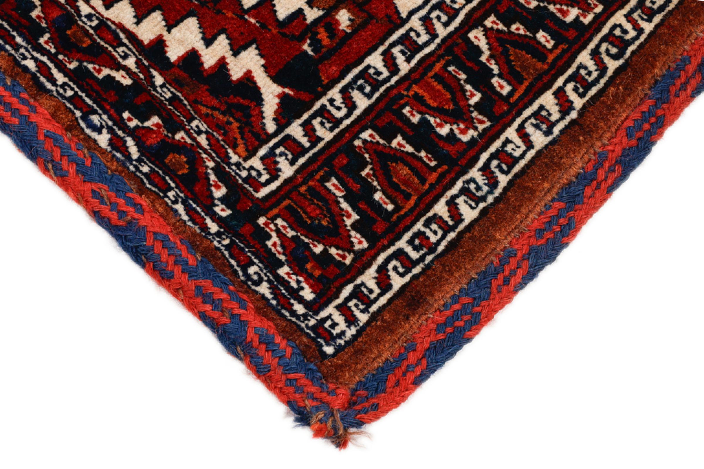 Carpet ID: 232111009063305 Size: 113x49 cm Thickness: ap. 5 mm Knot density: 128 000 - 160 000 / m² Manufacturing: Knotted by hand Pile: Sheep wool Warp: Sheep wool Origin: Azerbaijan / Russia Age: Old, 30-50 years Weight: ap. 1 kg In stock: Unique - Only 1 in stock