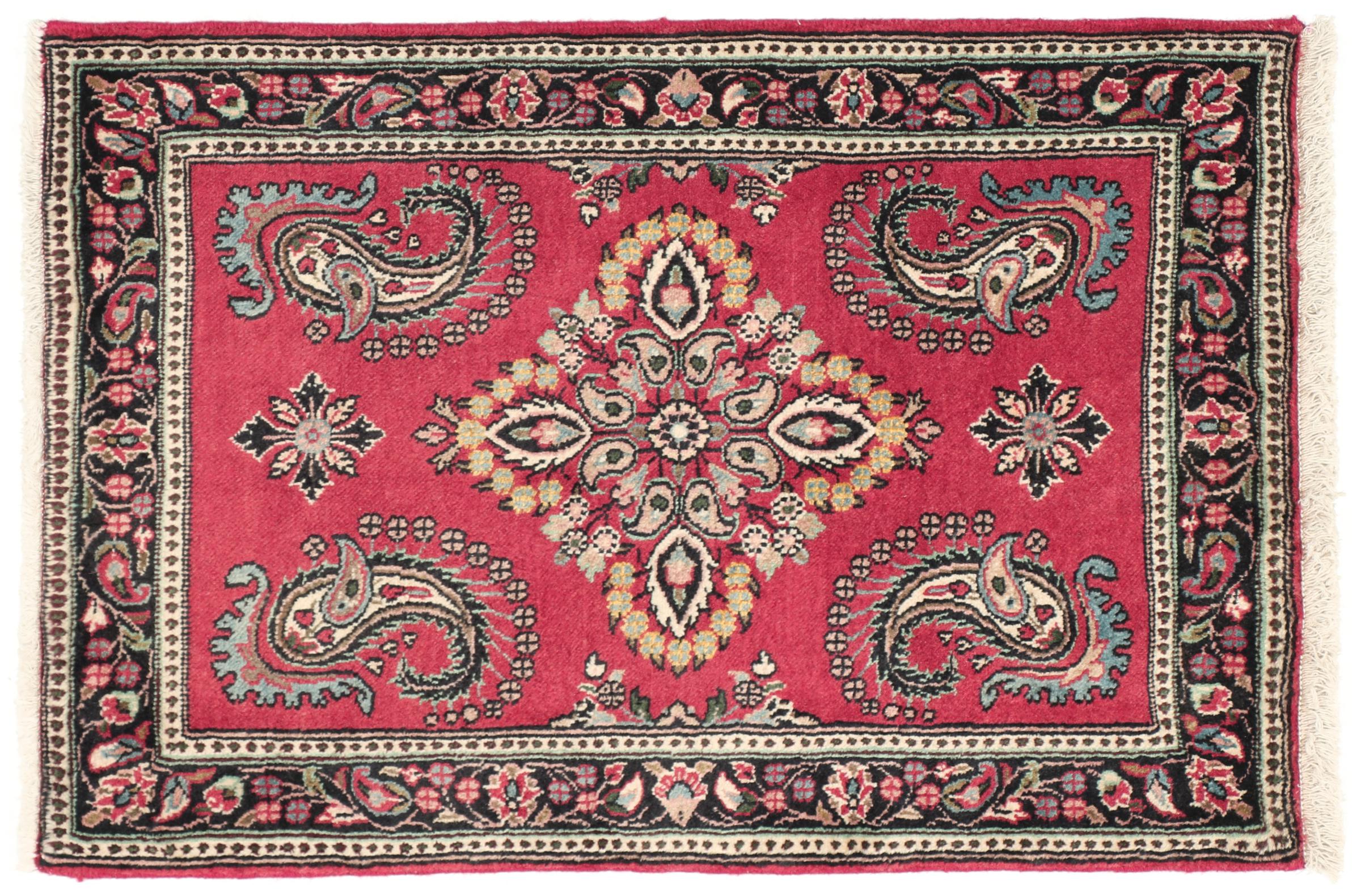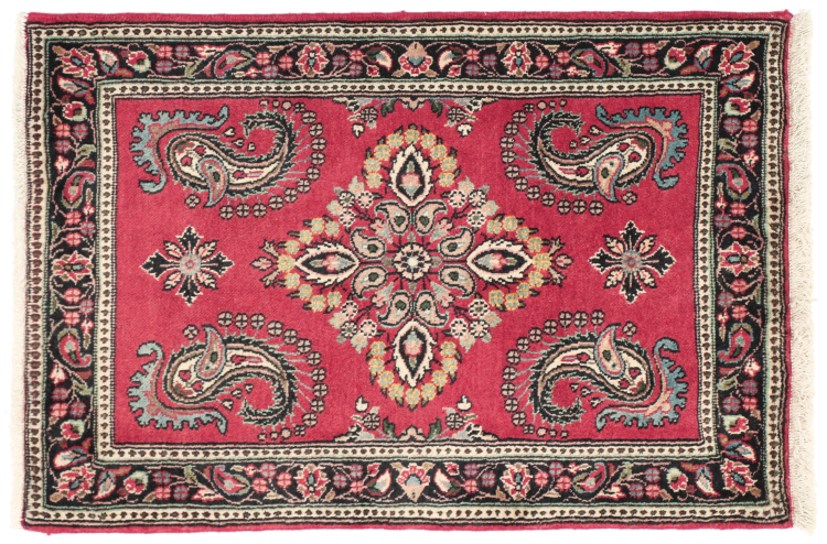 Carpet ID: 213835008844302 Size: 99x68 cm Thickness: ap. 12 mm Knot density: 200 000 - 250 000 / m² Manufacturing: Knotted by hand Pile: Handspun wool Warp: Cotton Origin: Persia Age: New Weight: ap. 3 kg Also know as Arak , Sarough, Sarouk, Saruk, Saroq, Sultanabad In stock: Unique - Only 1 in stock