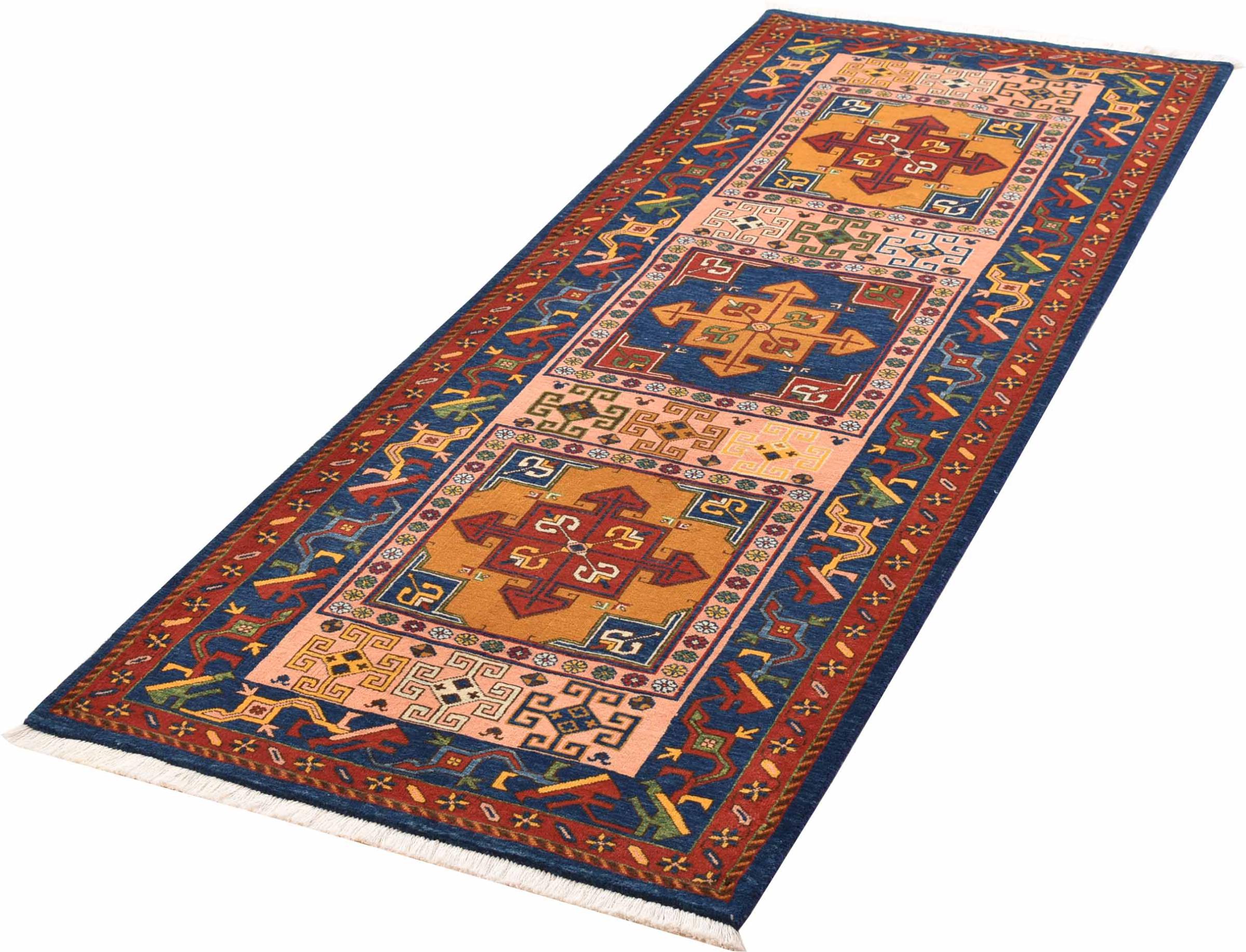 These kilim rugs show a decisive difference to hand-knotted rugs - they are woven by hand. Thus, they do not have a high pile of wool and are often flatter and rougher than knotted wool rugs. Their making is less elaborate and so they are usually much more affordable. As an advantage, kilim rugs are also much lighter and can be laid out from the front and back side. Hand-woven kilims originally come from the former Persia and are now also often made in Afghanistan. They have rather simple, straightforward patterns, which are determined by their weaving technique.