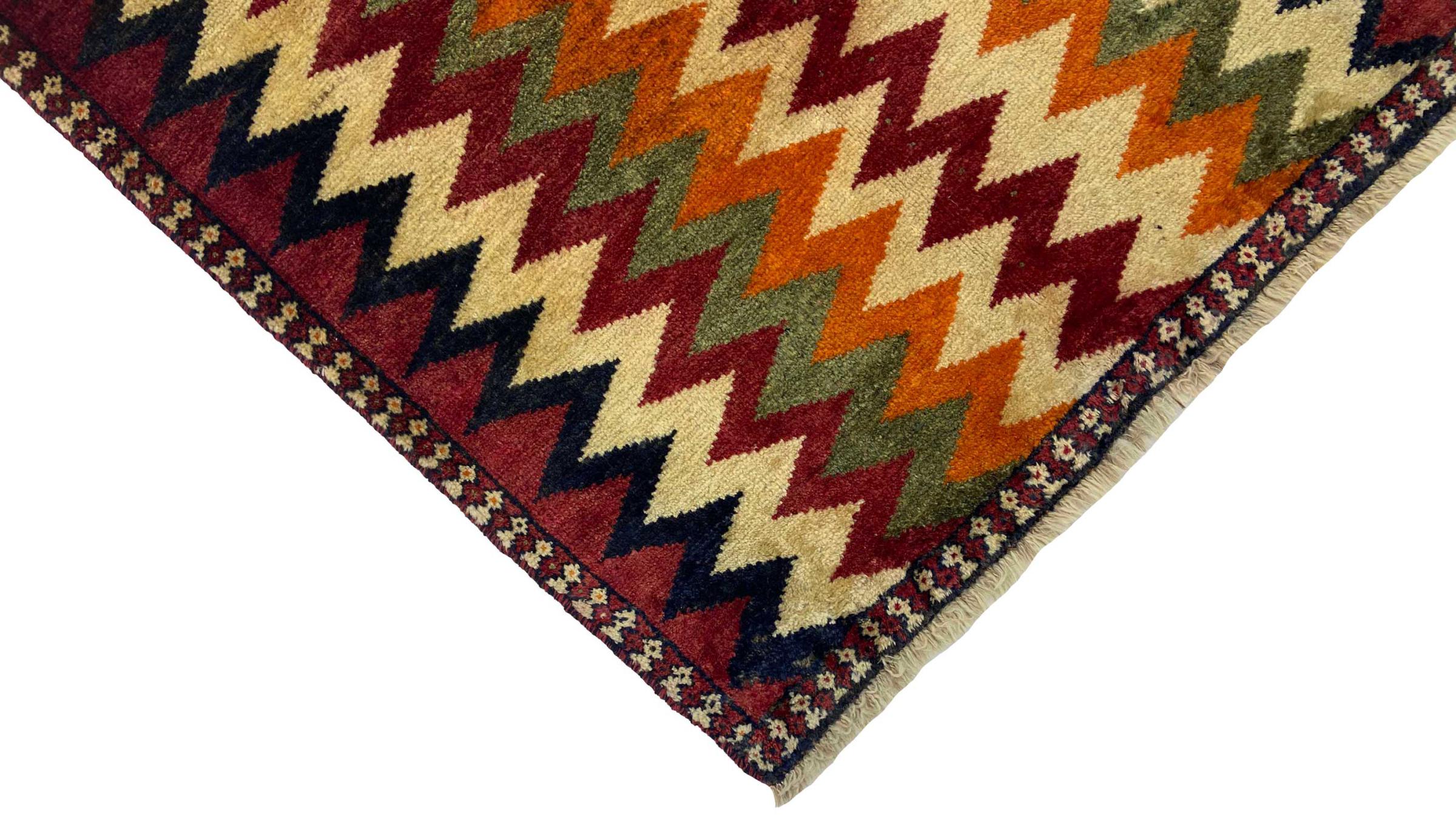 This rug belongs to village and nomadic rugs from Iran, formerly Persia. This type of rug is knotted by hand in smaller towns and villages in old tradition. Even nomads still knot Persian rugs in the open air. The rugs are knotted without a draft and completely from the mind. They are characterized by classical ornaments, which are arranged in straight and geometrical patterns. Thanks to their cultural-traditional origin, these rugs have a unique character that embodies ancient Persia.