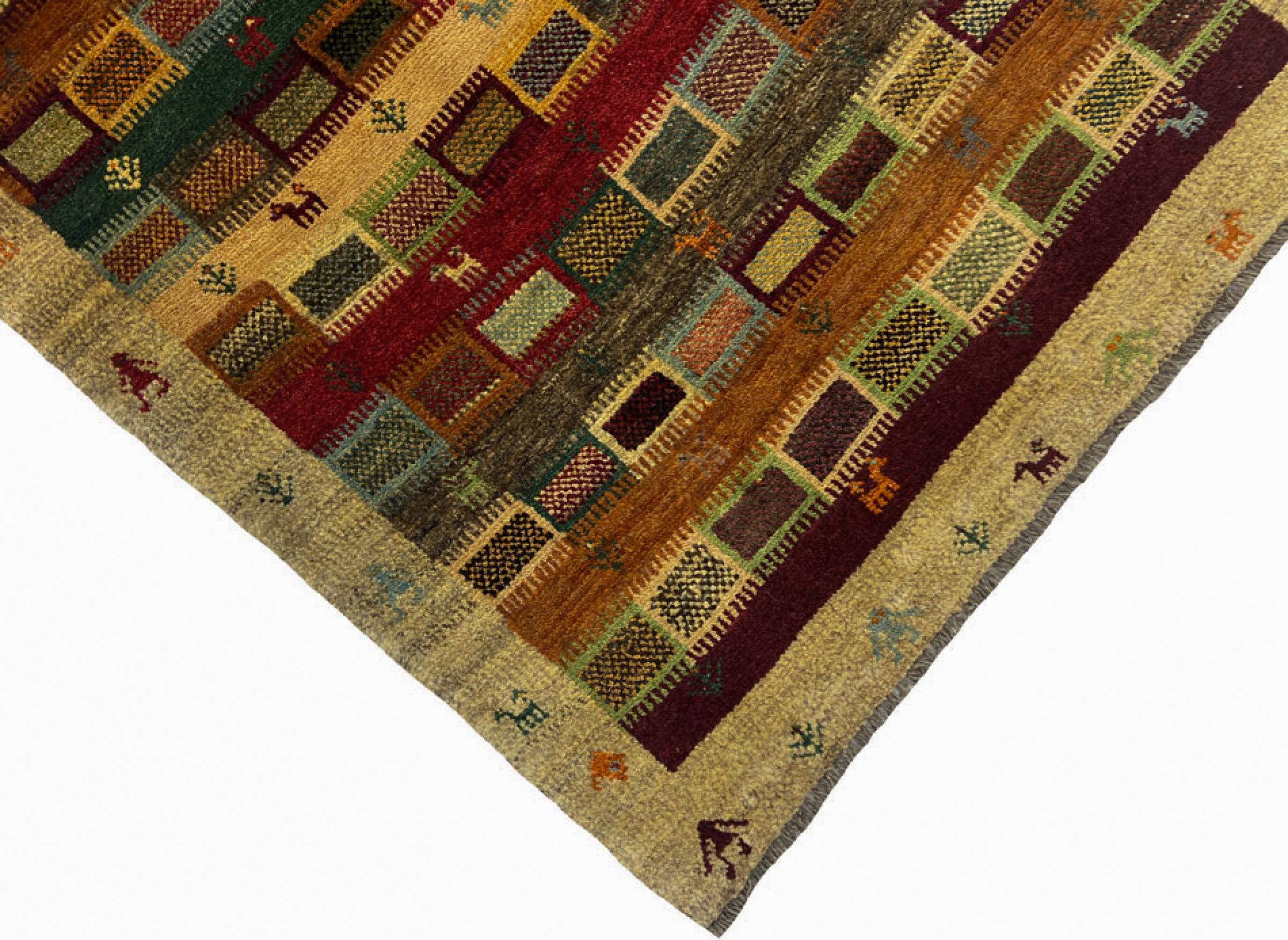 This rug belongs to village and nomadic rugs from Iran, formerly Persia. This type of rug is knotted by hand in smaller towns and villages in old tradition. Even nomads still knot Persian rugs in the open air. The rugs are knotted without a draft and completely from the mind. They are characterized by classical ornaments, which are arranged in straight and geometrical patterns. Thanks to their cultural-traditional origin, these rugs have a unique character that embodies ancient Persia.