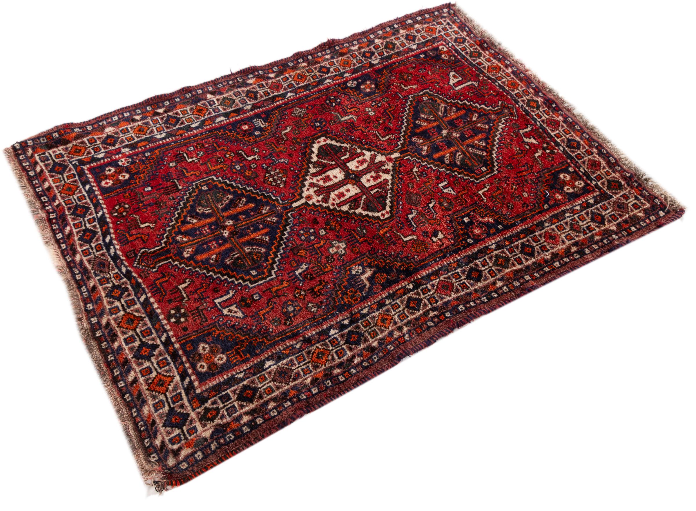 This Shiraz carpet reflects the handicraft of Nomads from the province Fars. Its simple design, the beautiful colours and the good quality convince without any doubt. Their geometric patterns make them the most modern pieces for scandinavian interior concepts. If you like Persian carpets, you will love Shiraz carpets.