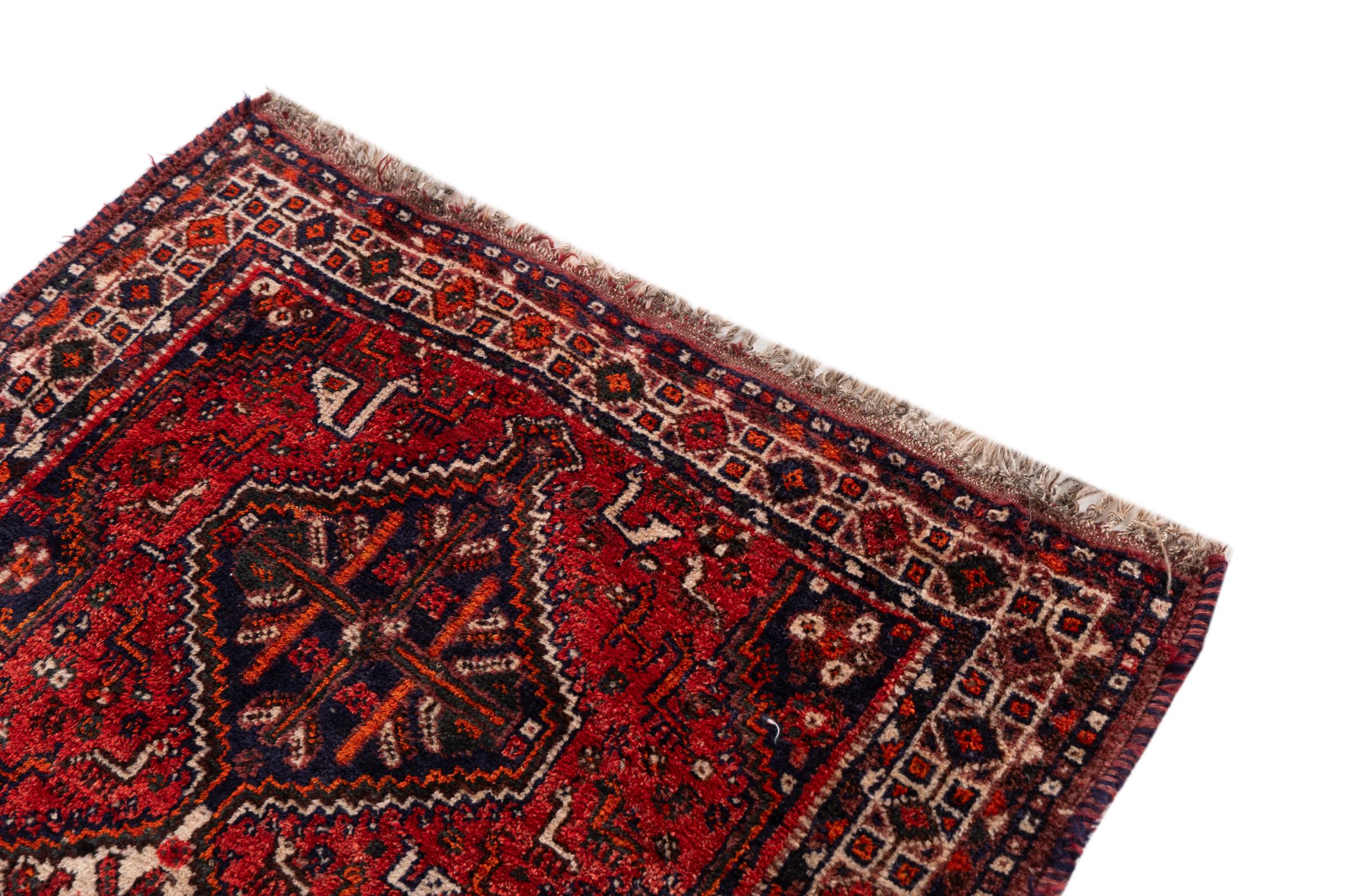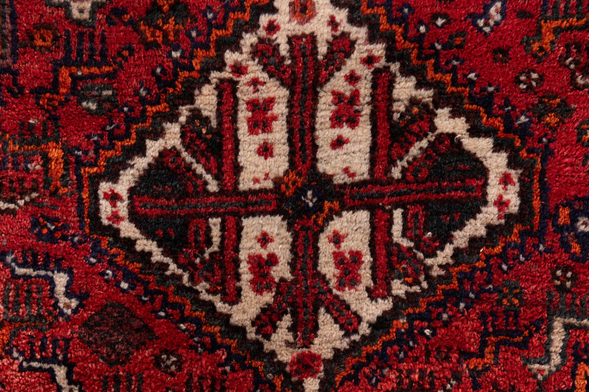 This rug belongs to village and nomadic rugs from Iran, formerly Persia. This type of rug is knotted by hand in smaller towns and villages in old tradition. Even nomads still knot Persian rugs in the open air. The rugs are knotted without a draft and completely from the mind. They are characterized by classical ornaments, which are arranged in straight and geometrical patterns. Thanks to their cultural-traditional origin, these rugs have a unique character that embodies ancient Persia.