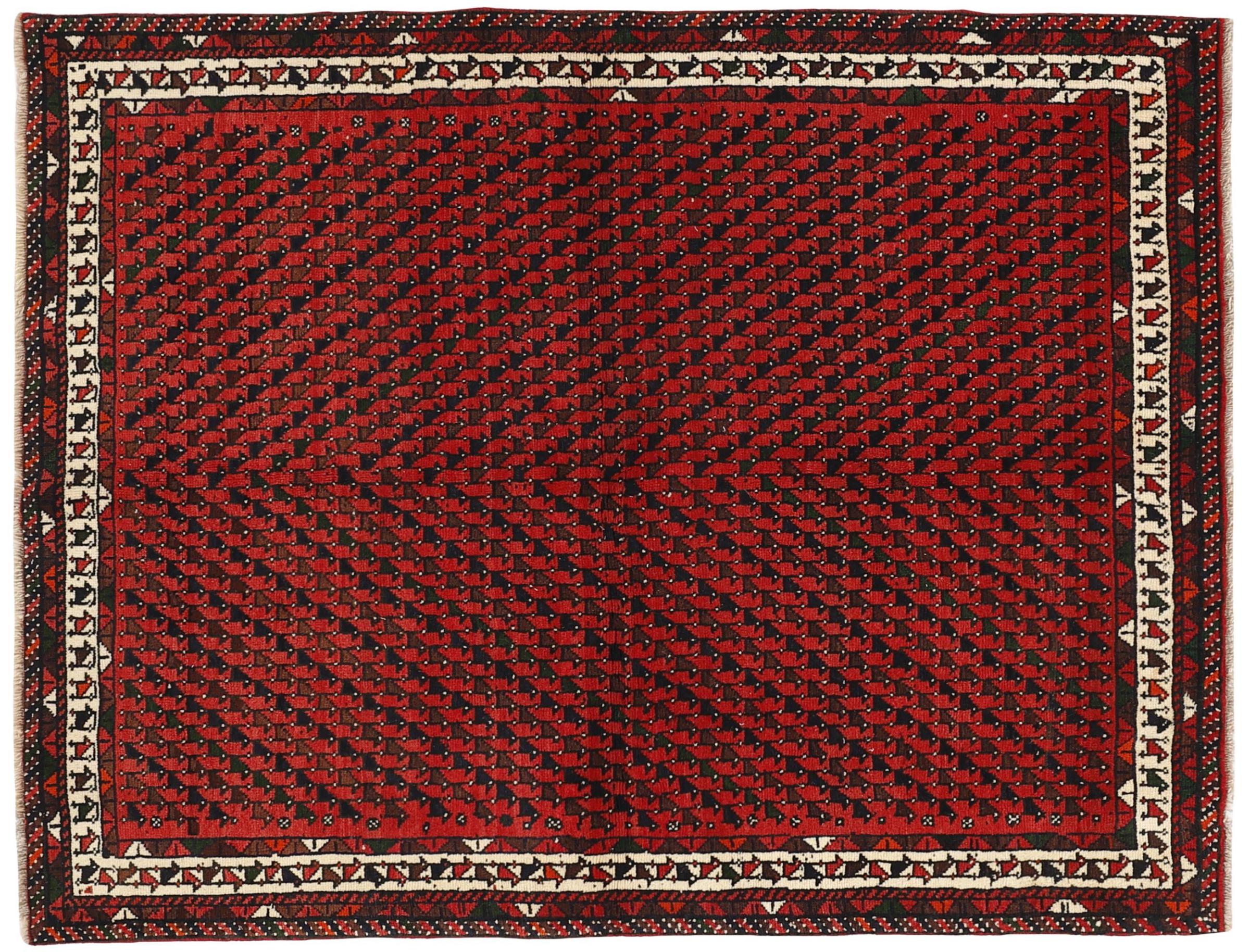 This rug belongs to village and nomadic rugs from Iran, formerly Persia. This type of rug is knotted by hand in smaller towns and villages in old tradition. Even nomads still knot Persian rugs in the open air. The rugs are knotted without a draft and completely from the mind. They are characterized by classical ornaments, which are arranged in straight and geometrical patterns. Thanks to their cultural-traditional origin, these rugs have a unique character that embodies ancient Persia.
