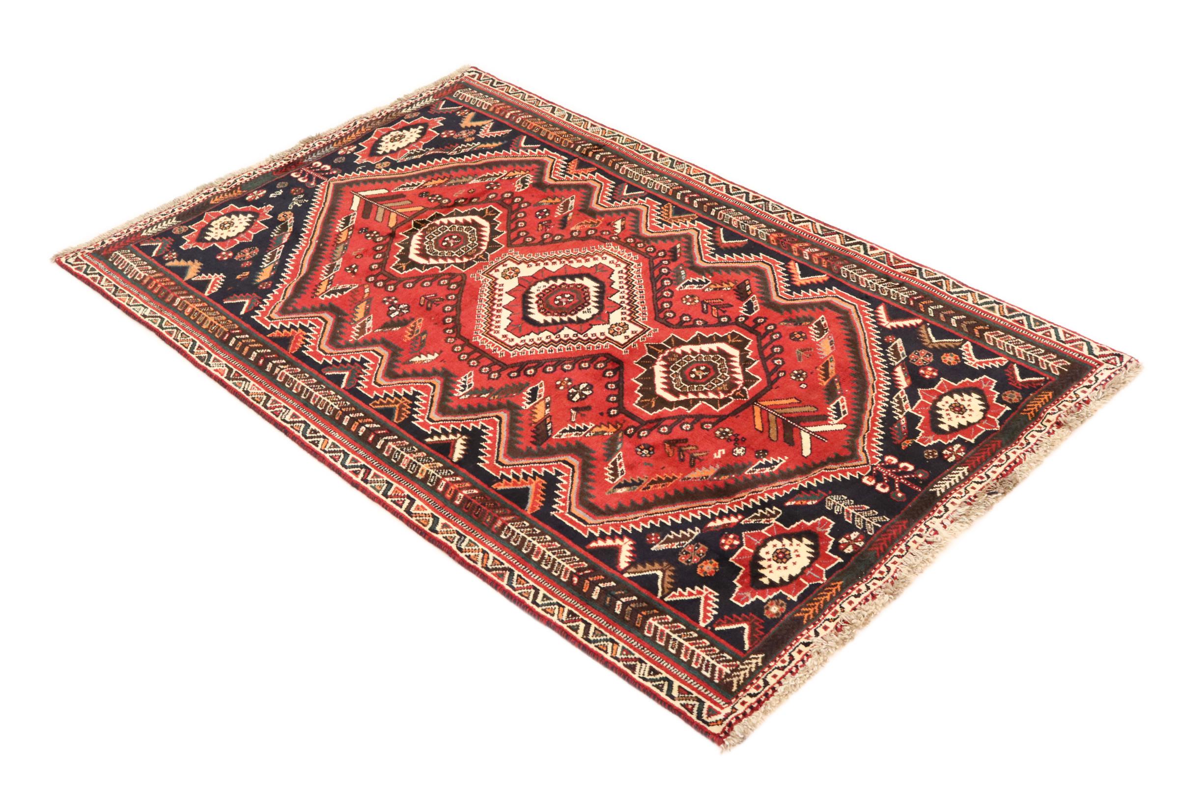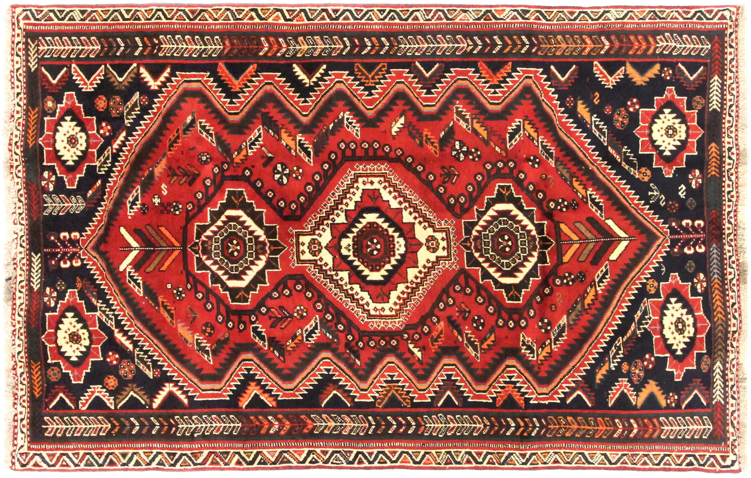 This Shiraz carpet reflects the handicraft of Nomads from the province Fars. Its simple design, the beautiful colours and the good quality convince without any doubt. Their geometric patterns make them the most modern pieces for scandinavian interior concepts. If you like Persian carpets, you will love Shiraz carpets.
