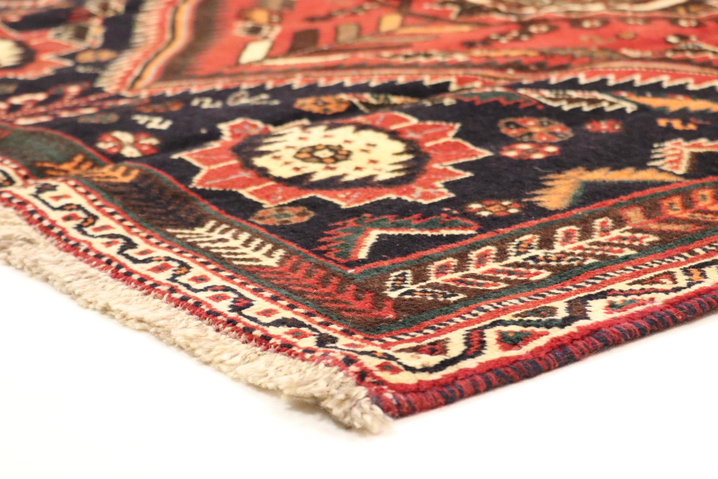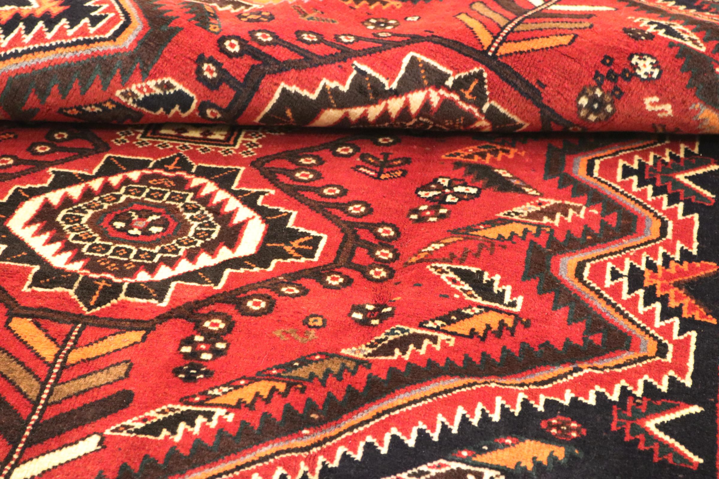 This rug belongs to village and nomadic rugs from Iran, formerly Persia. This type of rug is knotted by hand in smaller towns and villages in old tradition. Even nomads still knot Persian rugs in the open air. The rugs are knotted without a draft and completely from the mind. They are characterized by classical ornaments, which are arranged in straight and geometrical patterns. Thanks to their cultural-traditional origin, these rugs have a unique character that embodies ancient Persia.