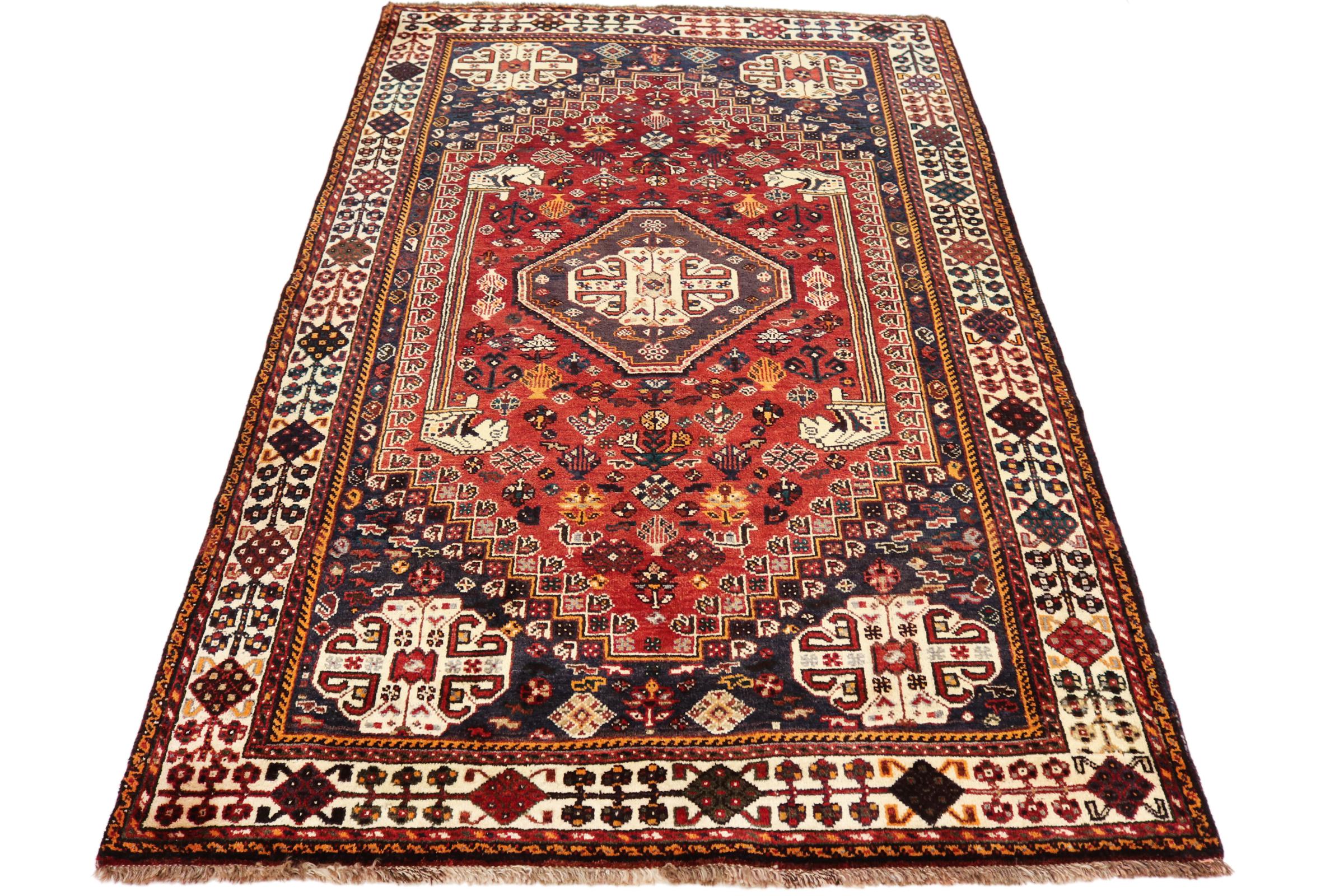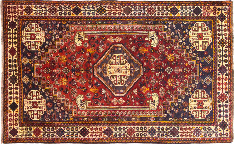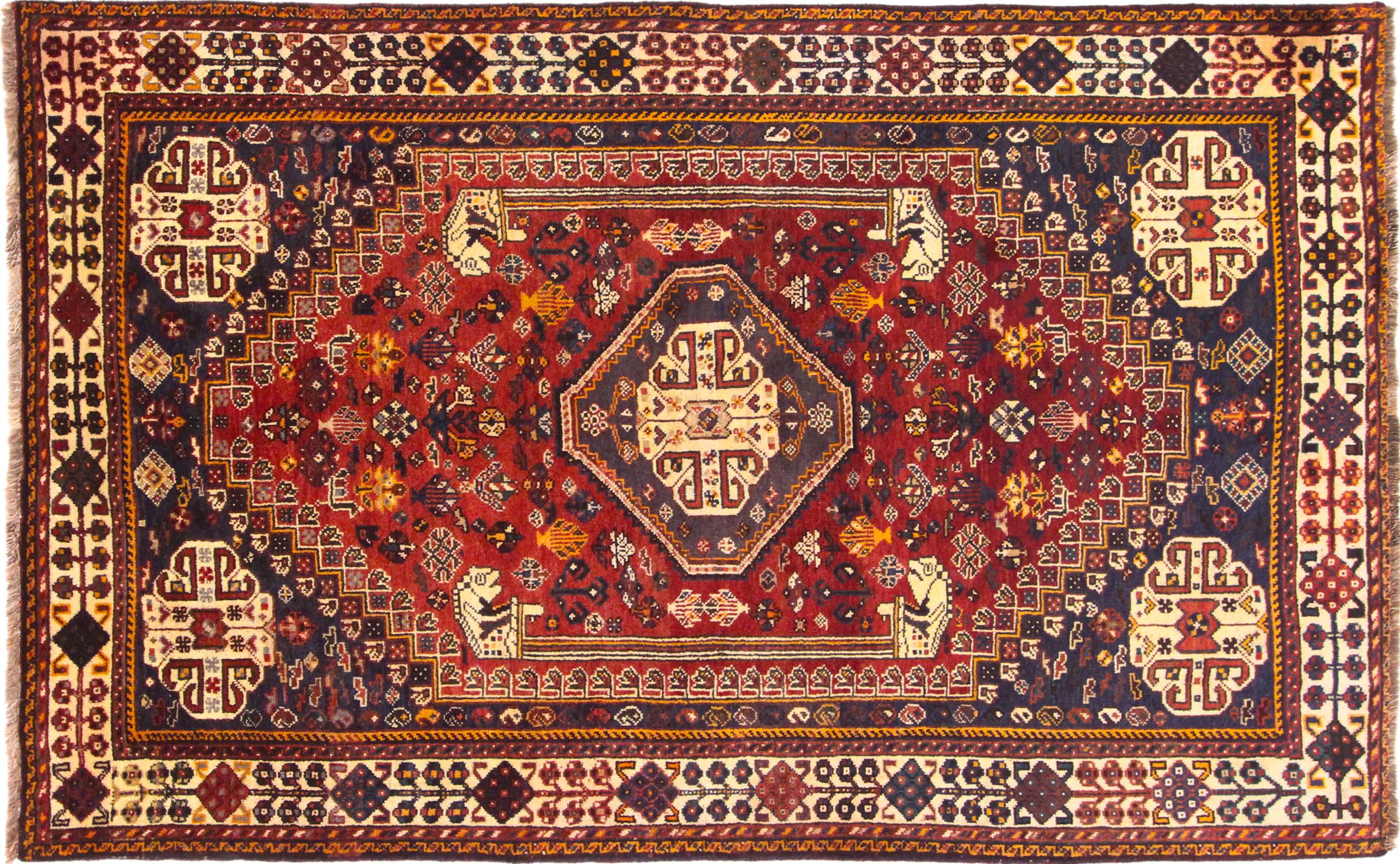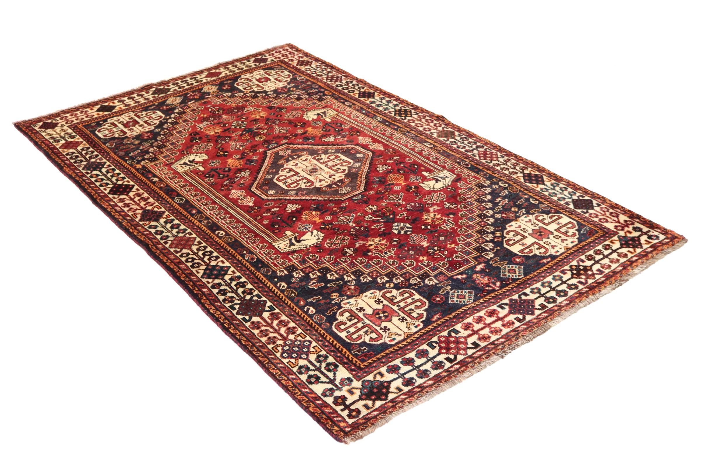 This Shiraz carpet reflects the handicraft of Nomads from the province Fars. Its simple design, the beautiful colours and the good quality convince without any doubt. Their geometric patterns make them the most modern pieces for scandinavian interior concepts. If you like Persian carpets, you will love Shiraz carpets.