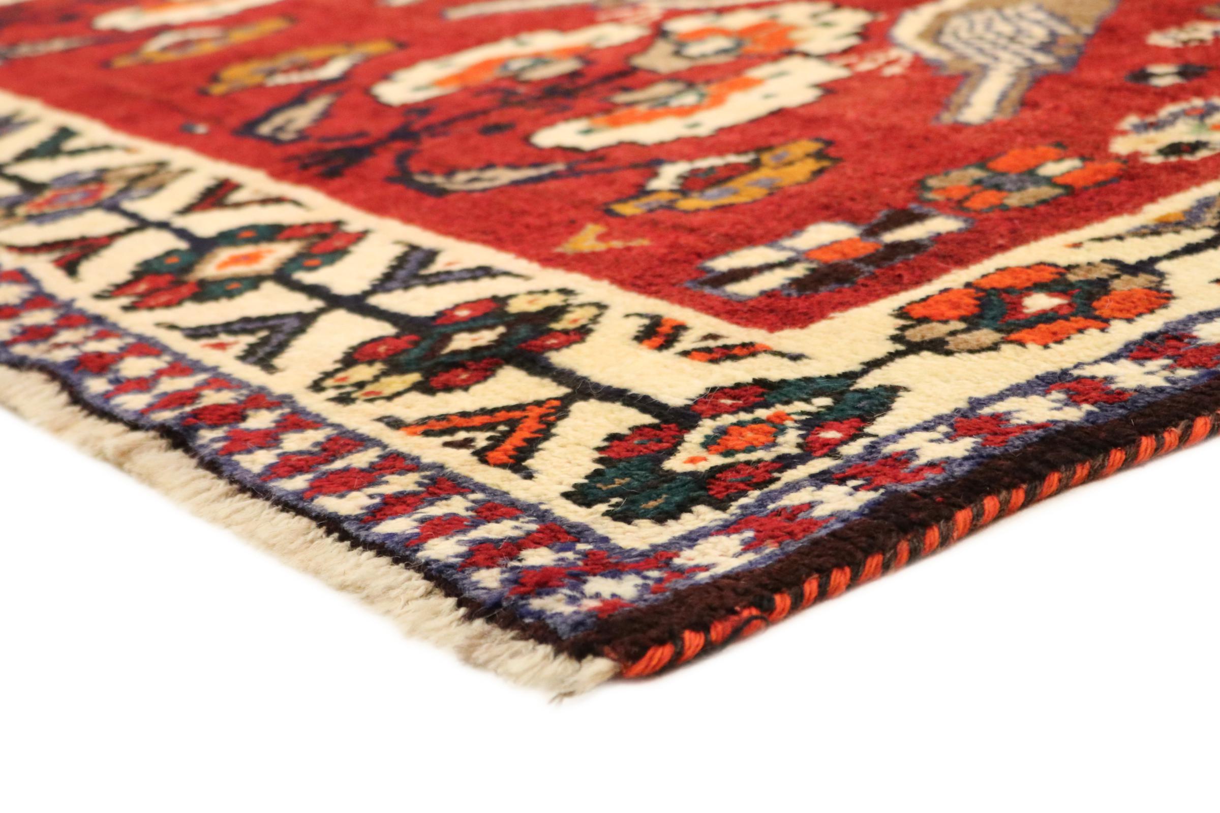 This rug belongs to village and nomadic rugs from Iran, formerly Persia. This type of rug is knotted by hand in smaller towns and villages in old tradition. Even nomads still knot Persian rugs in the open air. The rugs are knotted without a draft and completely from the mind. They are characterized by classical ornaments, which are arranged in straight and geometrical patterns. Thanks to their cultural-traditional origin, these rugs have a unique character that embodies ancient Persia.