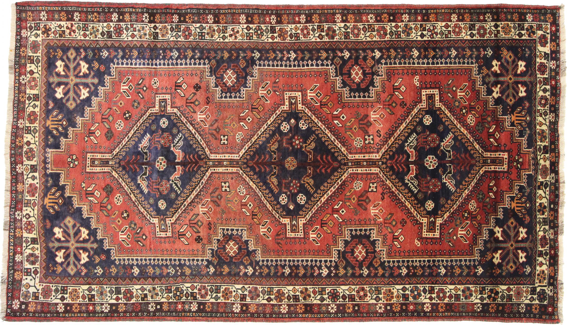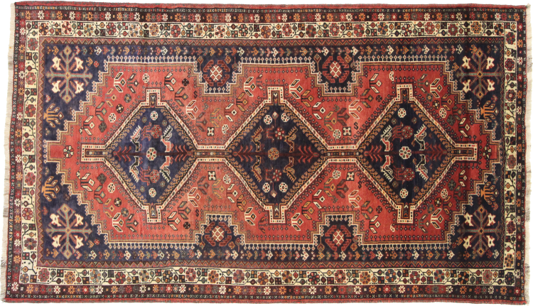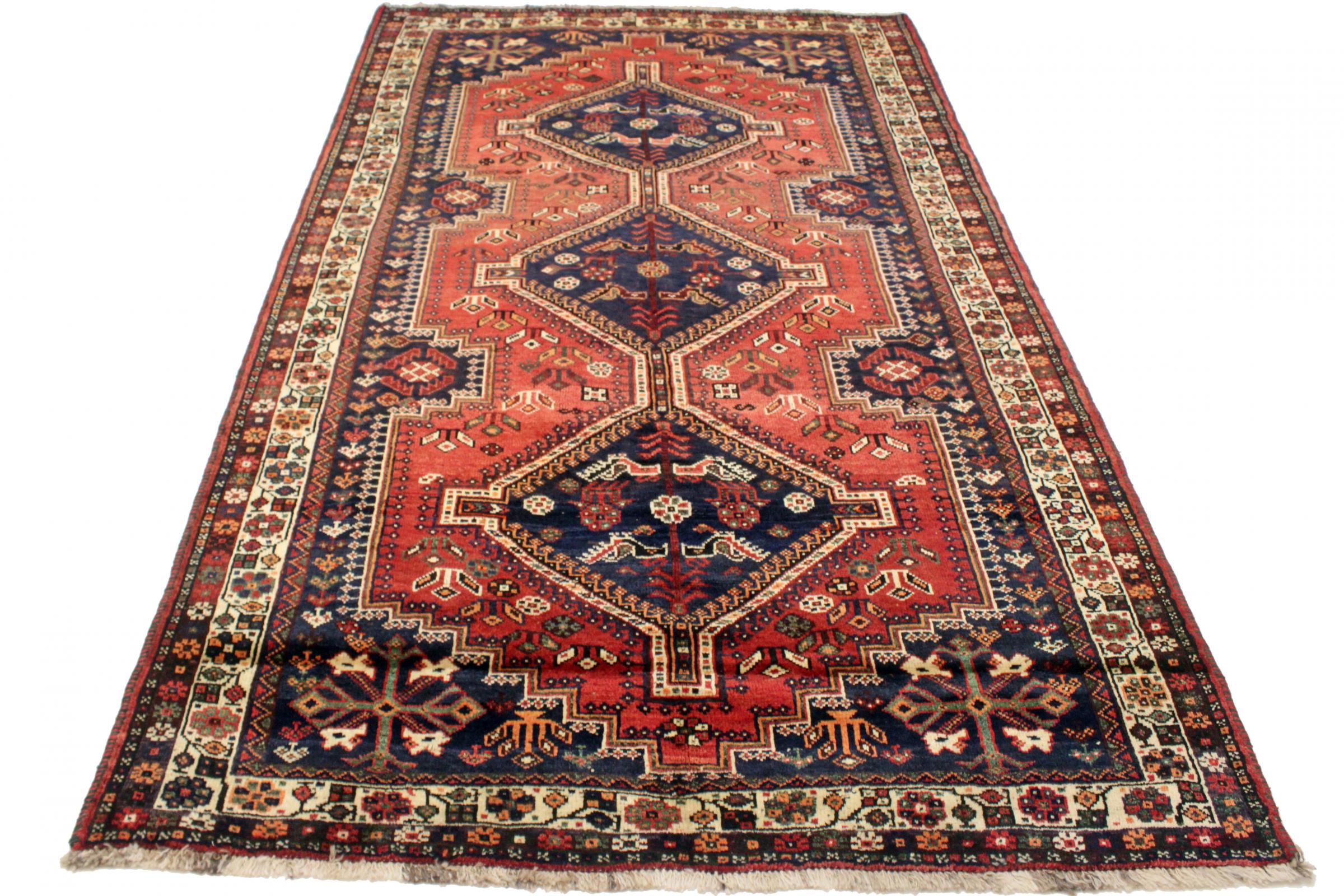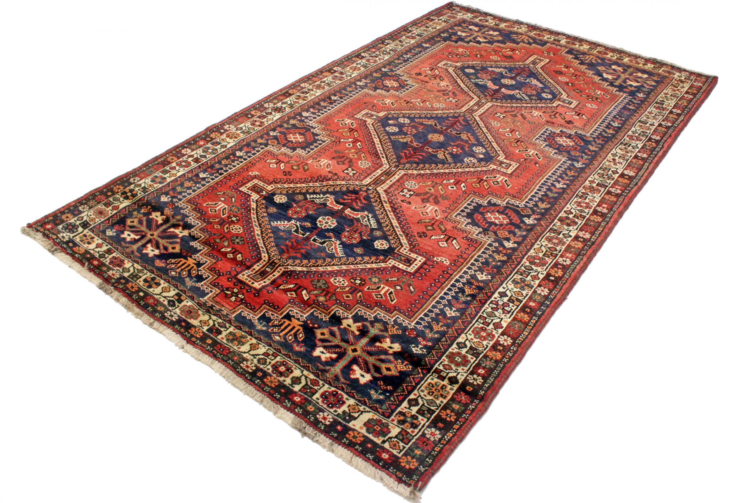 This Shiraz carpet reflects the handicraft of Nomads from the province Fars. Its simple design, the beautiful colours and the good quality convince without any doubt. Their geometric patterns make them the most modern pieces for scandinavian interior concepts. If you like Persian carpets, you will love Shiraz carpets.