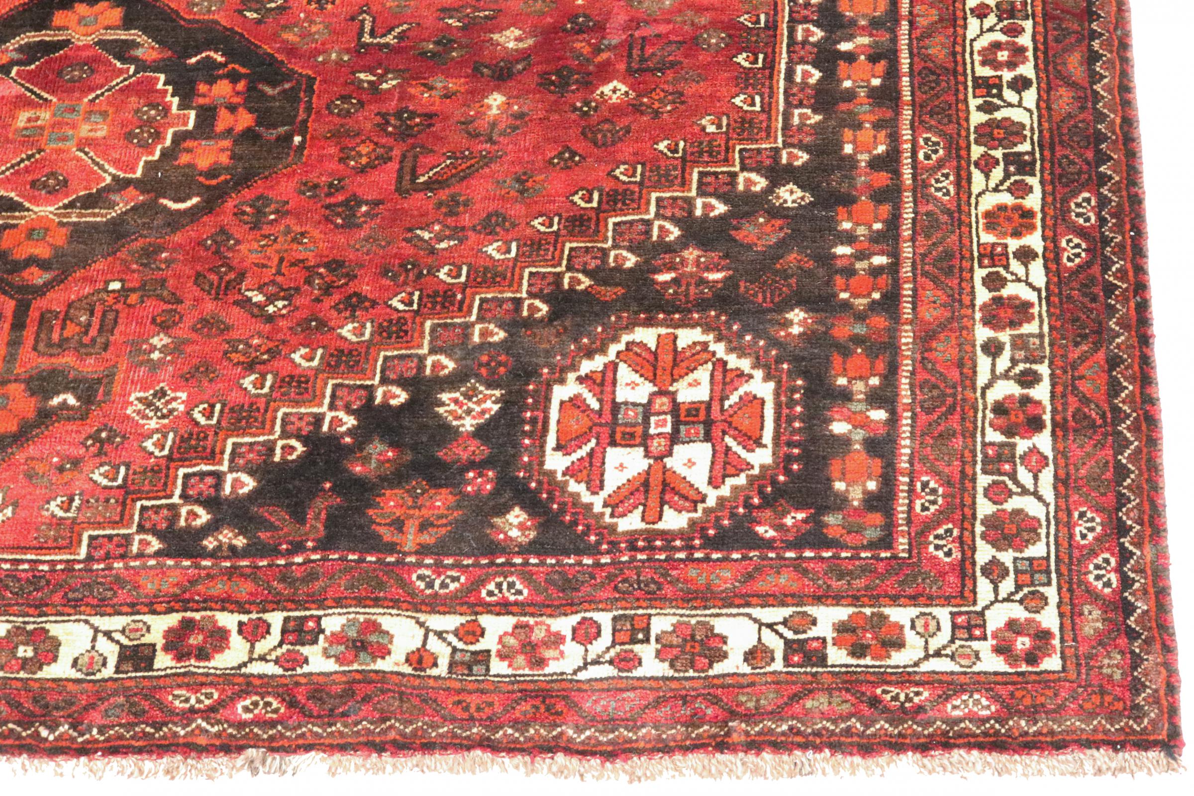 This rug belongs to village and nomadic rugs from Iran, formerly Persia. This type of rug is knotted by hand in smaller towns and villages in old tradition. Even nomads still knot Persian rugs in the open air. The rugs are knotted without a draft and completely from the mind. They are characterized by classical ornaments, which are arranged in straight and geometrical patterns. Thanks to their cultural-traditional origin, these rugs have a unique character that embodies ancient Persia.