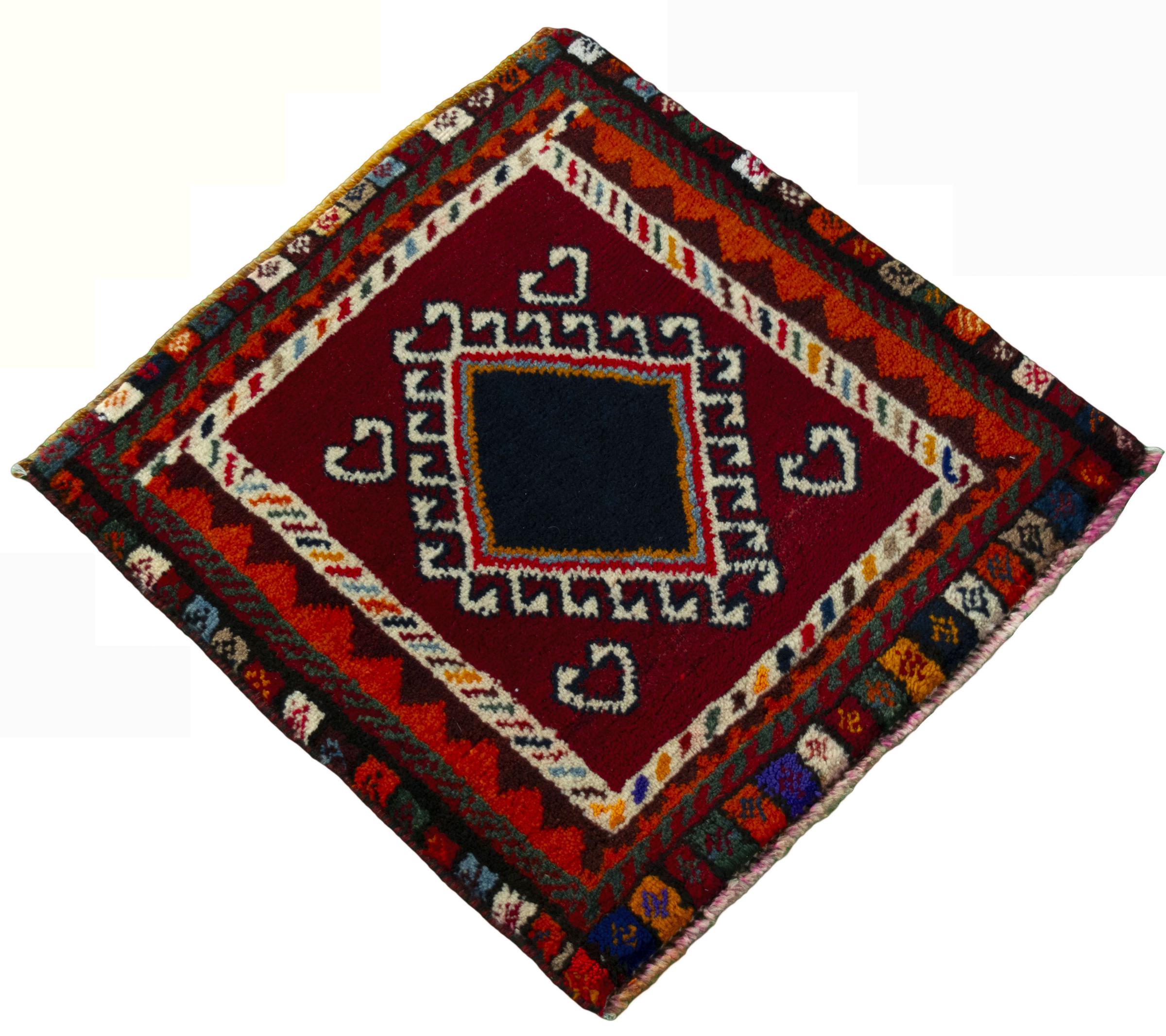 Carpet ID: 285702003822649 Size: 49x51 cm Thickness: ap. 10 mm Knot density: 96 000 - 120 000 / m² Manufacturing: Knotted by hand Pile: Handspun wool Warp: Cotton Origin: Persia Age: New Weight: ap. 1 kg In stock: Unique - Only 1 in stock