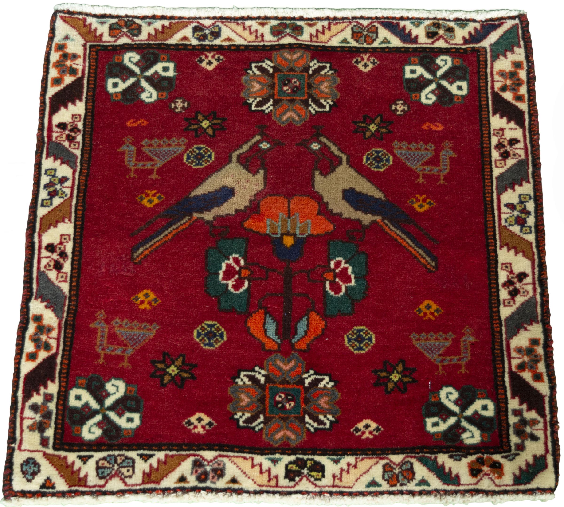 Carpet ID: 285791002968574 Size: 57x59 cm Thickness: ap. 10 mm Knot density: 96 000 - 120 000 / m² Manufacturing: Knotted by hand Pile: Handspun wool Warp: Cotton Origin: Persia Age: New Weight: ap. 1 kg In stock: Unique - Only 1 in stock