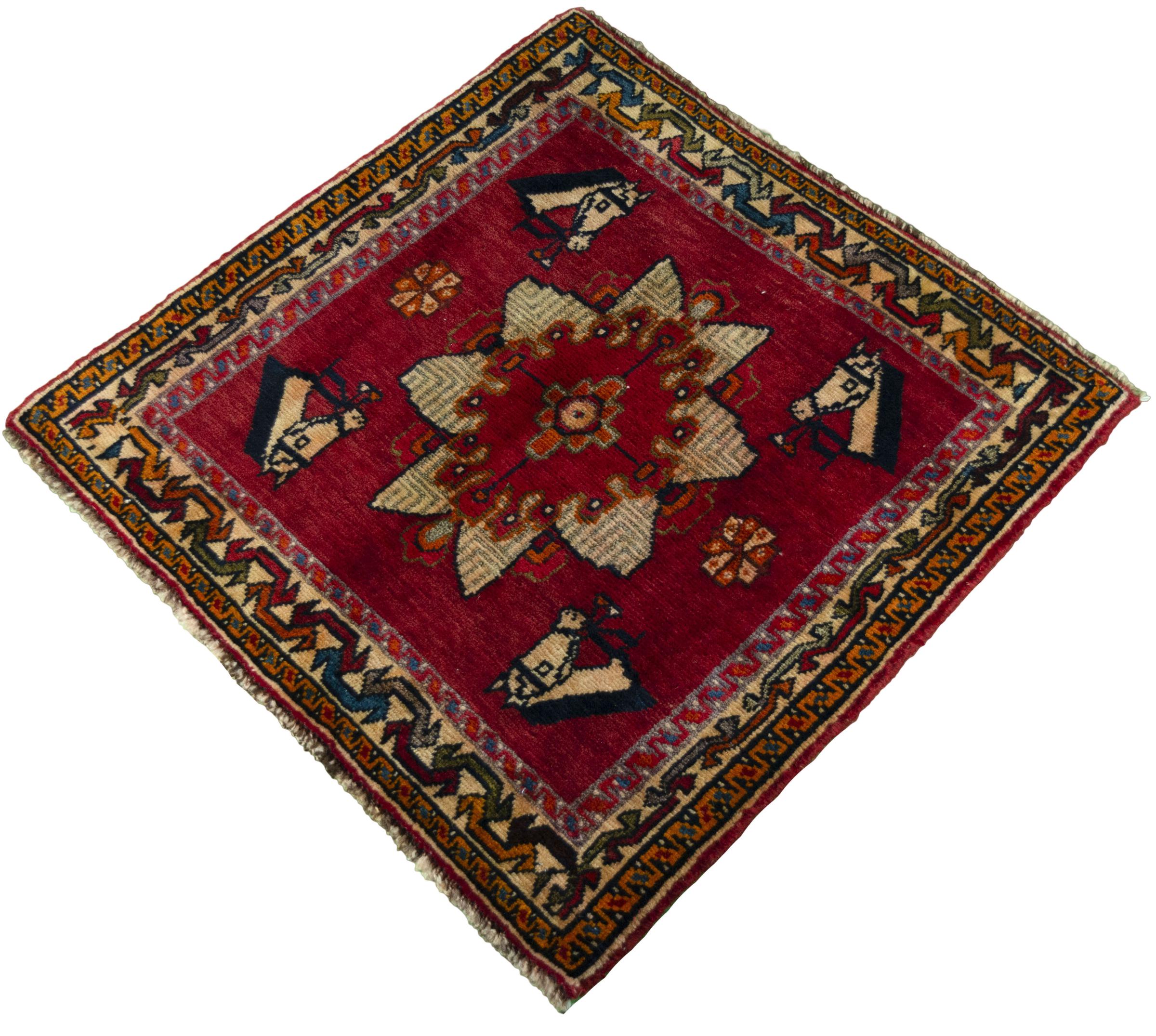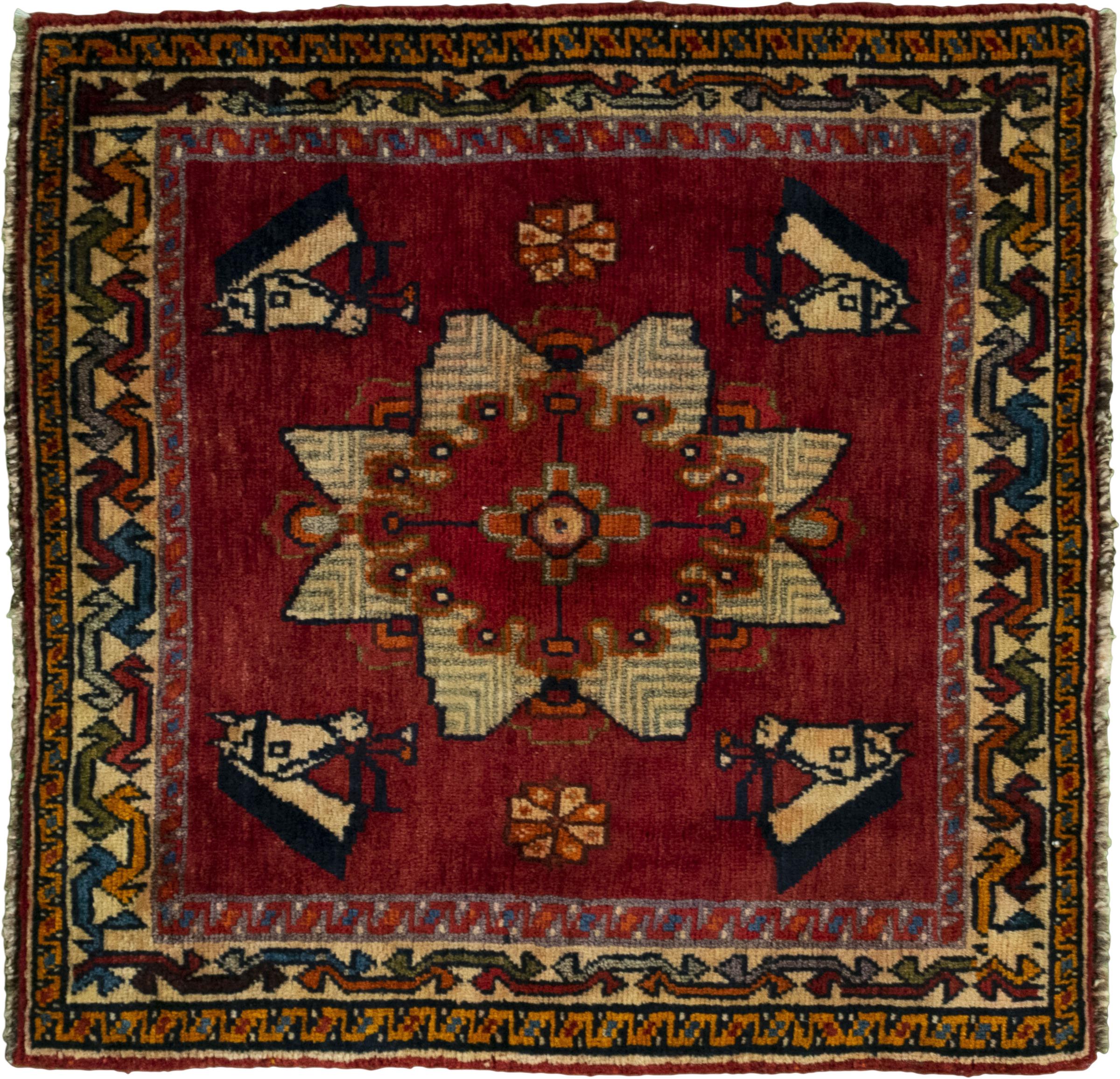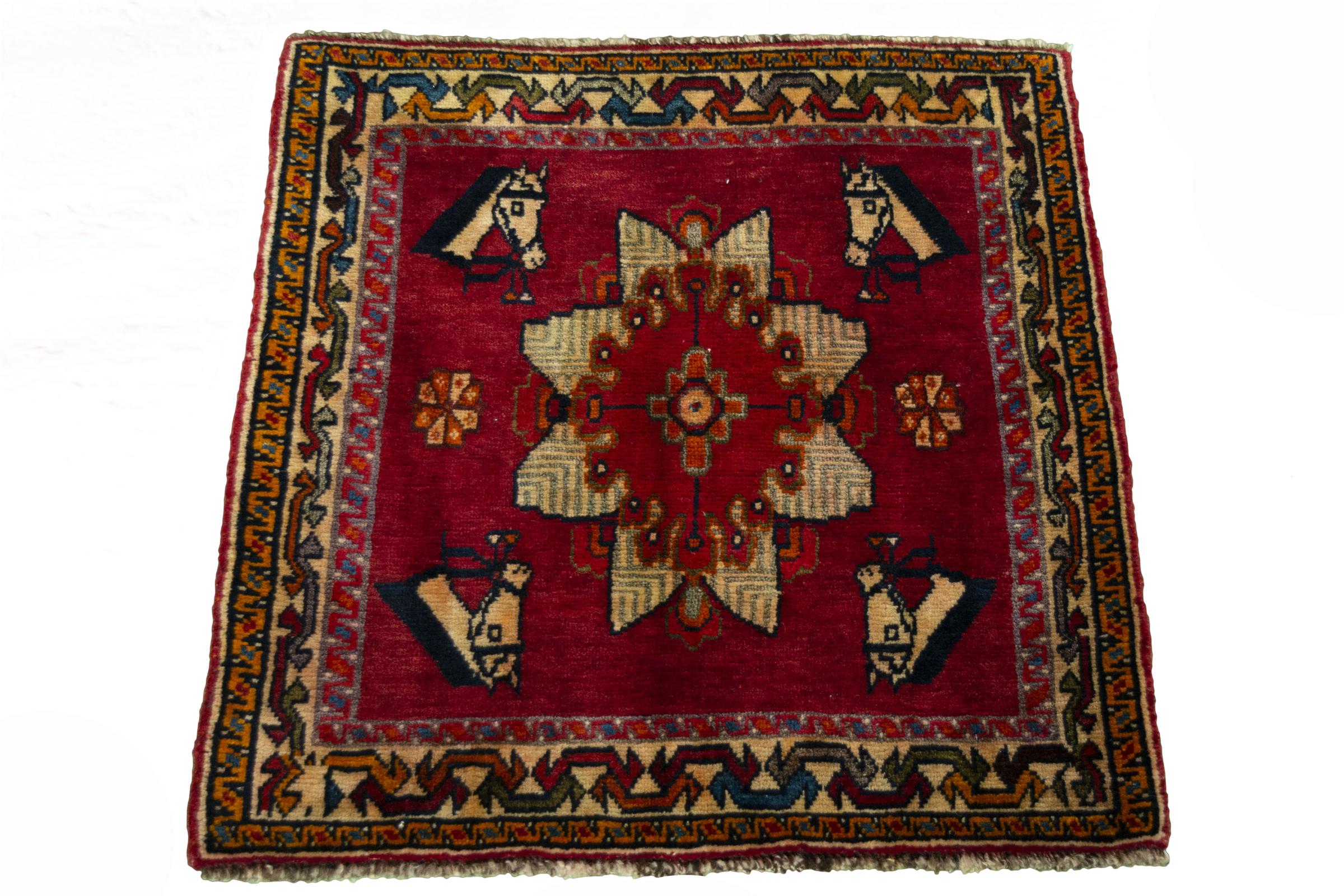 Carpet ID: 285790004069301 Size: 63x65 cm Thickness: ap. 10 mm Knot density: 96 000 - 120 000 / m² Manufacturing: Knotted by hand Pile: Handspun wool Warp: Cotton Origin: Persia Age: New Weight: ap. 1 kg In stock: Unique - Only 1 in stock