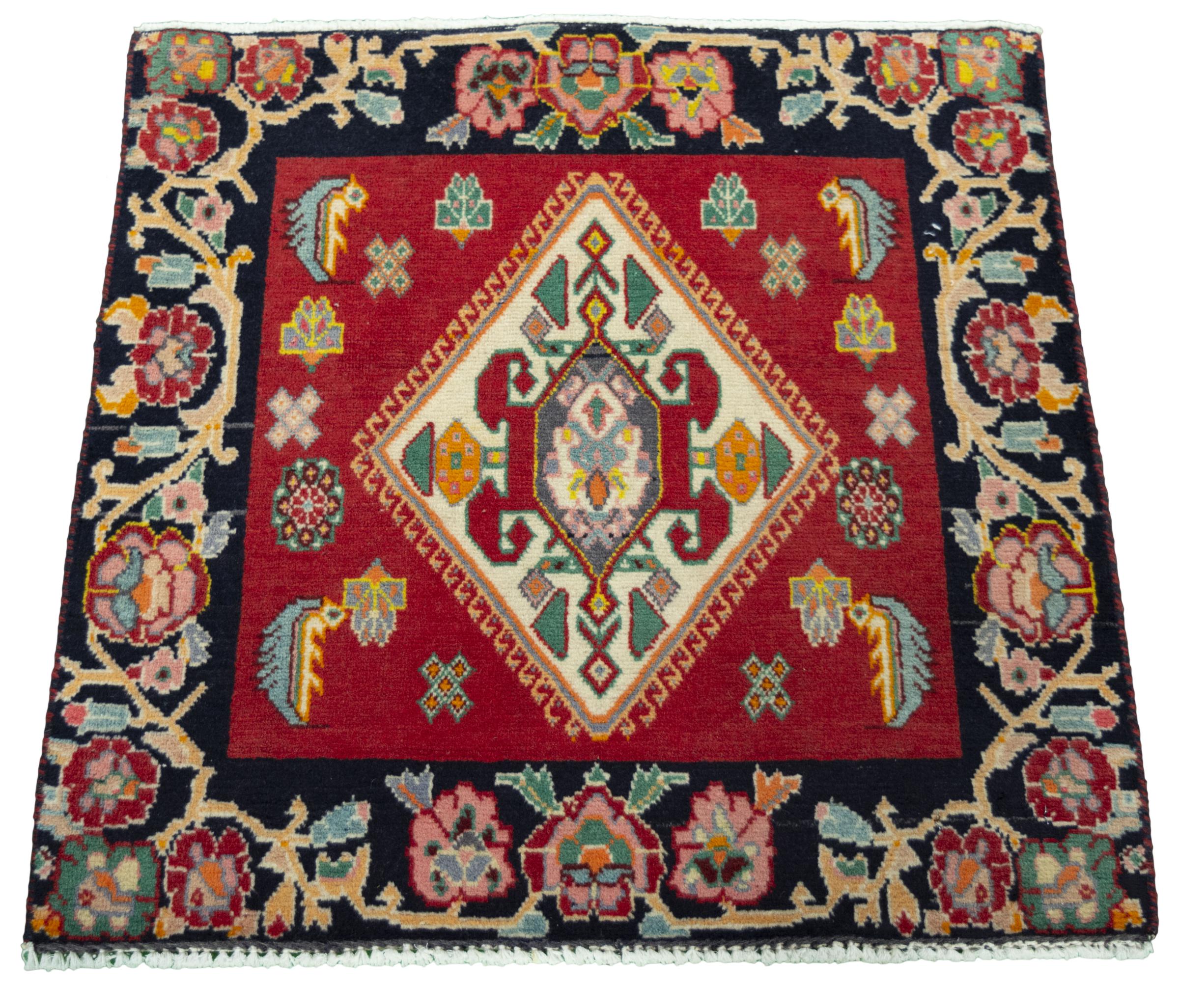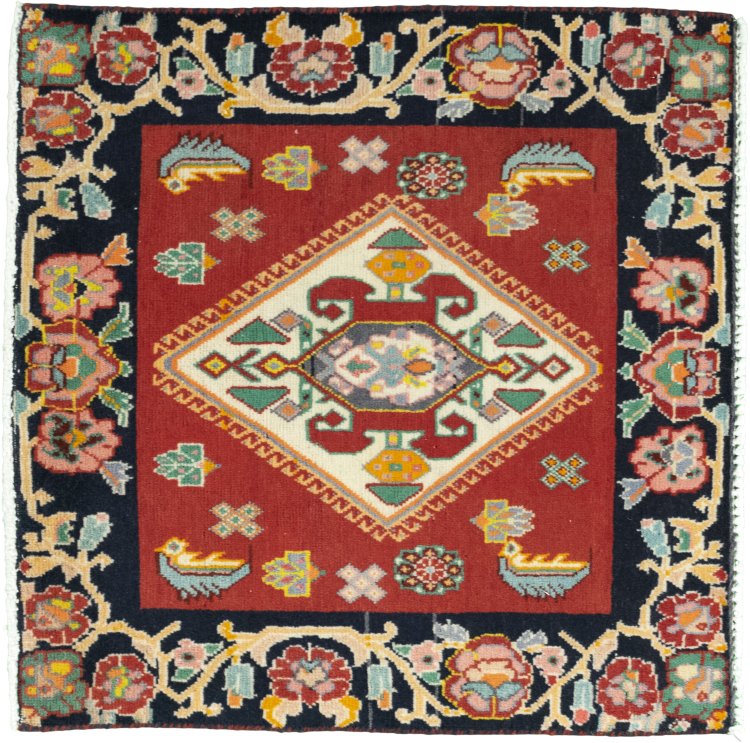 Carpet ID: 285407004267620 Size: 64x66 cm Thickness: ap. 10 mm Knot density: 120 000 - 150 000 / m² Manufacturing: Knotted by hand Pile: Handspun wool Warp: Cotton Origin: Persia Age: New Weight: ap. 1 kg In stock: Unique - Only 1 in stock