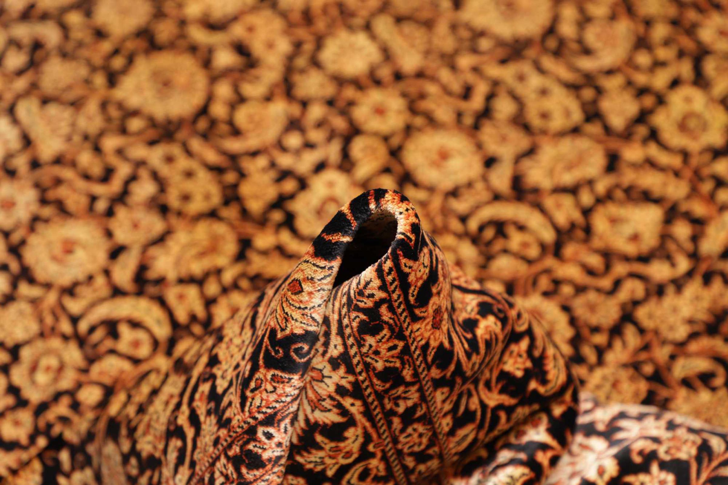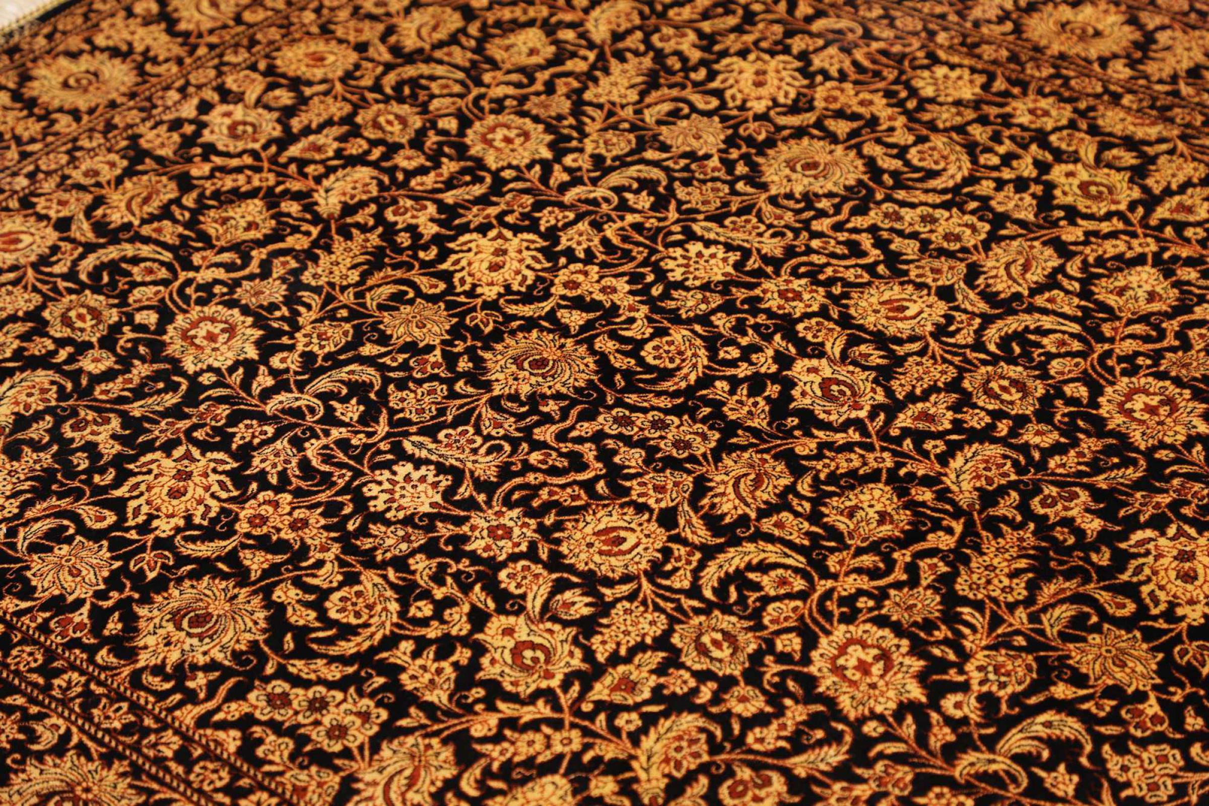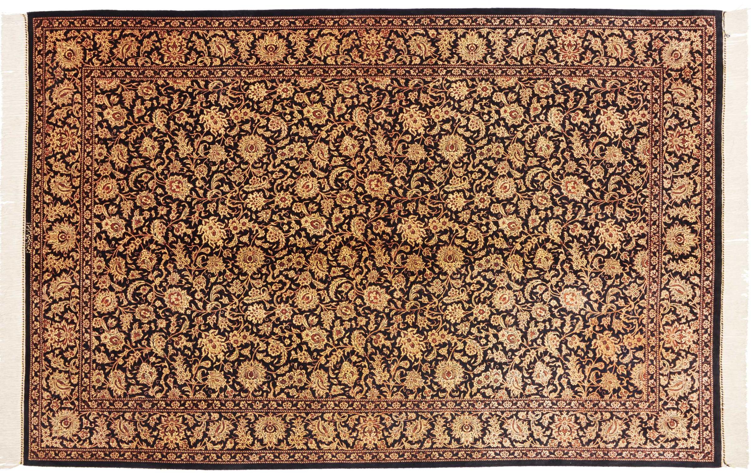 This Qum (also called: Qom) carpet is pure luxury for your home. It consist of natural silk from the city Qum, which is known to possess the highest grade silk in Persia. Its astonishing ornaments made from silk are going to impress without any doubt. The silk reveals new colours and details depending on the angle of how light is reflected. This carpet is a unique piece of art, which you wouldn't want to miss anymore.