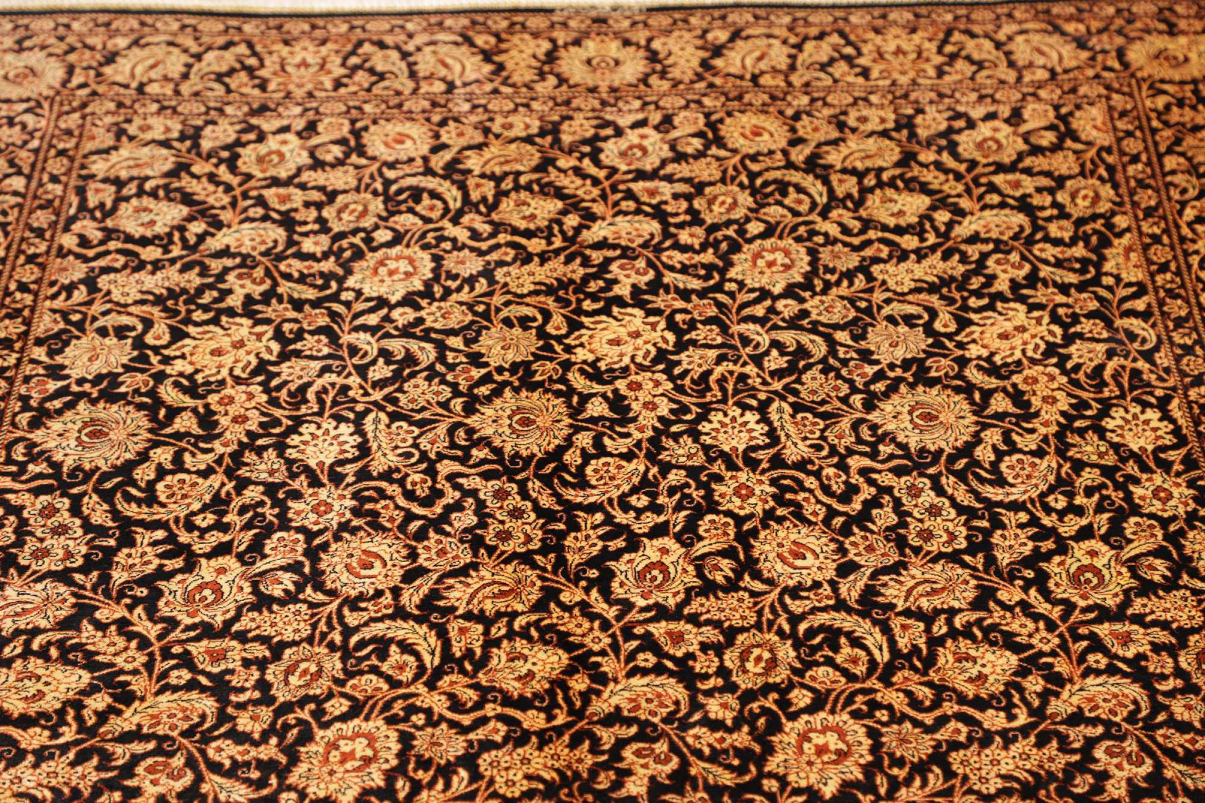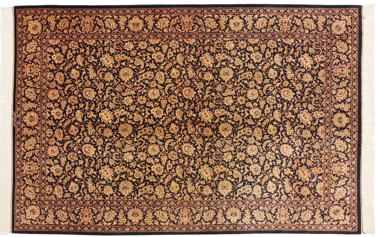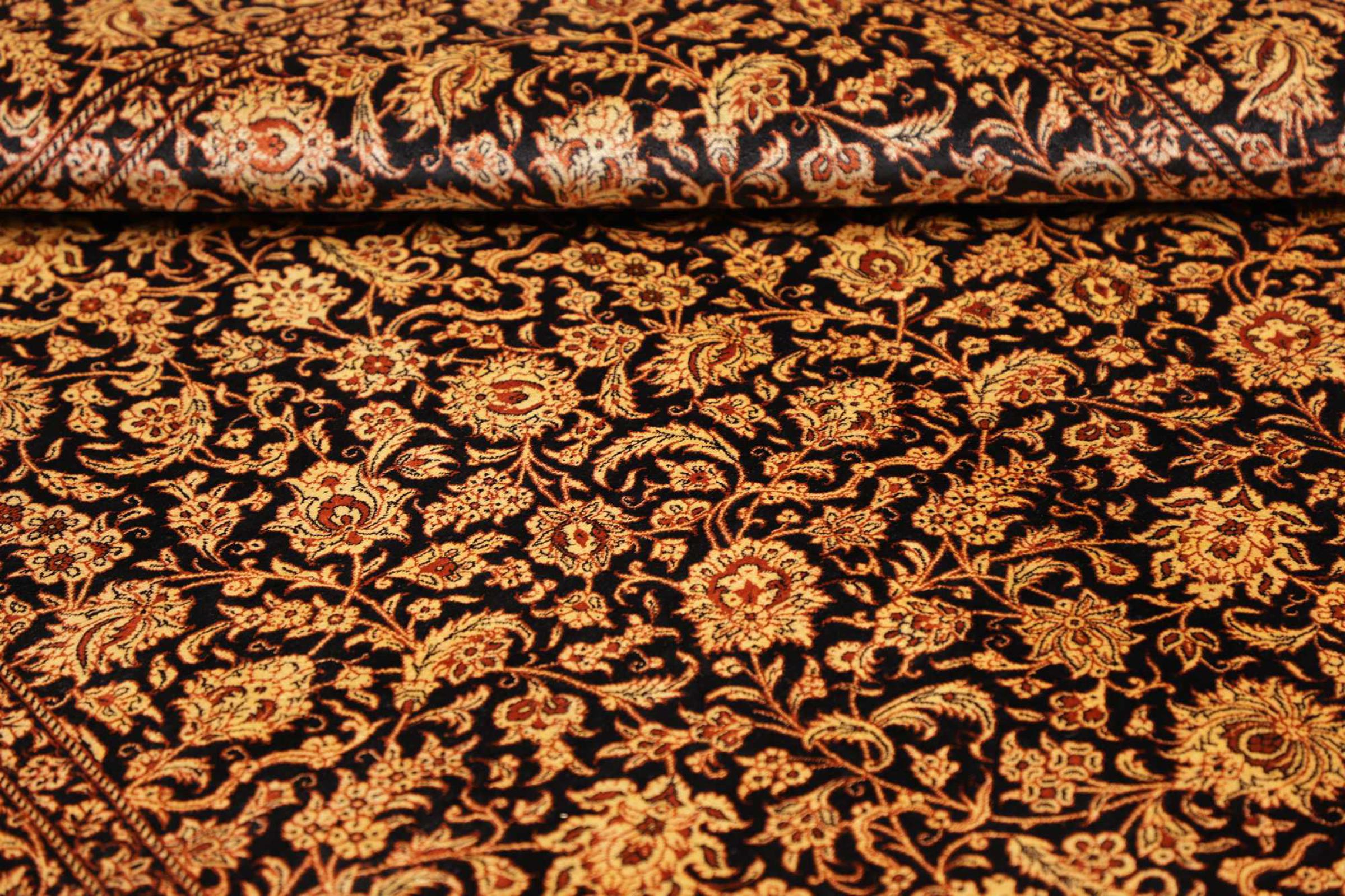 This Qum (also called: Qom) carpet is pure luxury for your home. It consist of natural silk from the city Qum, which is known to possess the highest grade silk in Persia. Its astonishing ornaments made from silk are going to impress without any doubt. The silk reveals new colours and details depending on the angle of how light is reflected. This carpet is a unique piece of art, which you wouldn't want to miss anymore.