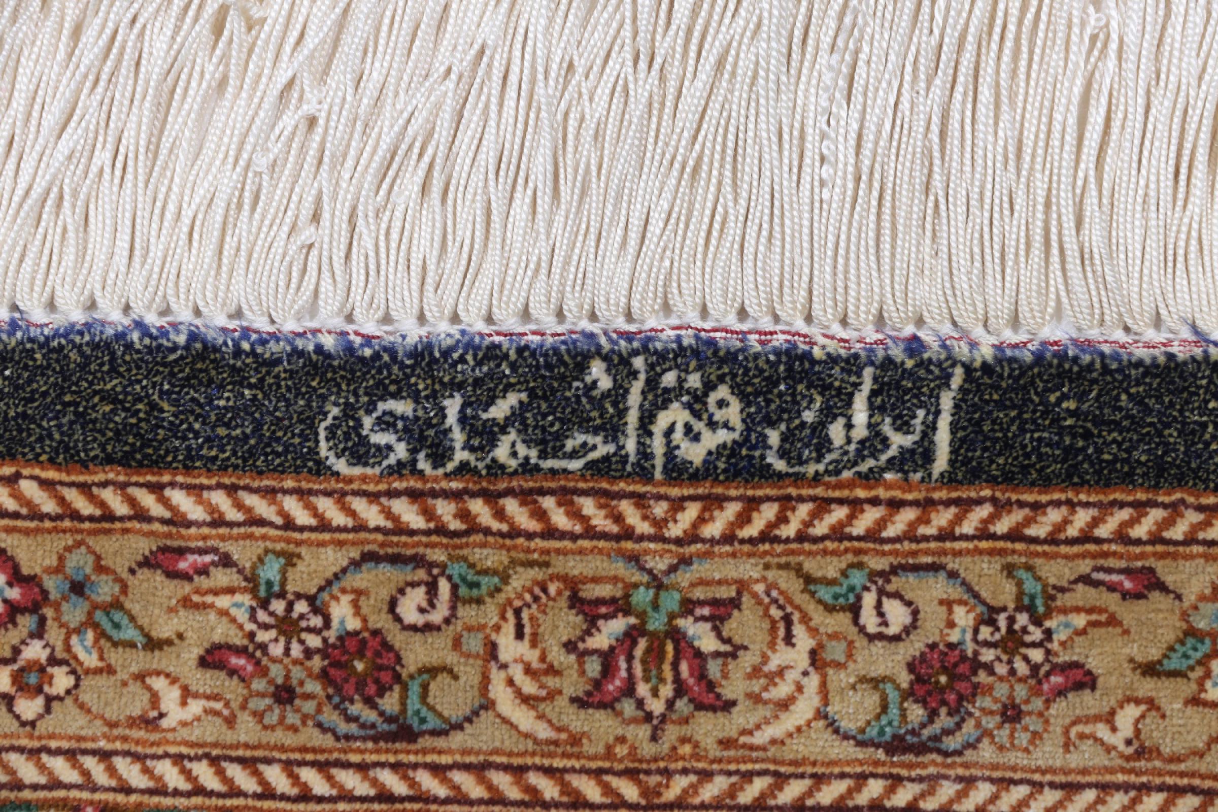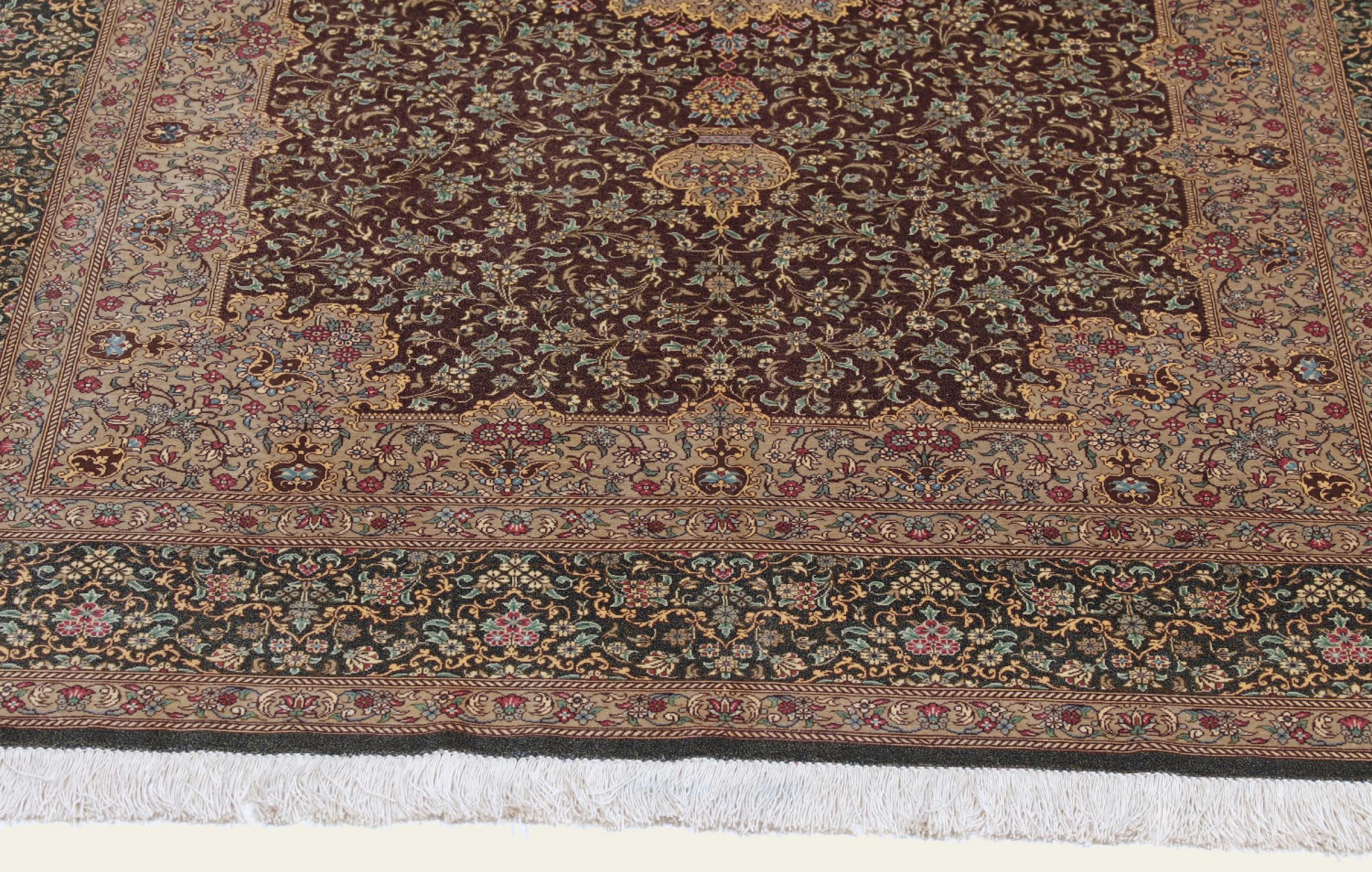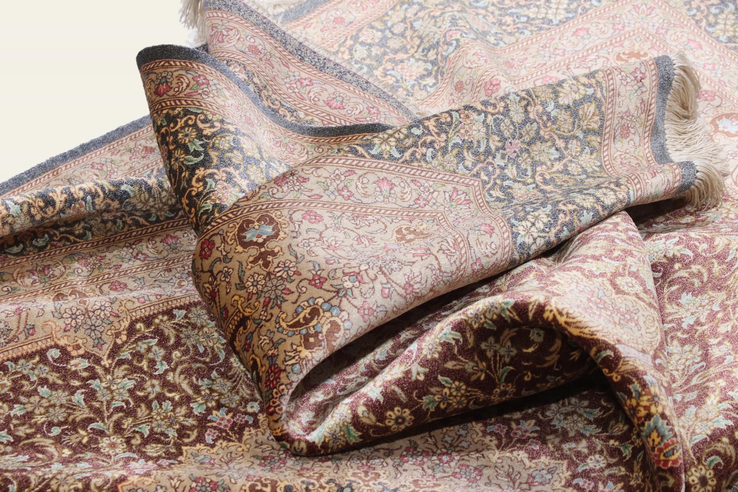This Qum (also called: Qom) carpet is pure luxury for your home. It consist of natural silk from the city Qum, which is known to possess the highest grade silk in Persia. Its astonishing ornaments made from silk are going to impress without any doubt. The silk reveals new colours and details depending on the angle of how light is reflected. This carpet is a unique piece of art, which you wouldn't want to miss anymore.