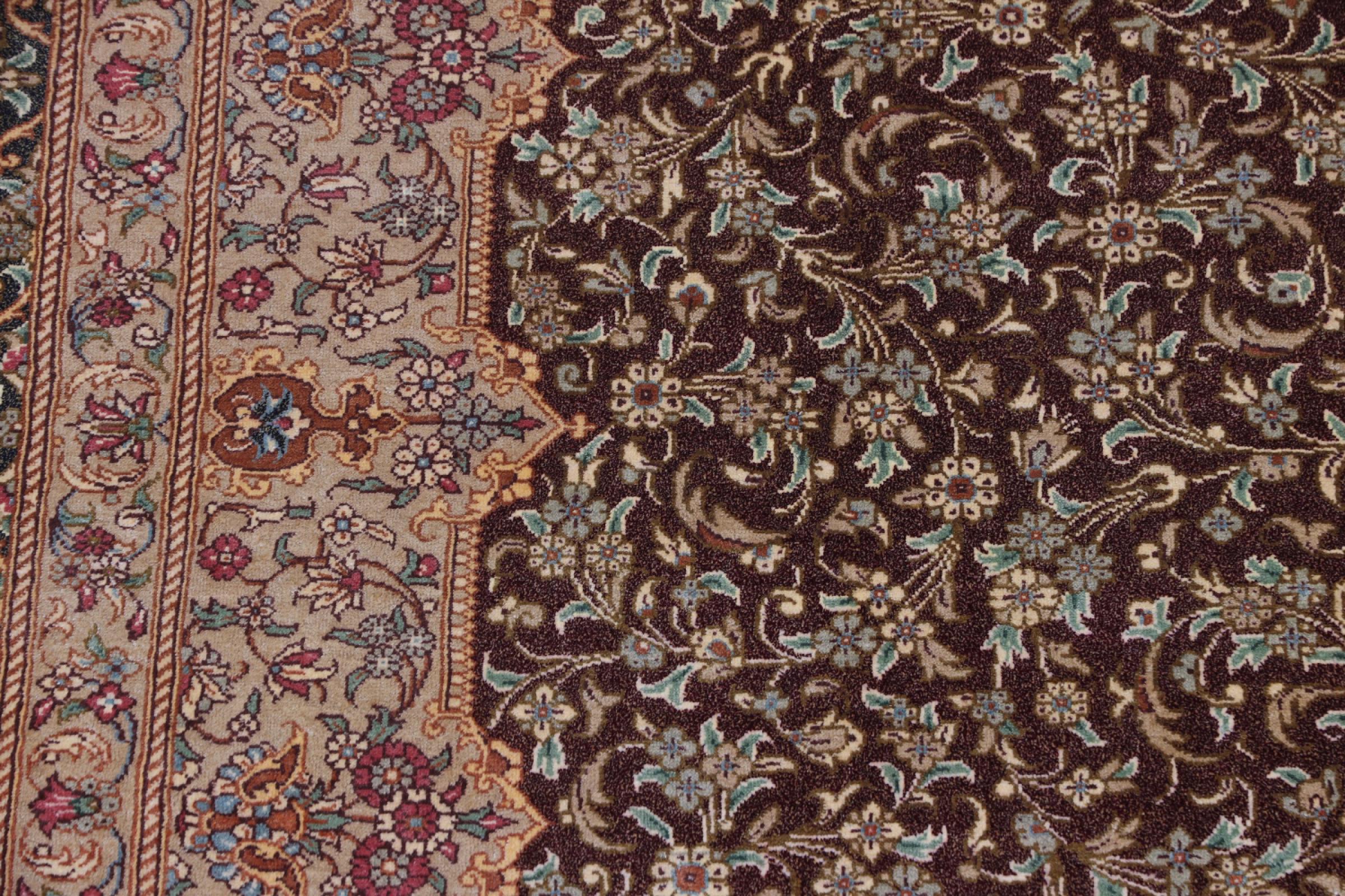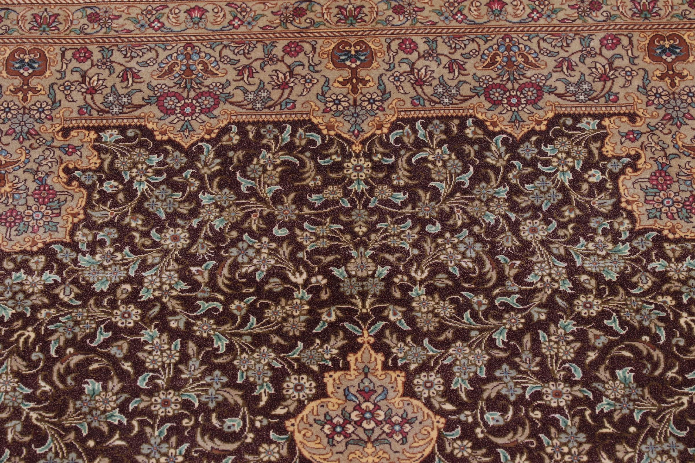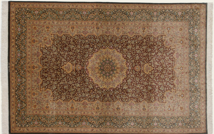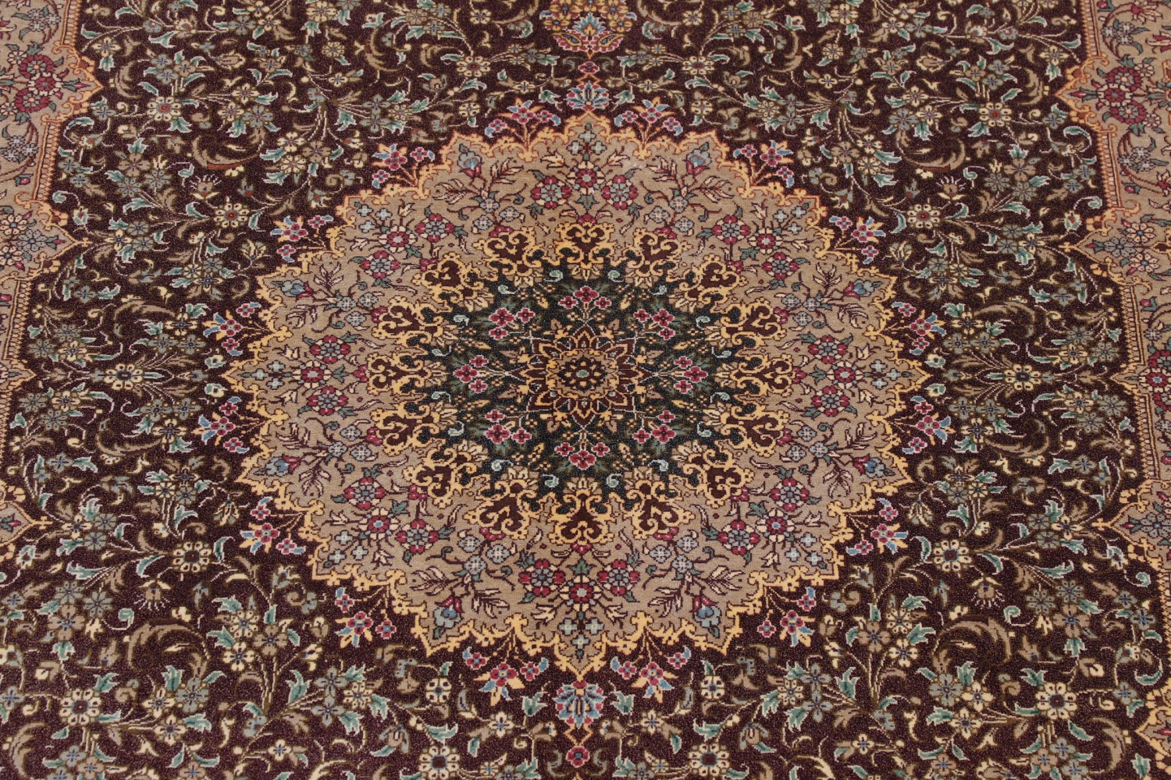This Qum (also called: Qom) carpet is pure luxury for your home. It consist of natural silk from the city Qum, which is known to possess the highest grade silk in Persia. Its astonishing ornaments made from silk are going to impress without any doubt. The silk reveals new colours and details depending on the angle of how light is reflected. This carpet is a unique piece of art, which you wouldn't want to miss anymore.