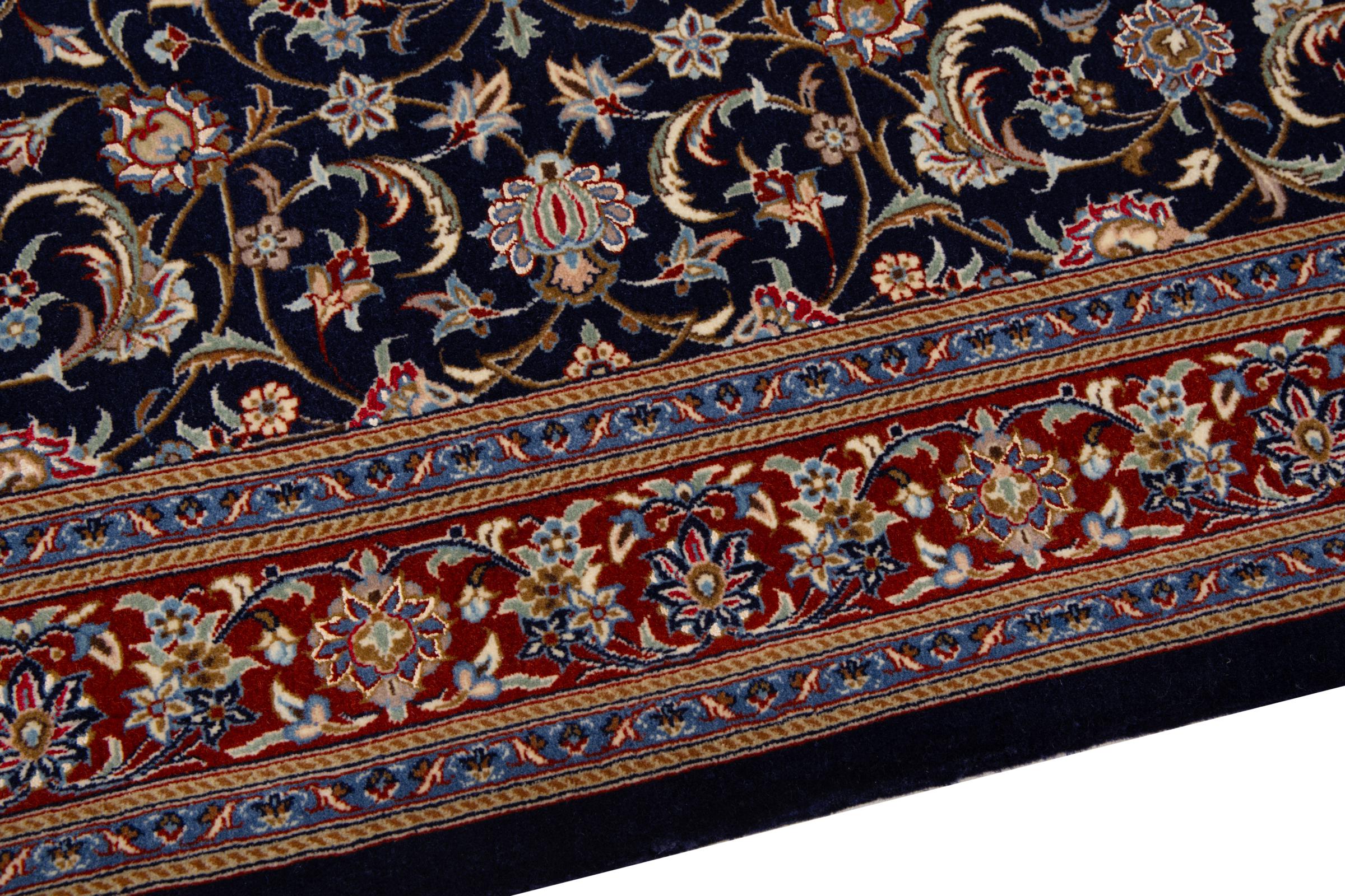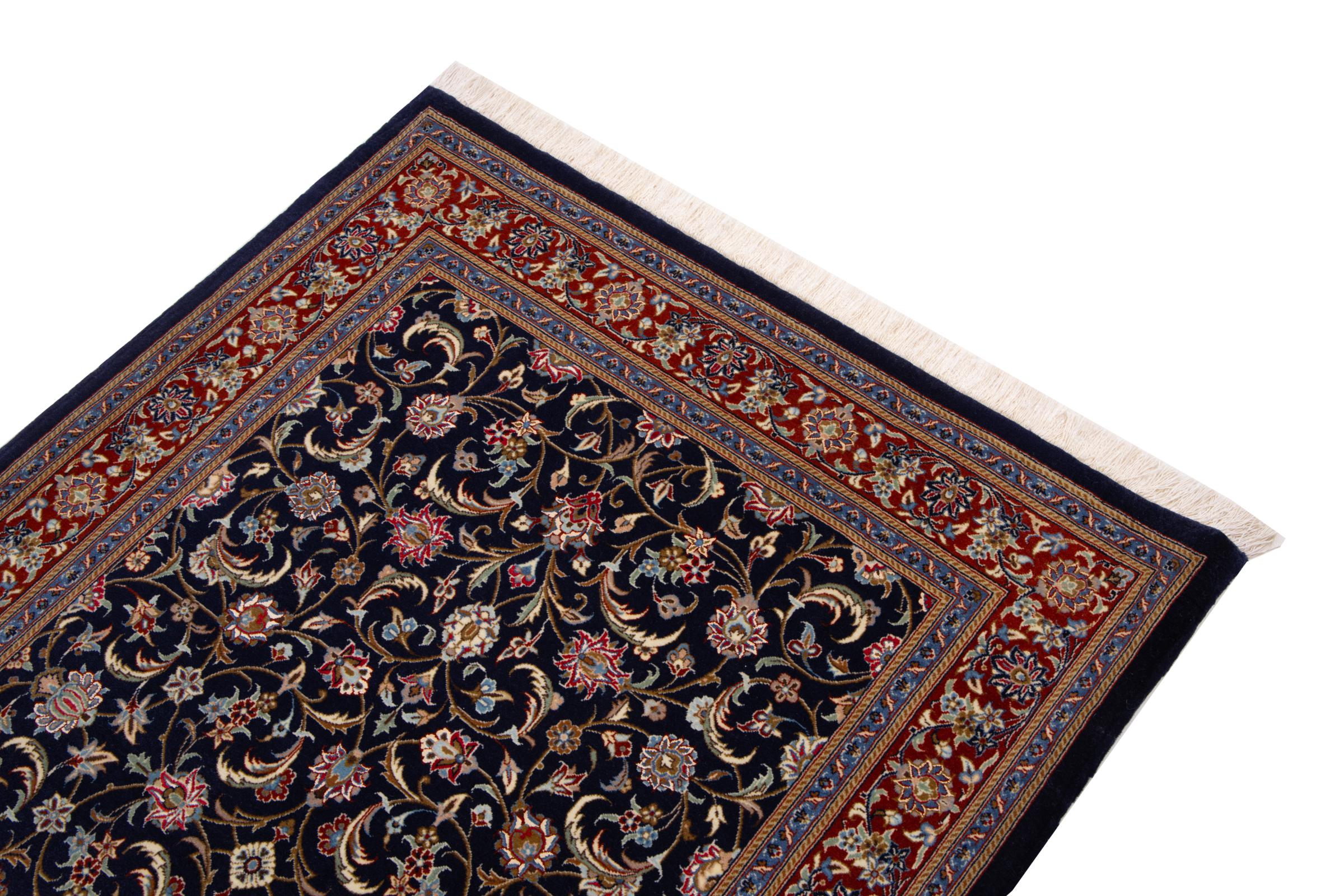 This Qum (also called: Qom) carpet is a piece of outstanding quality. Its wool originates exclusively from the neck section of sheep. It's exceptionally soft and consists of a high degree of natural fat, which makes the carpet even more resilient against day-to-day stress. Additionally, this genuine Persian carpet has been knotted by hand in the holy city Qum. Its fascinating ornaments and beautiful design are going to impress you and your guests.