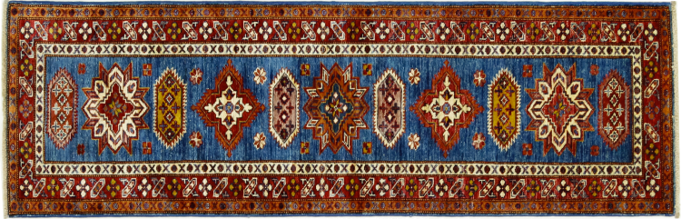 Kazak rugs are originally Caucasian rugs and are considered the best of their kind. They are hand-knotted from high-quality wool and are characterised by their design with warm natural colours and straight geometric shapes.