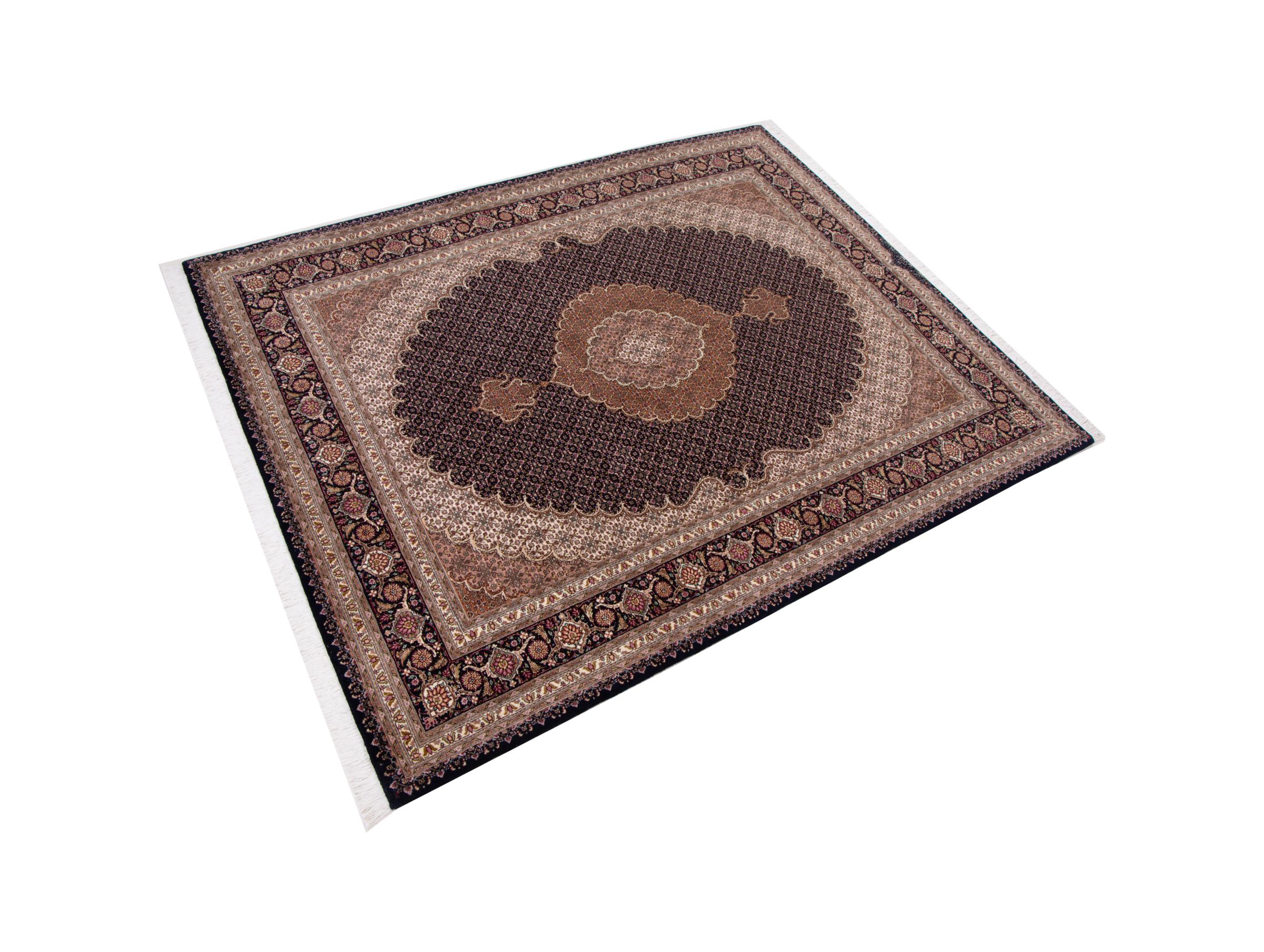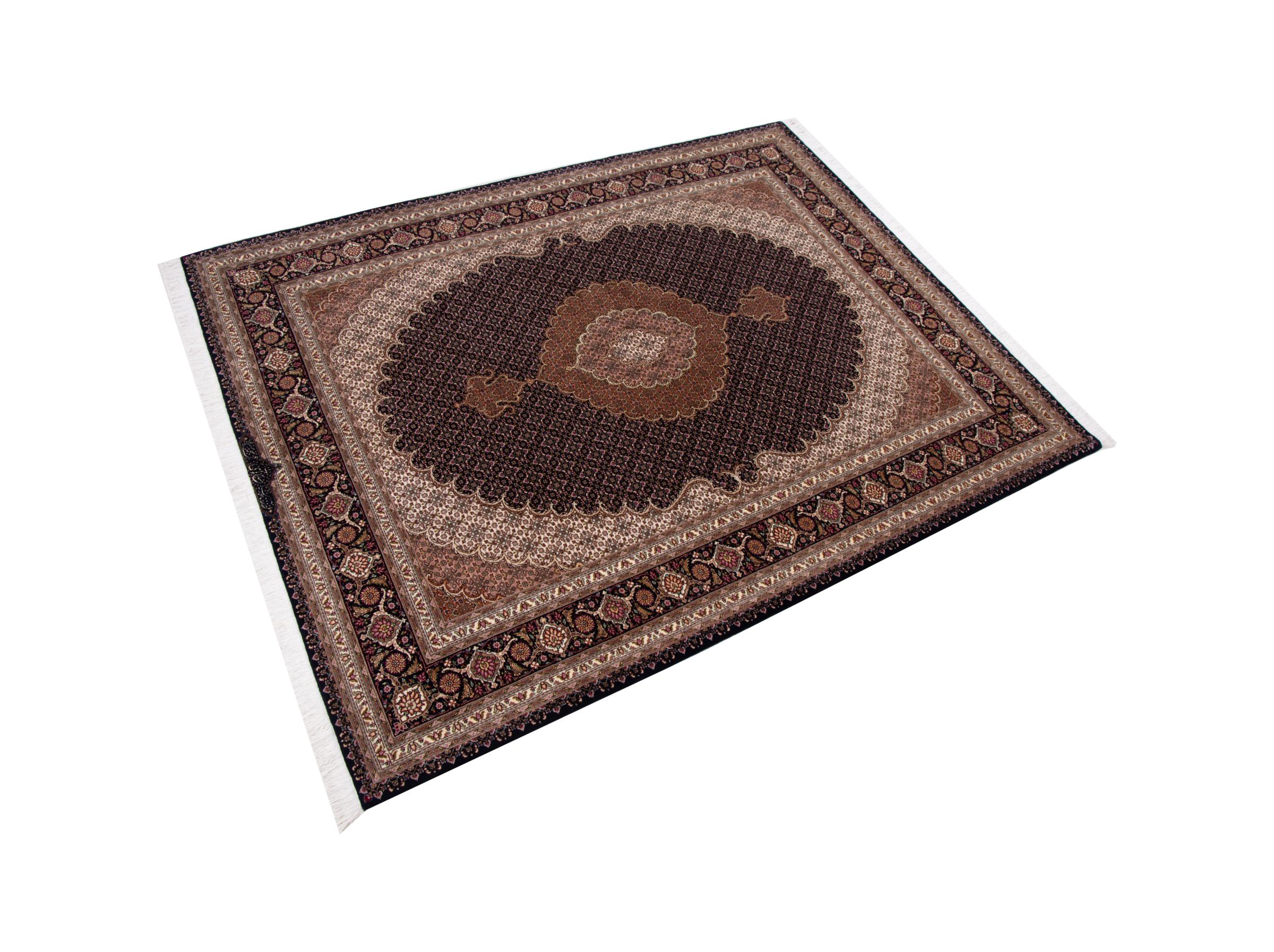 Carpet ID: 292374006168322 Size: 196x152 cm Thickness: ap. 7 mm Knot density: 440 000 - 490 000 / m² Manufacturing: Knotted by hand Pile: Wool with silk Warp: Cotton Origin: Persia Age: New Weight: ap. 9 kg Also know as Tabriz, Tabris, Täbris, Tebriz, Tebris, 40Raj, 50Raj In stock: Unique - Only 1 in stock